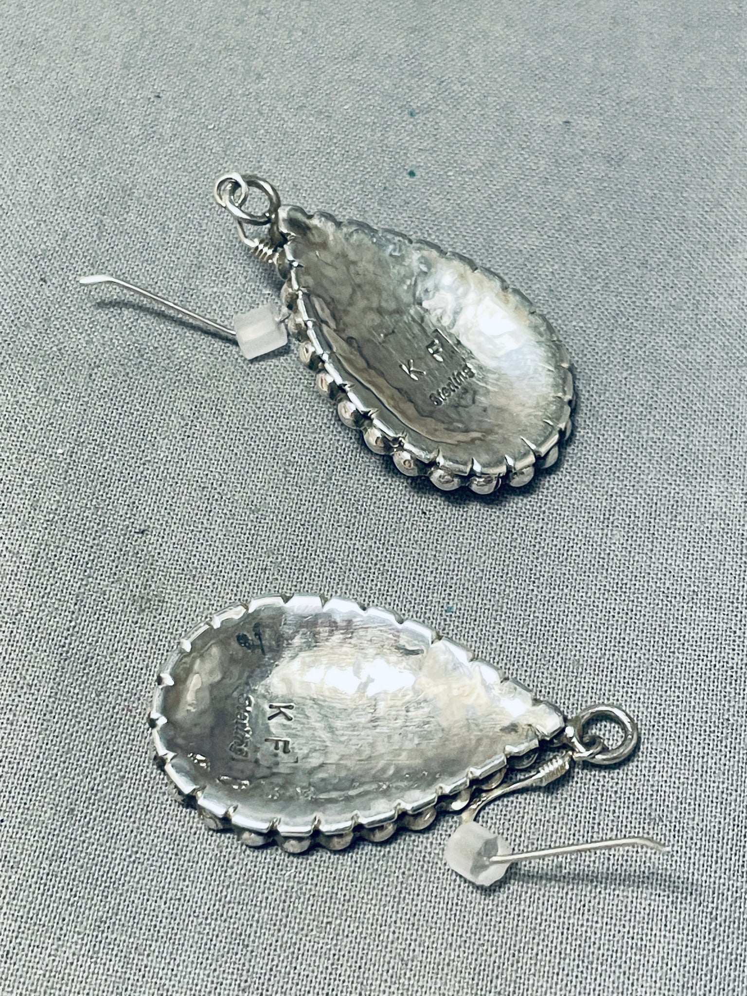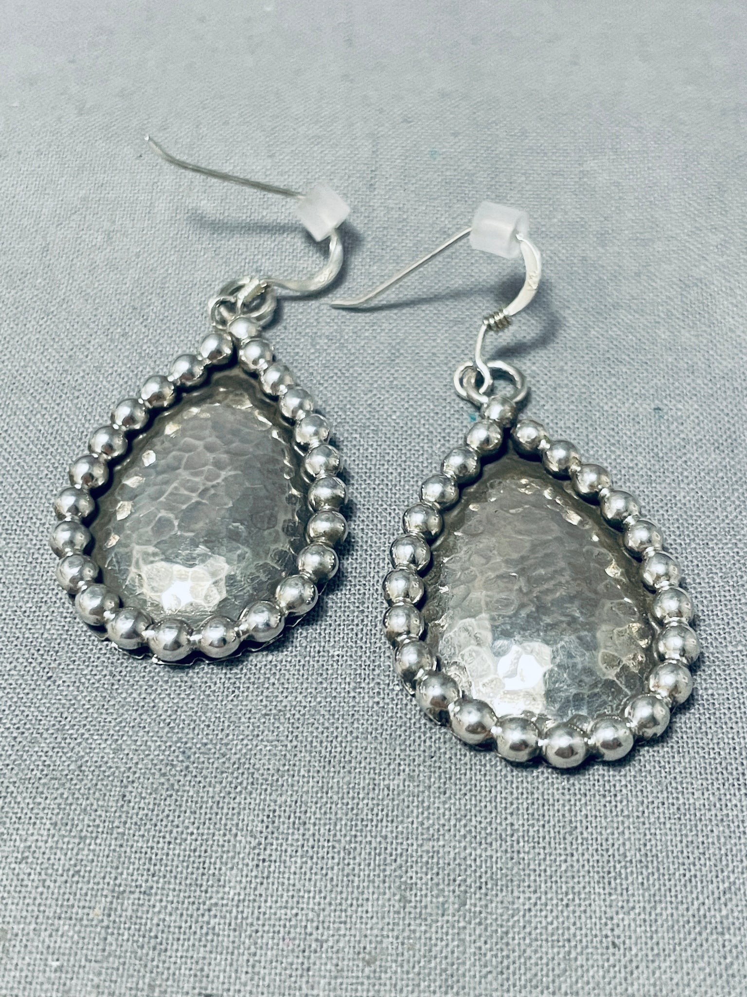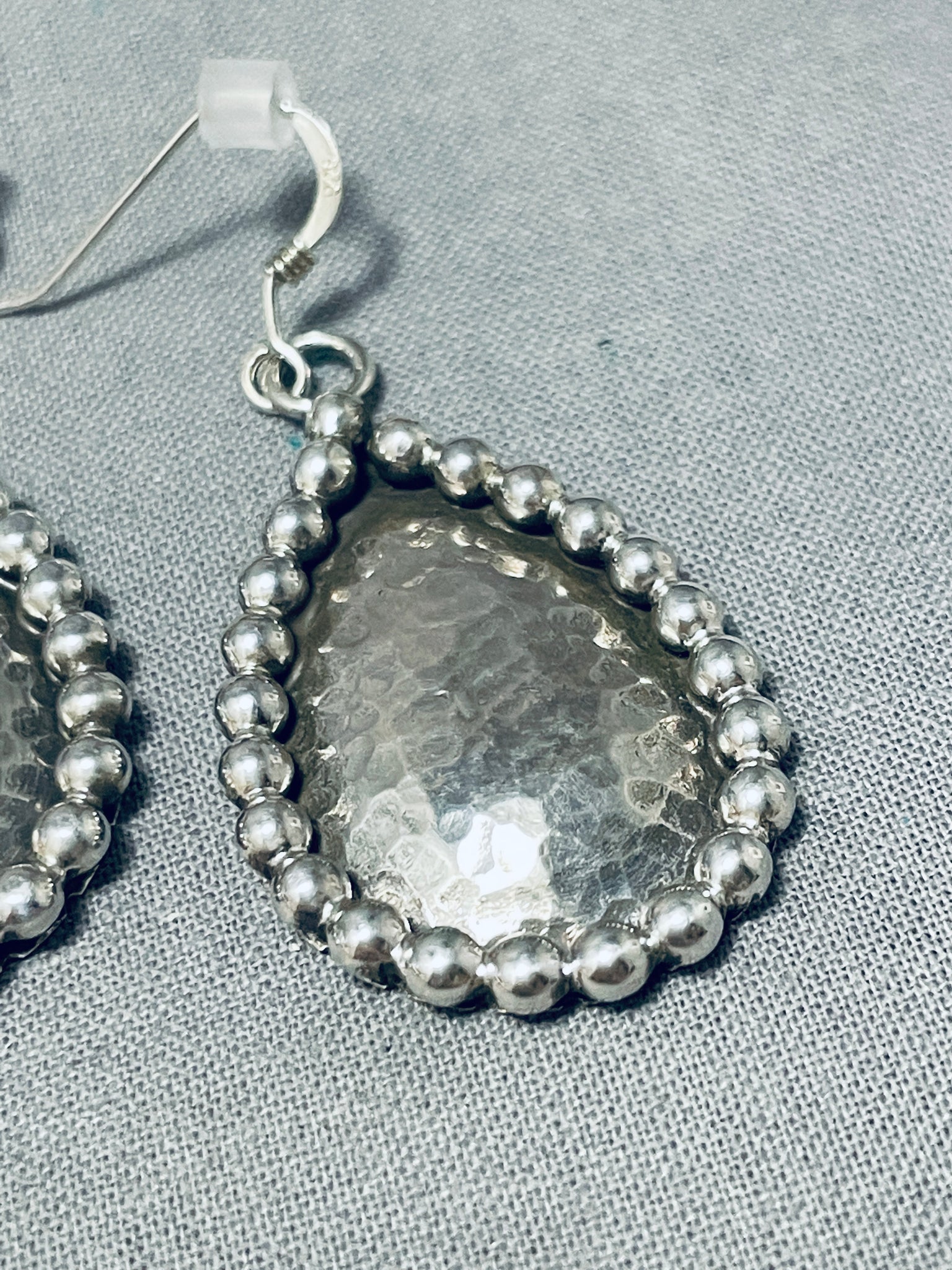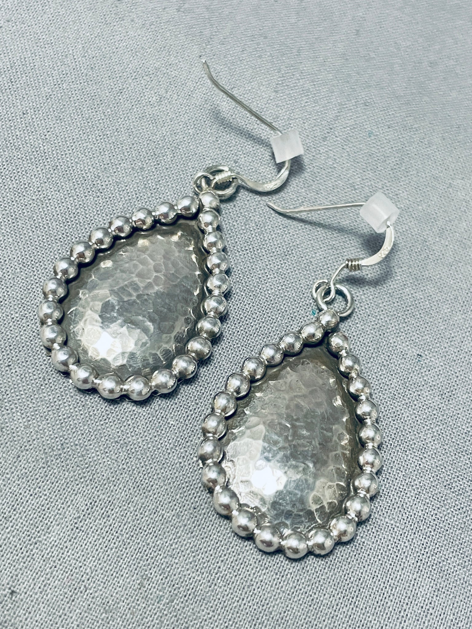 Fabulous Hand Tooled Native American Navajo Sterling Silver Dangle Earrings