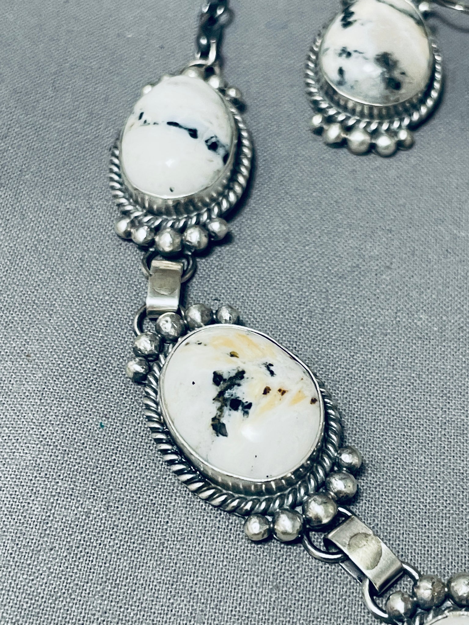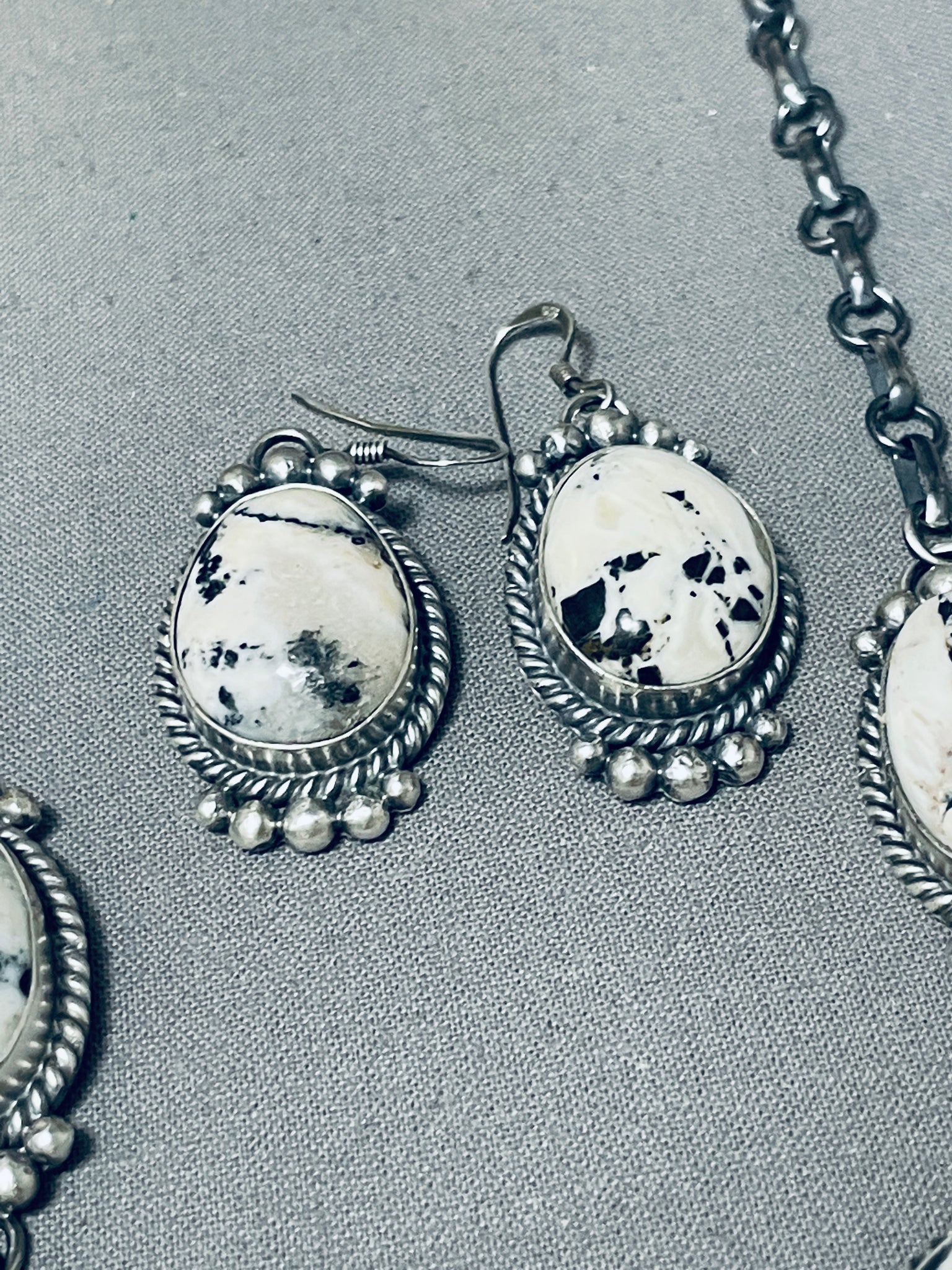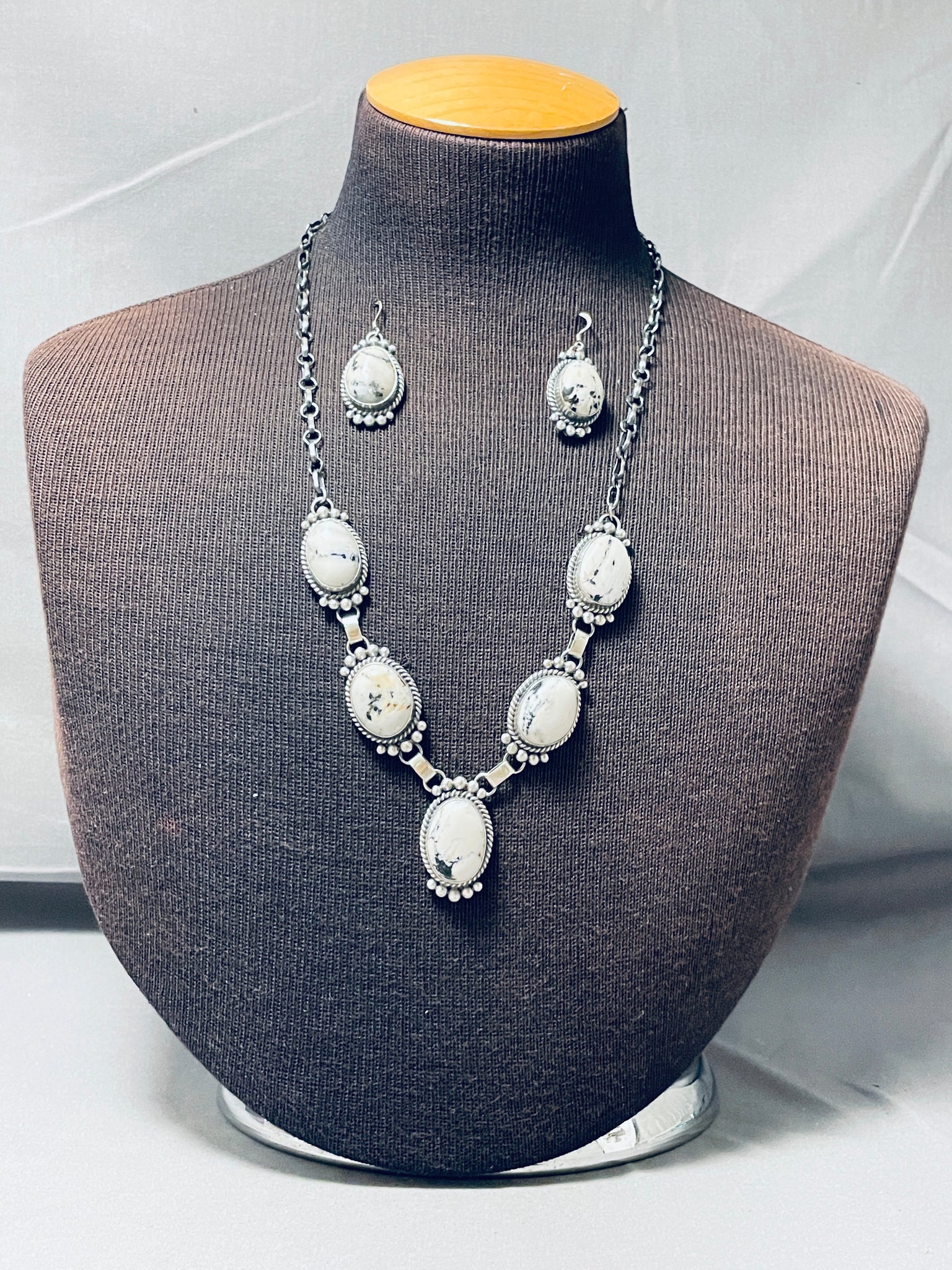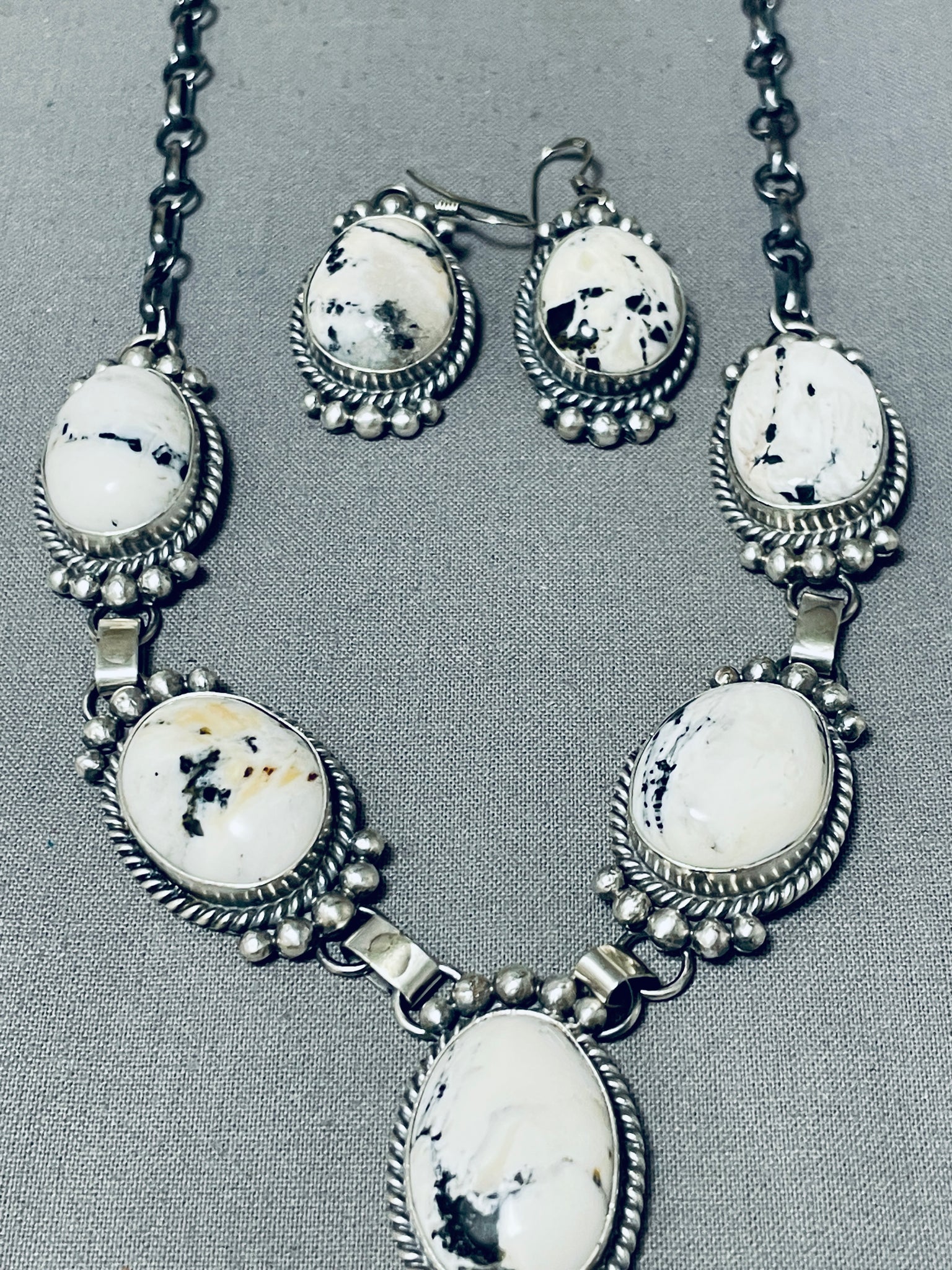Fabulous Native American Navajo White Buffalo Turquoise Sterling Silver Necklace & Earrings Set