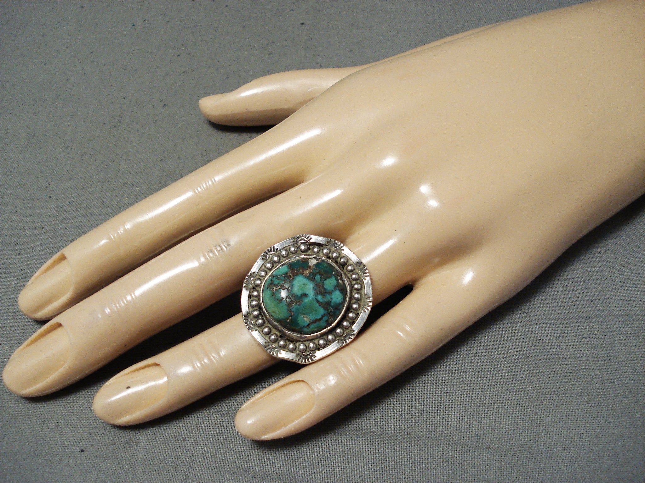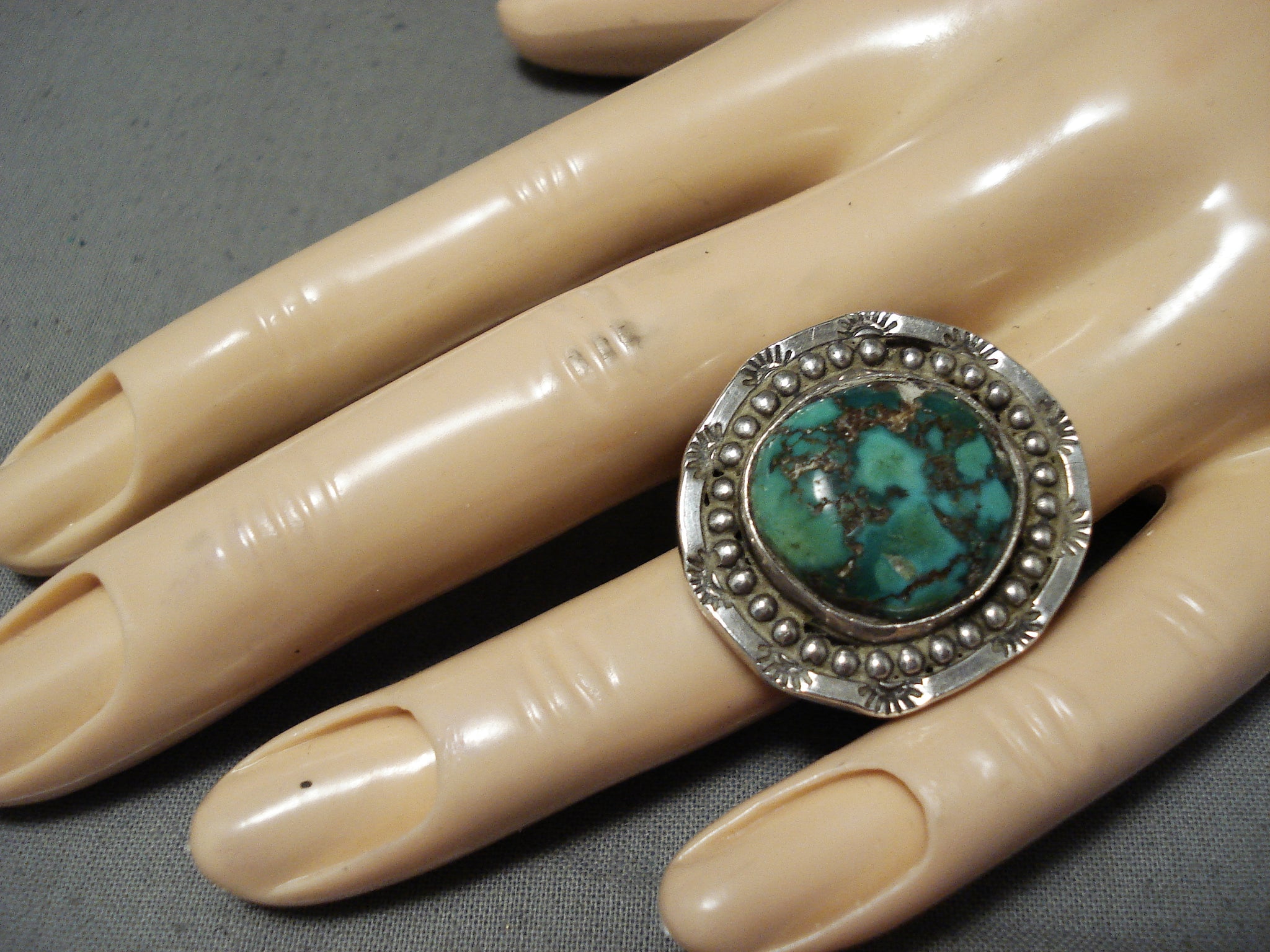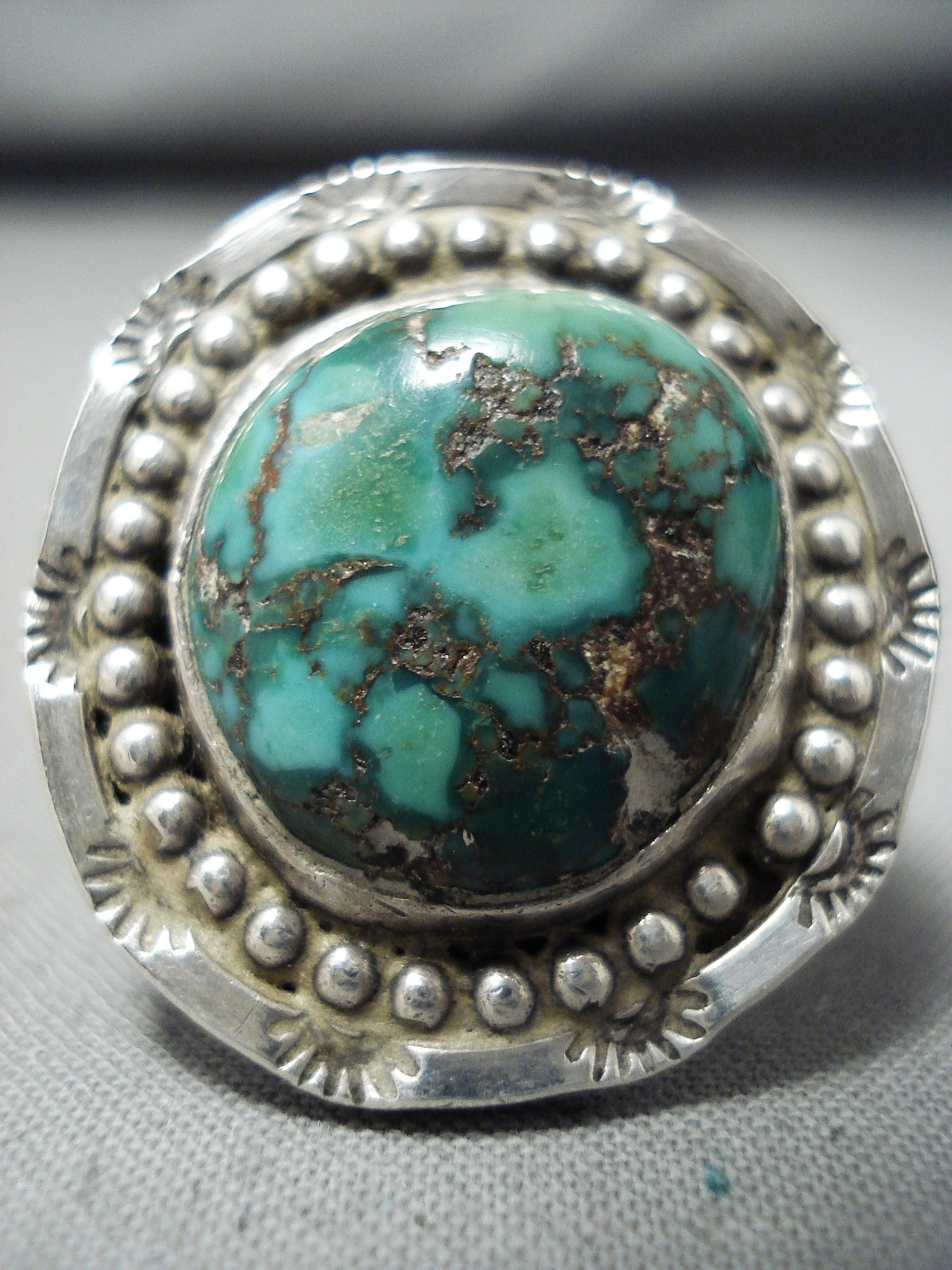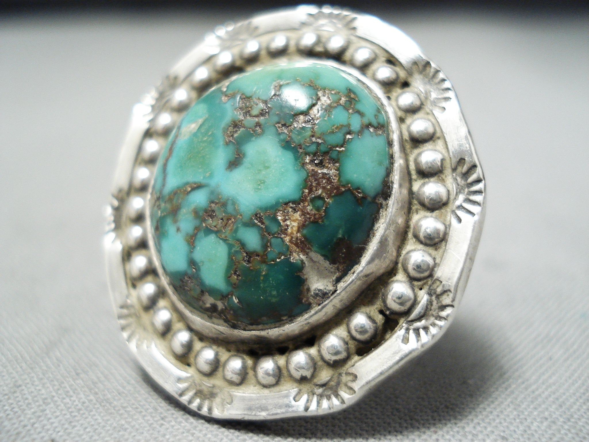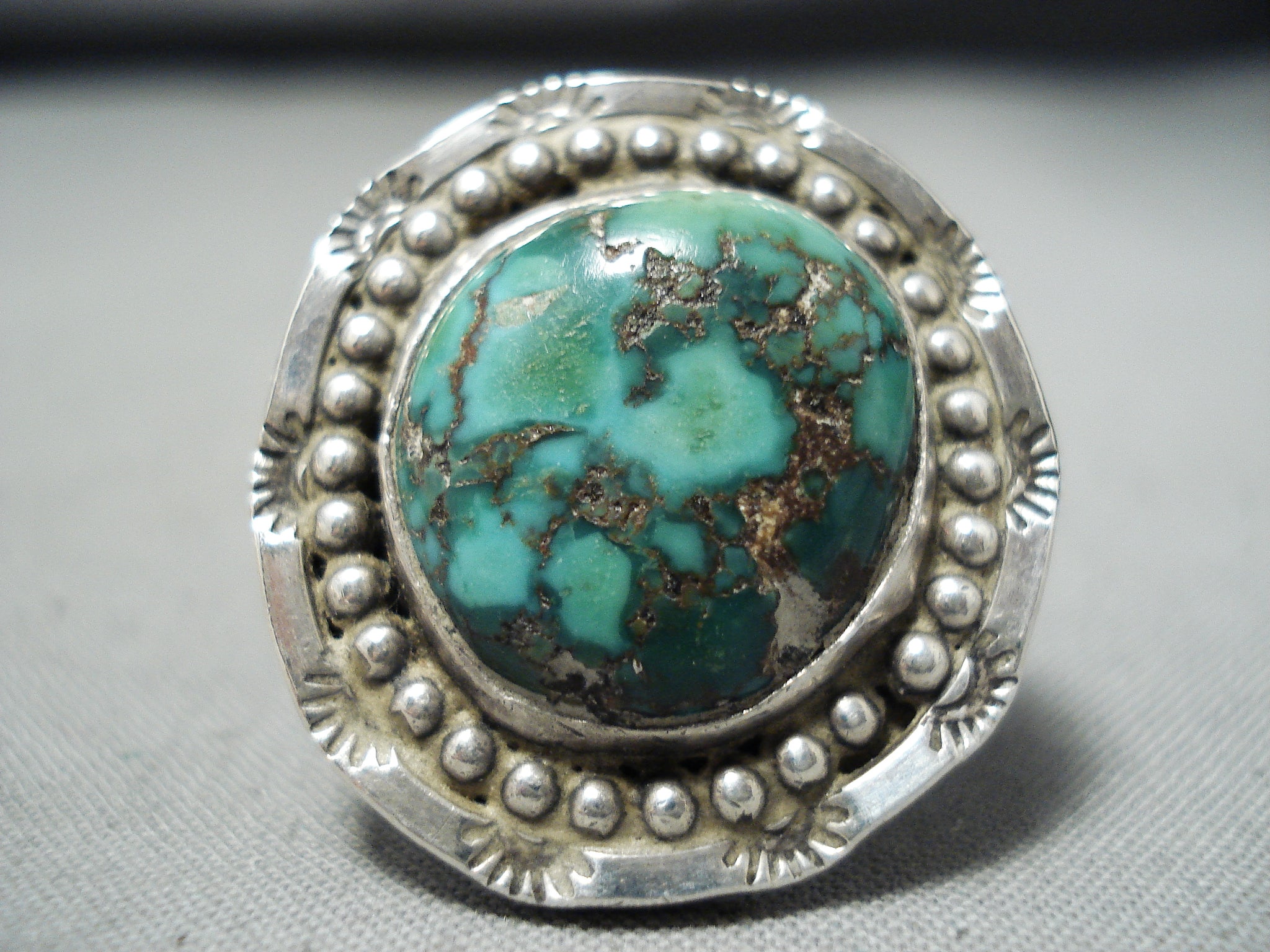 Fabulous Vintage Native American Navajo Green Turquoise Sterling Silver Ring