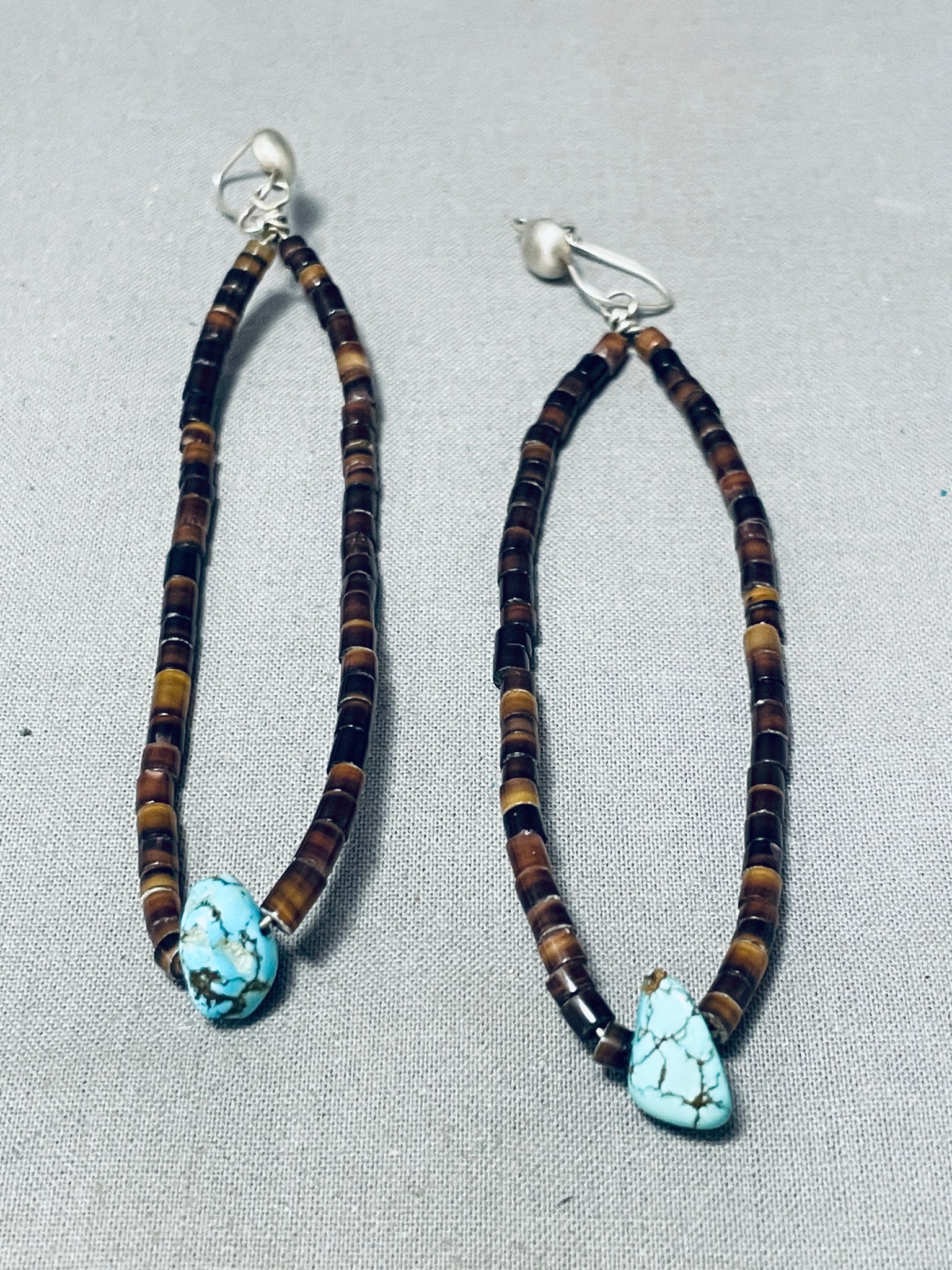 Fabulous Vintage Native American Navajo Heishi & Turquoise Sterling Silver Earrings