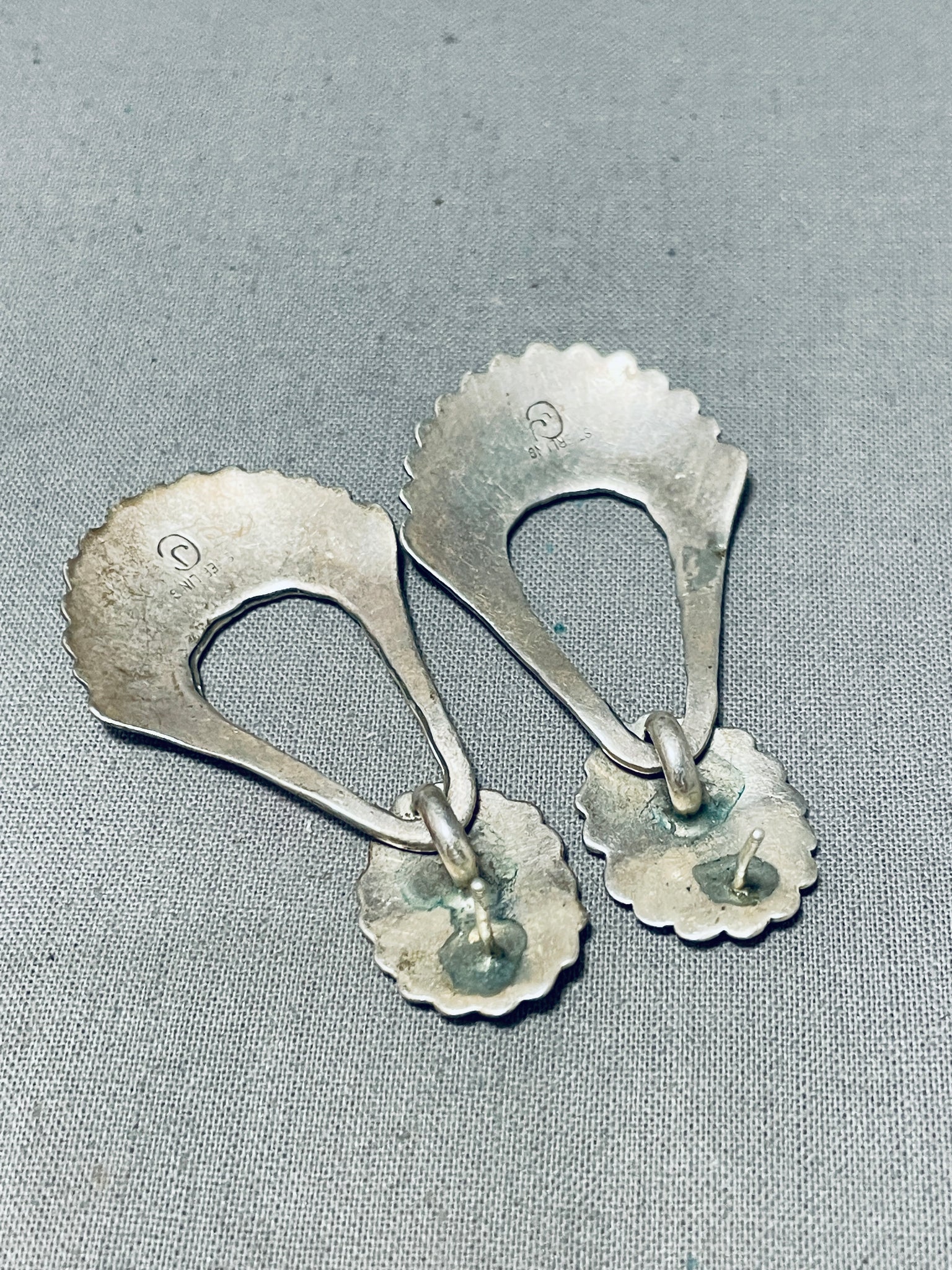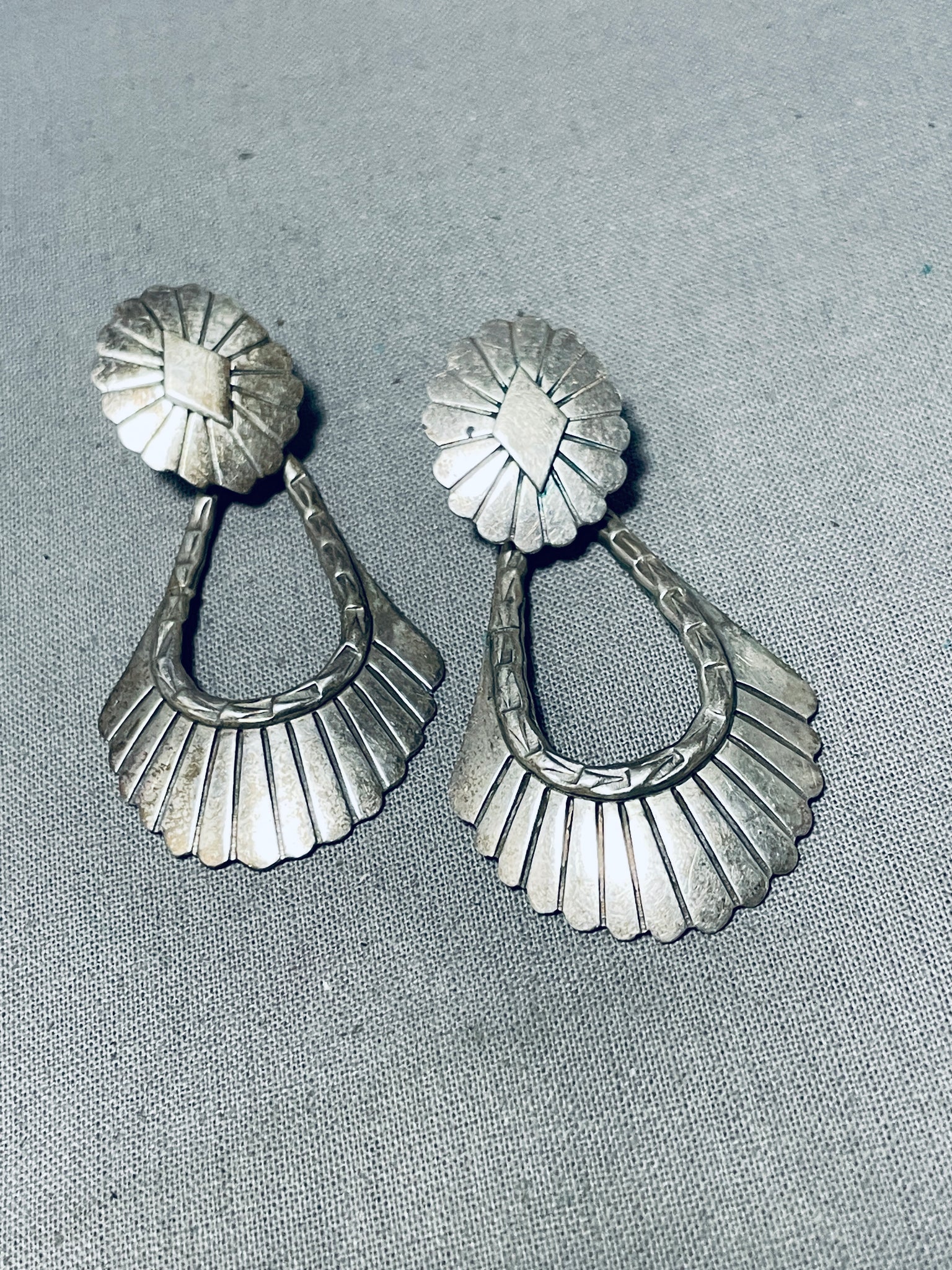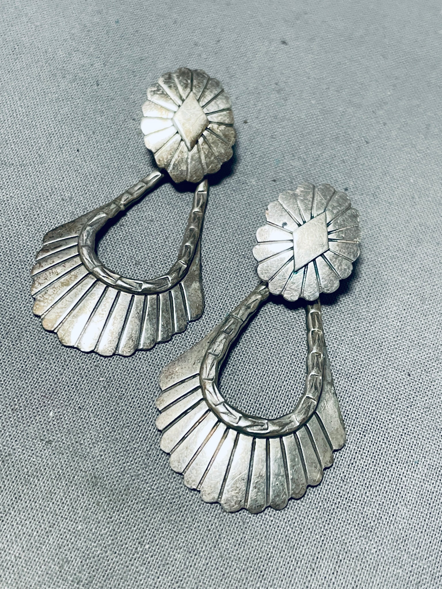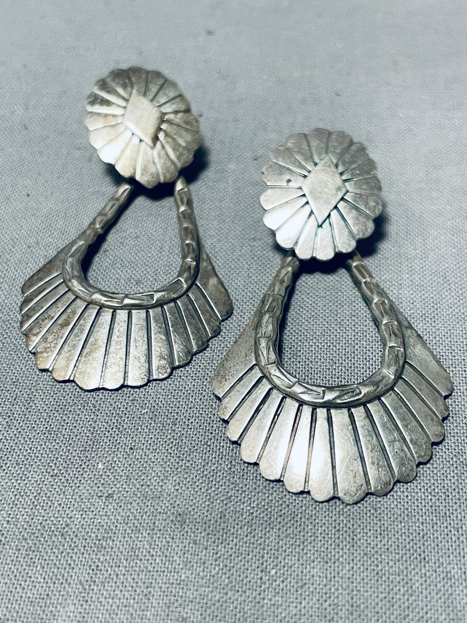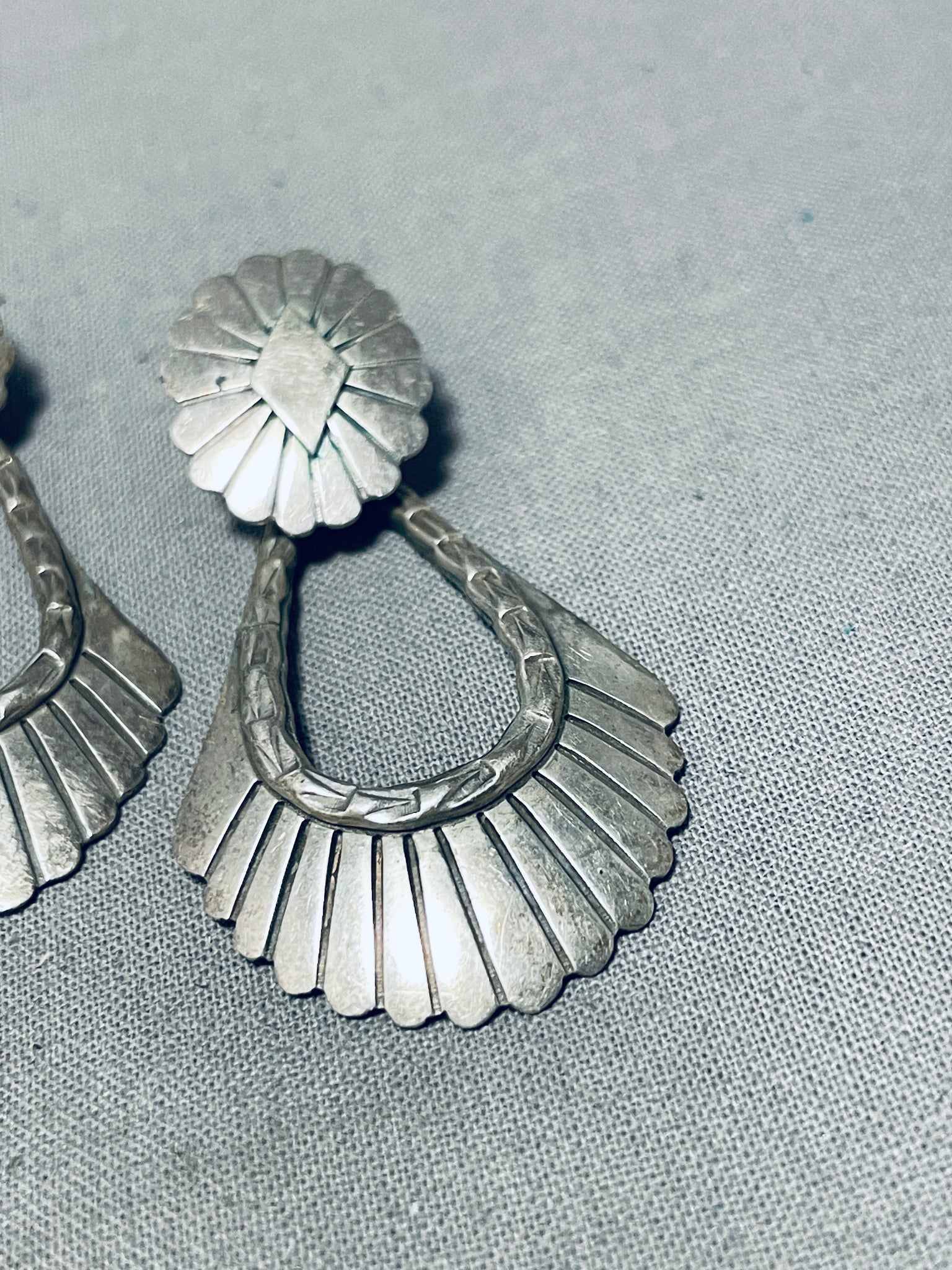 Fabulous Vintage Native American Navajo Sterling Silver Pendant Earrings