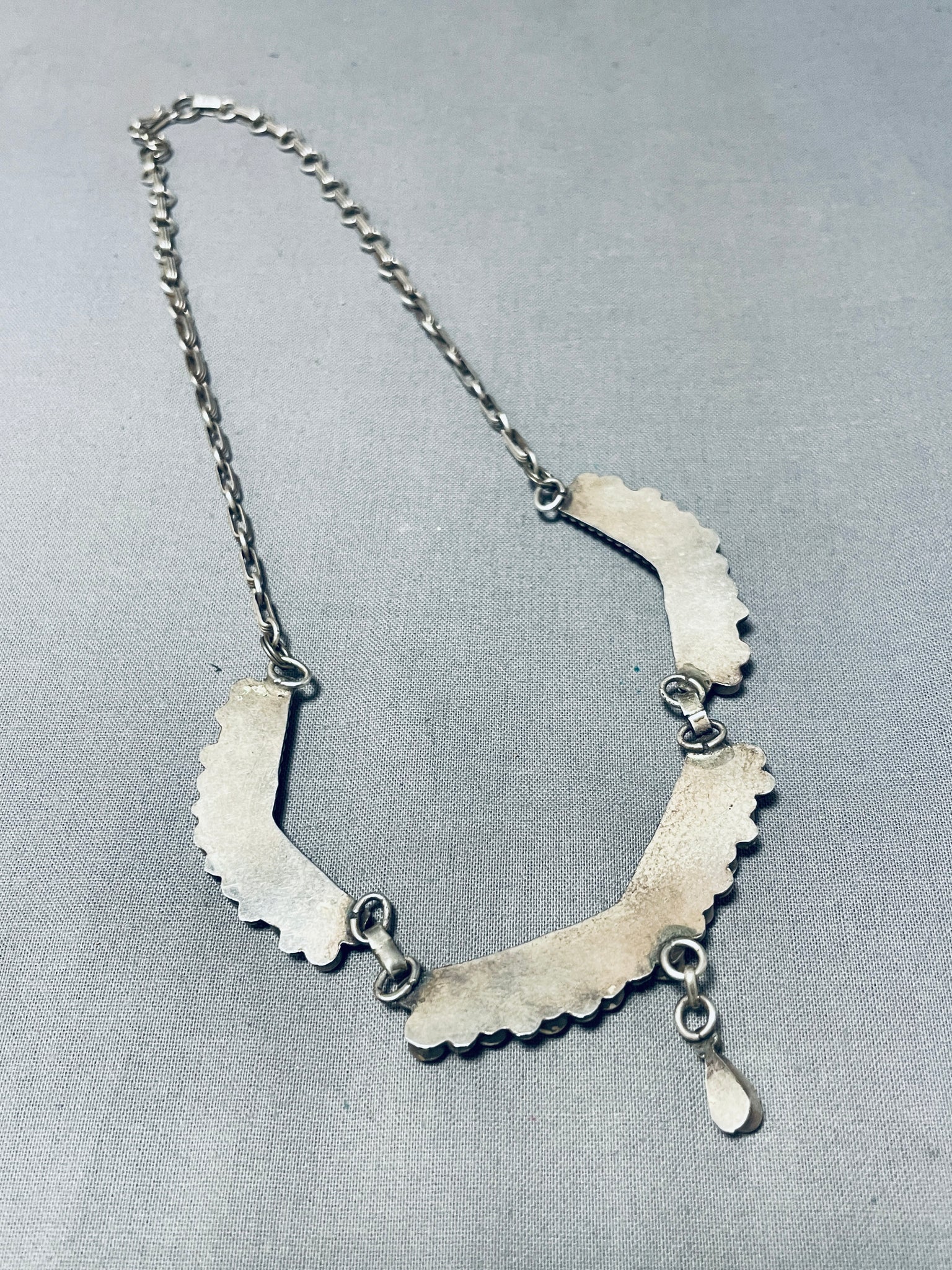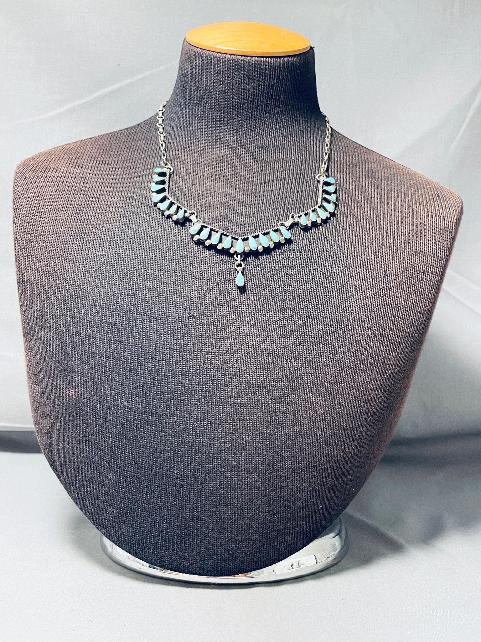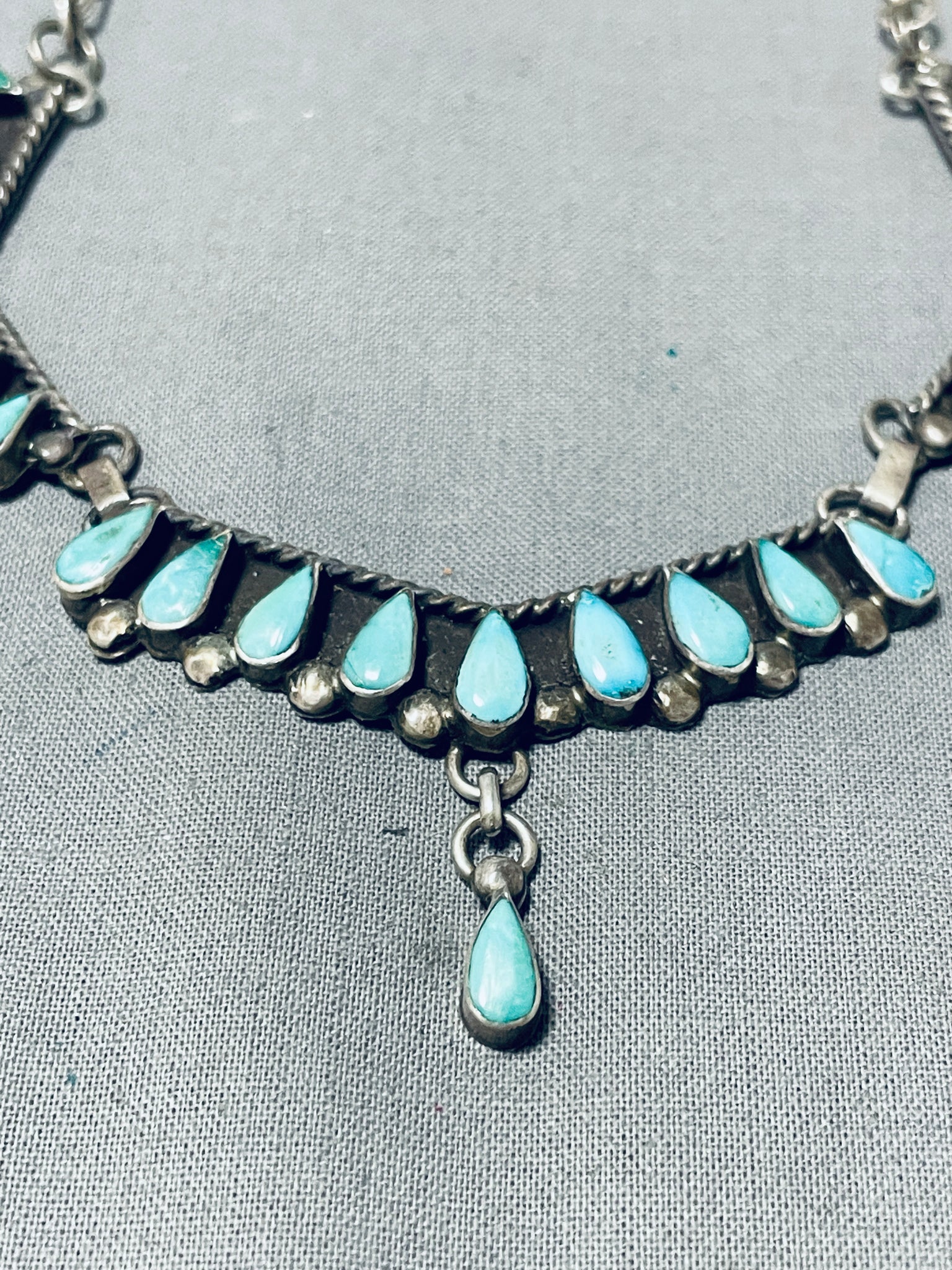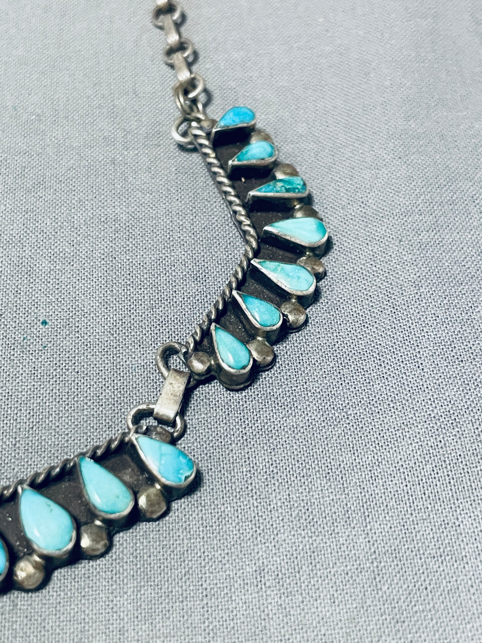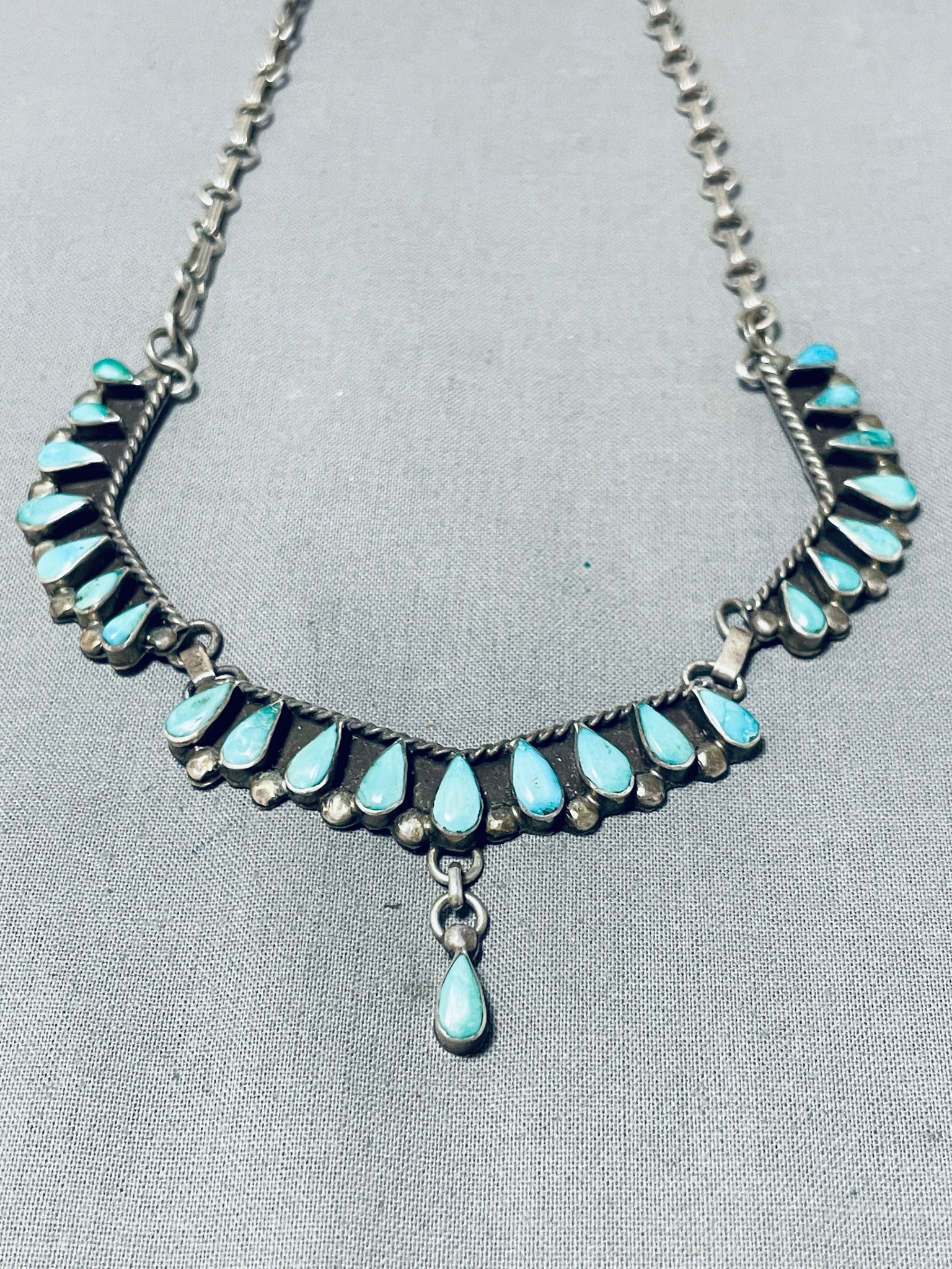 Fabulous Vintage Native American Zuni Blue Gem Turquoise Sterling Silver Necklace