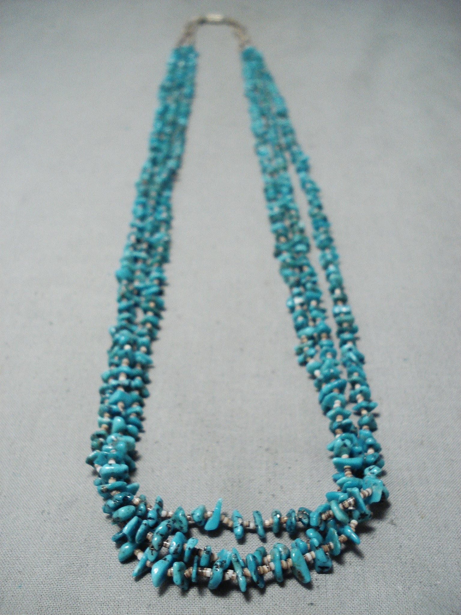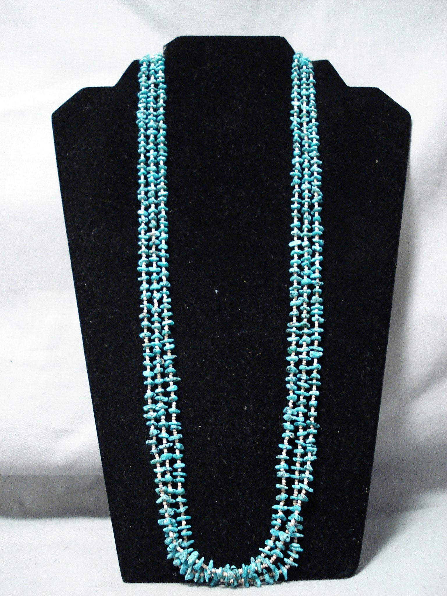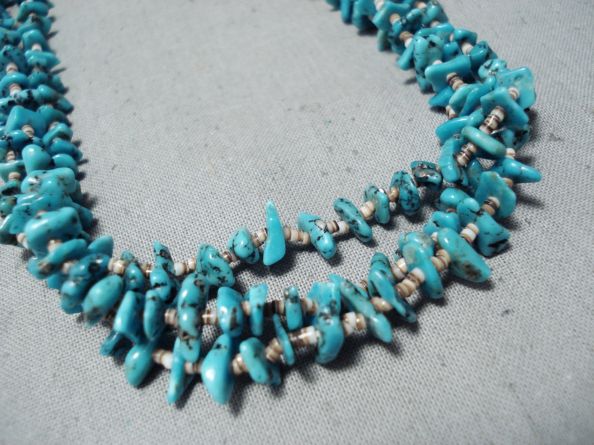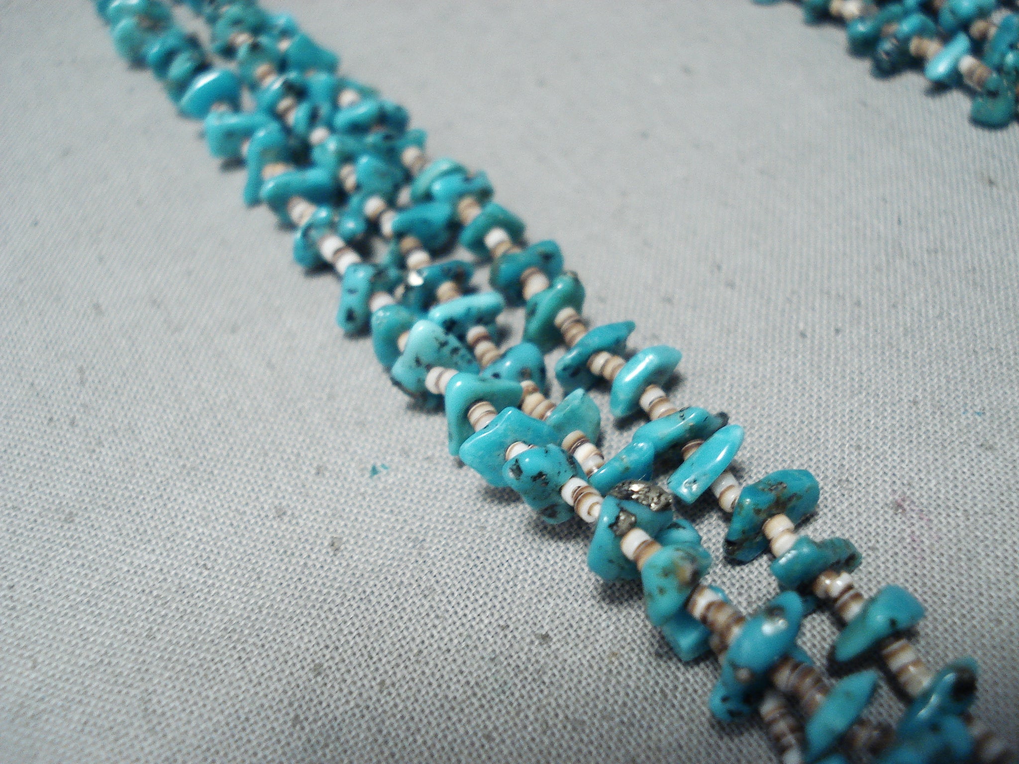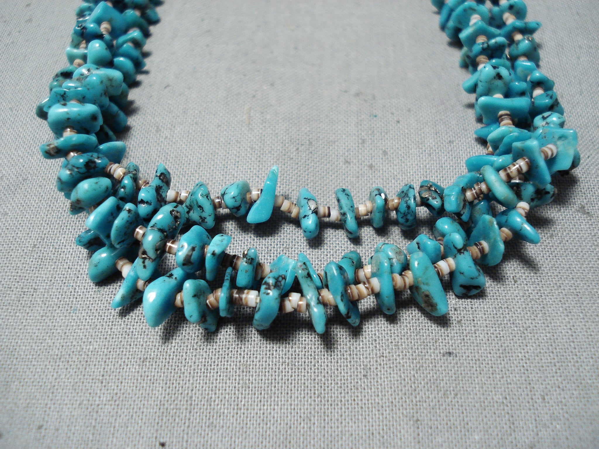 Fabulous Vintage Navajo Old Kingman Turquoise Heishi Necklace Native American