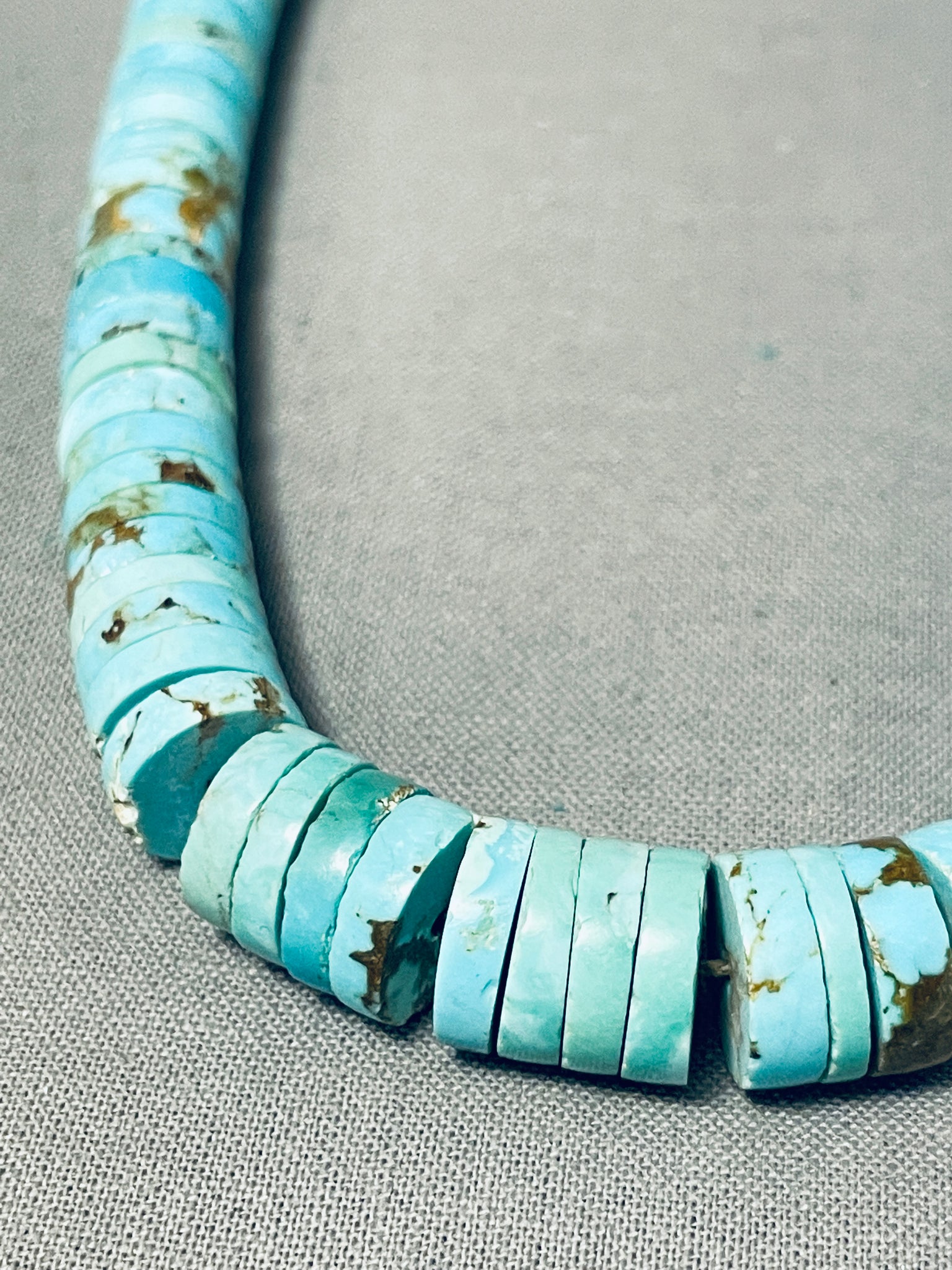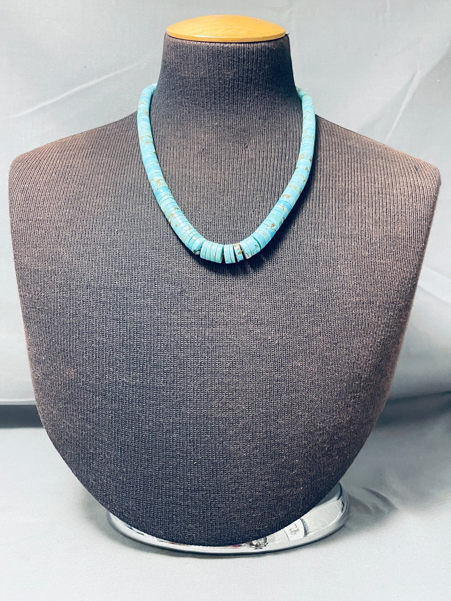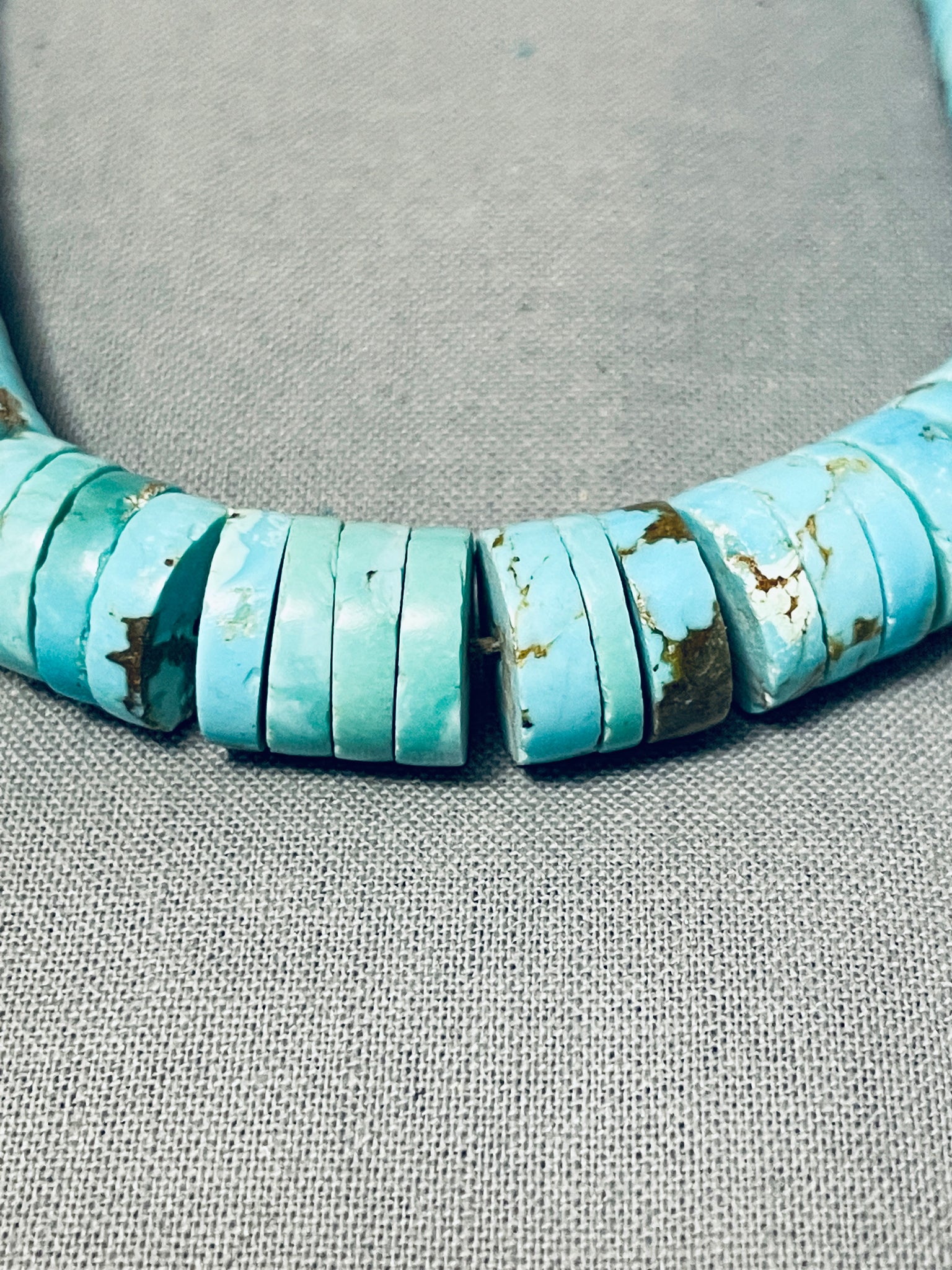 Fabulous Vintage Santo Domingo #8 Turquoise Mine Sterling Silver Necklace