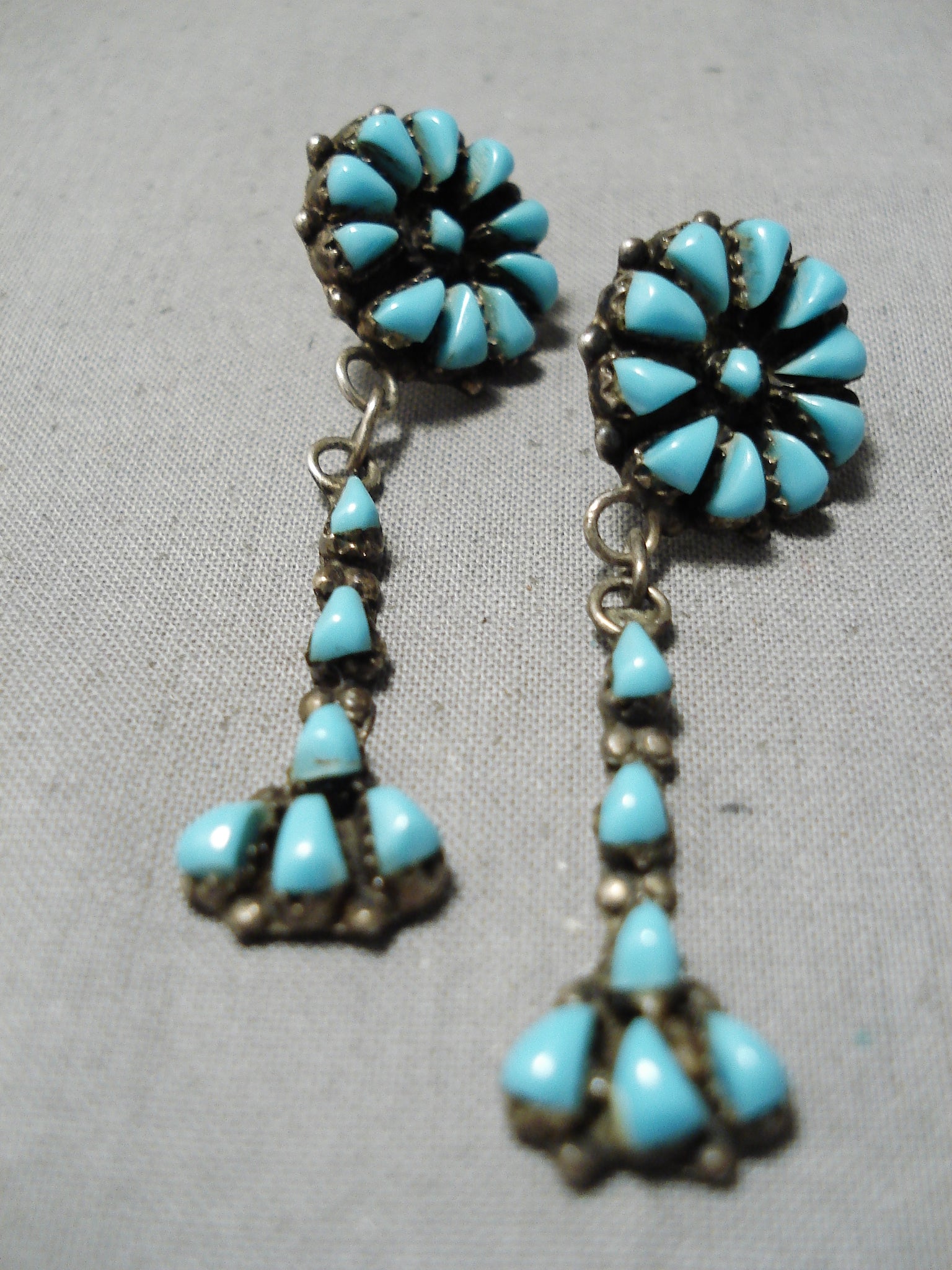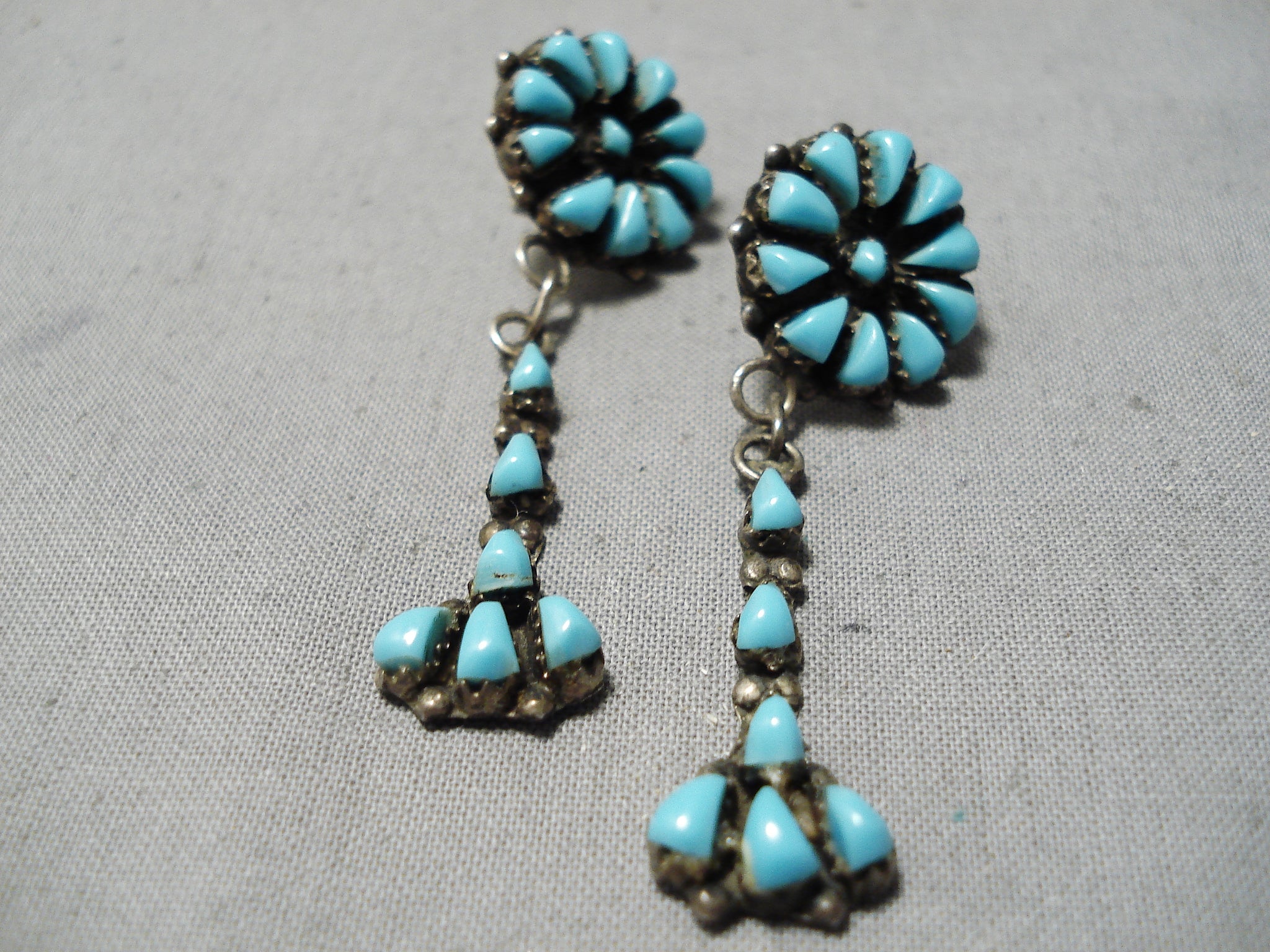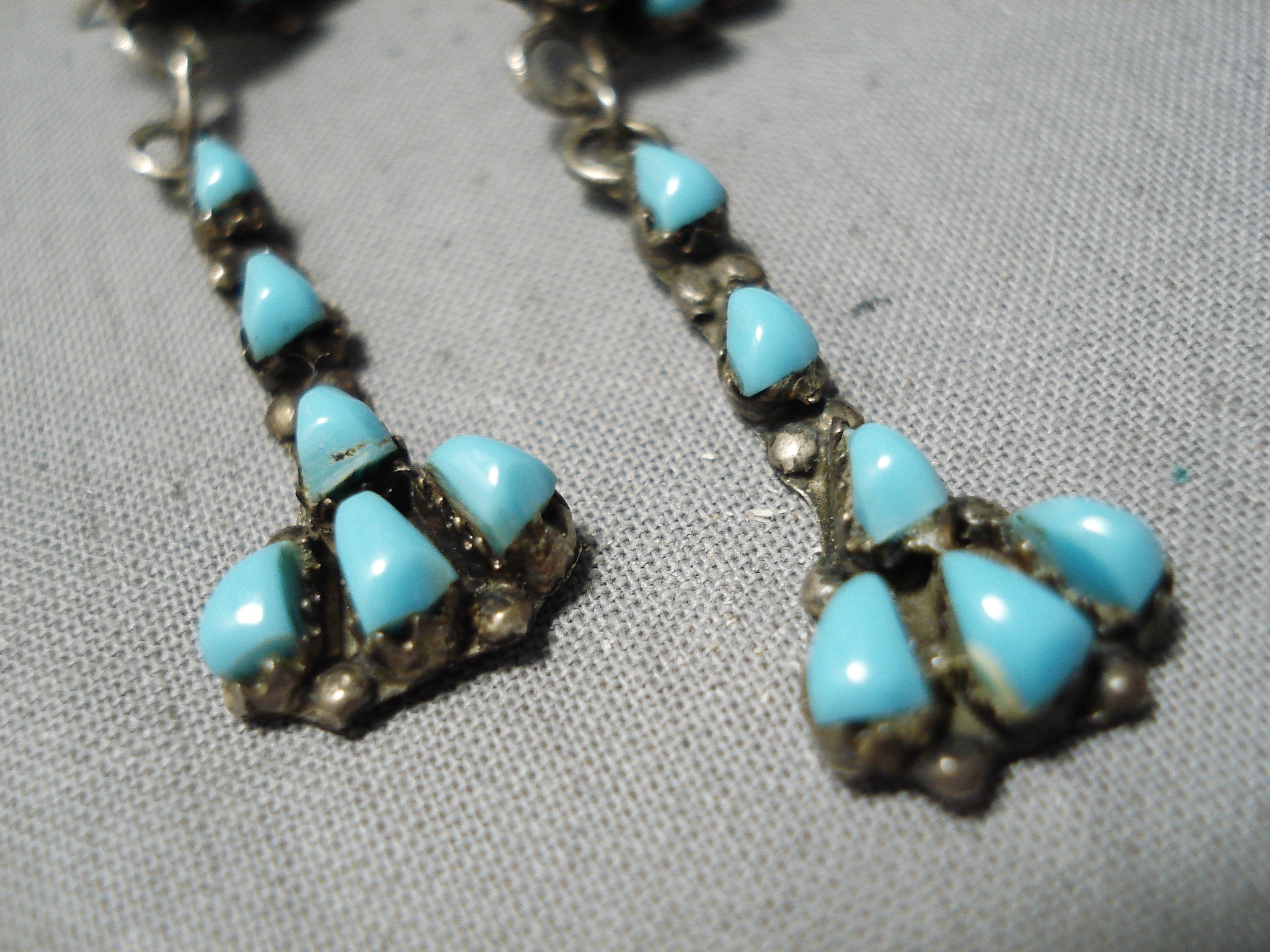 Fabulous Vintage Zuni Native American Navajo Turquoise Sterling Silver Earrings Old
