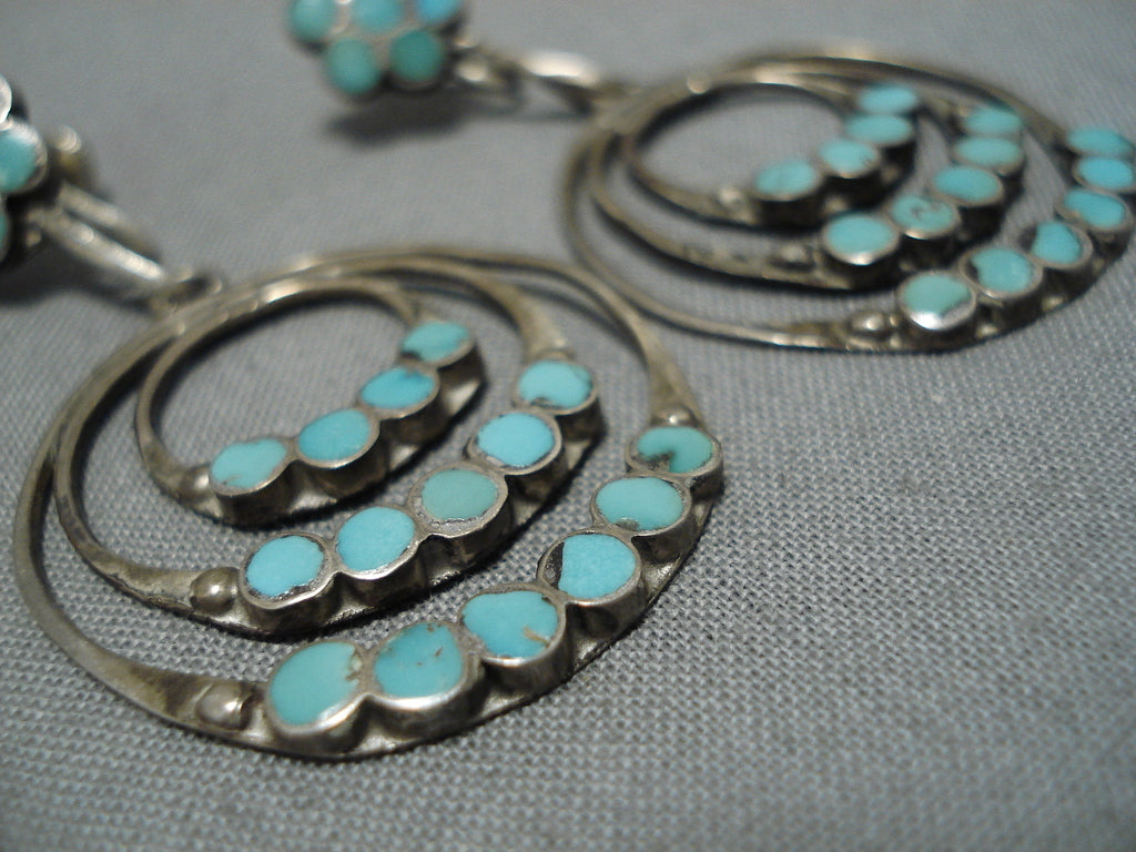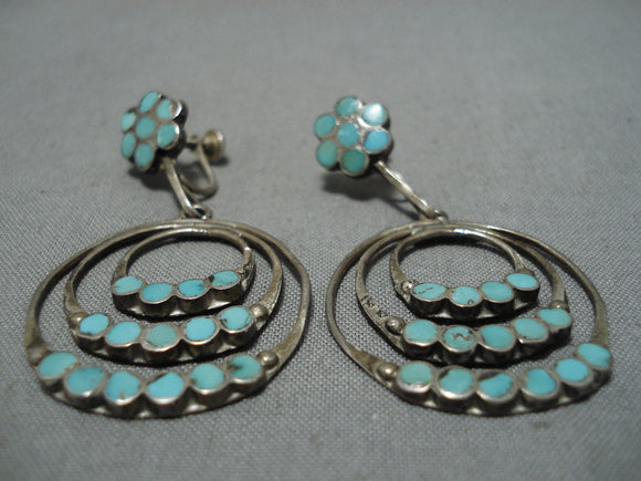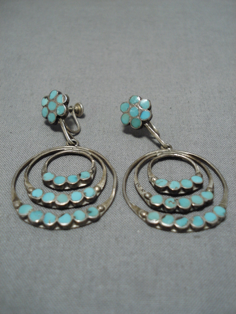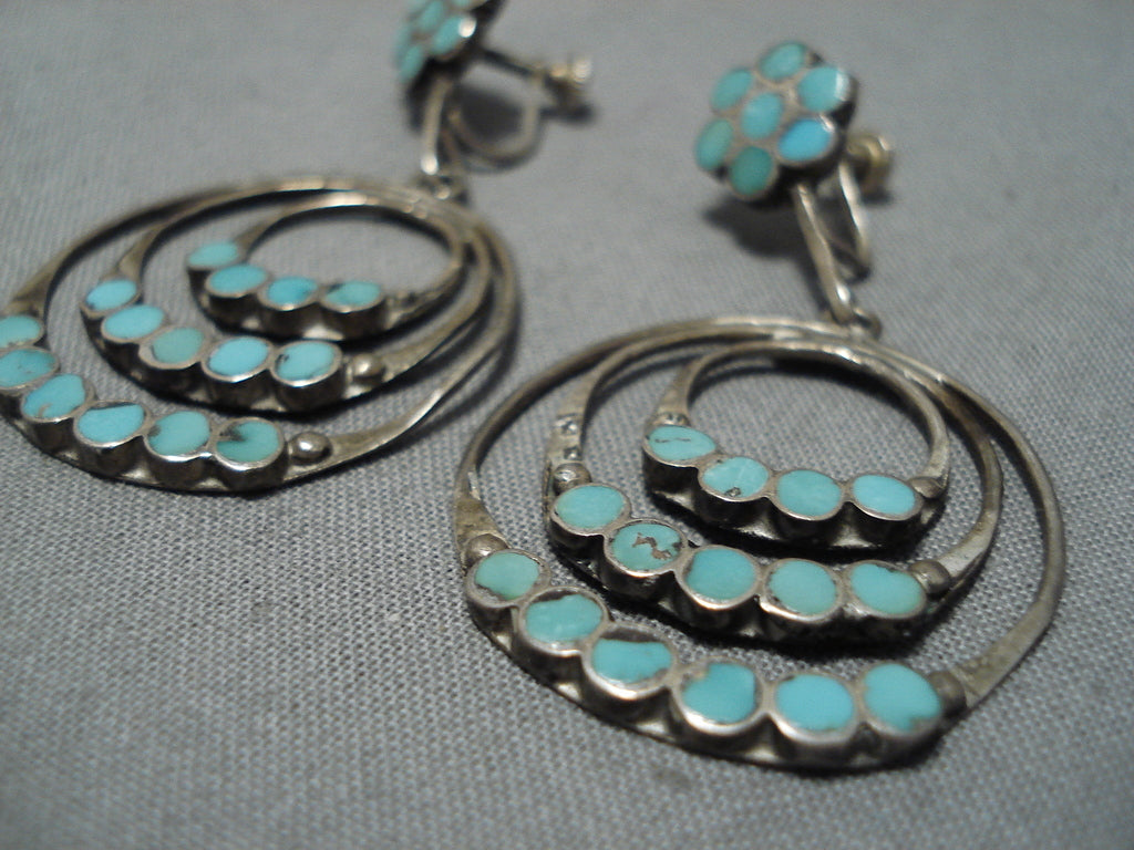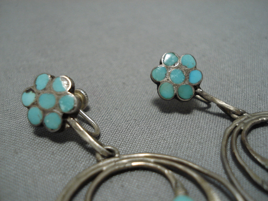 Fabulous Vintage Zuni Native American Sterling Silver Turquoise Earrings