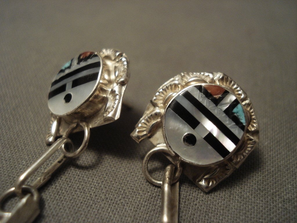 Famous Artist Zuni Eldred Martinez Turquoise Coral Native American Jewelry Silver Earrings