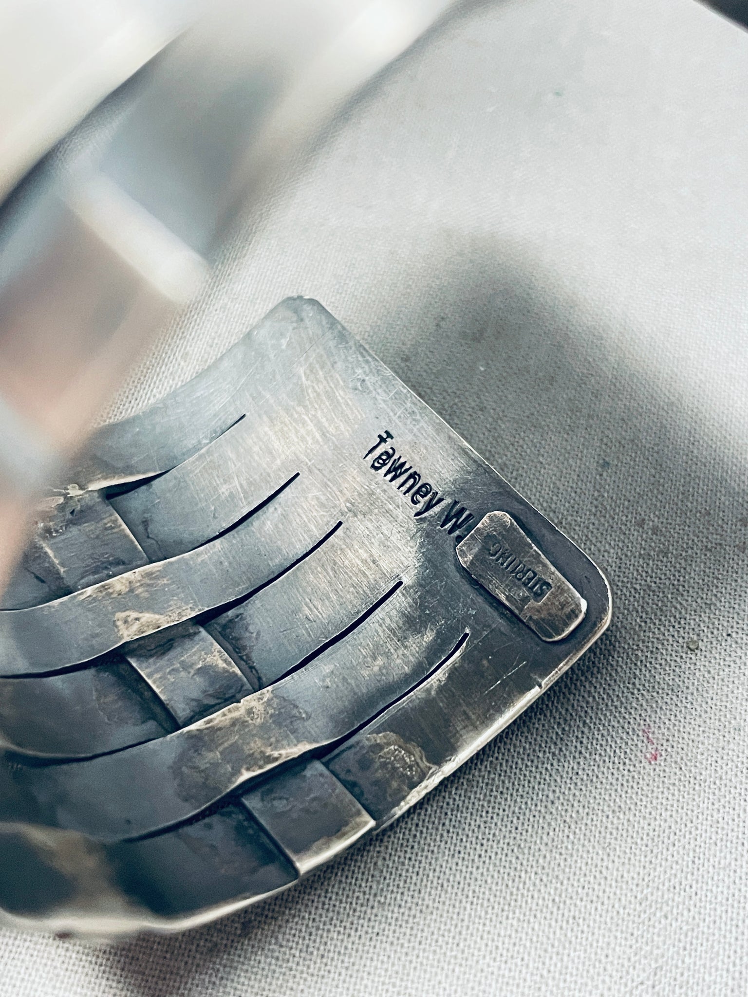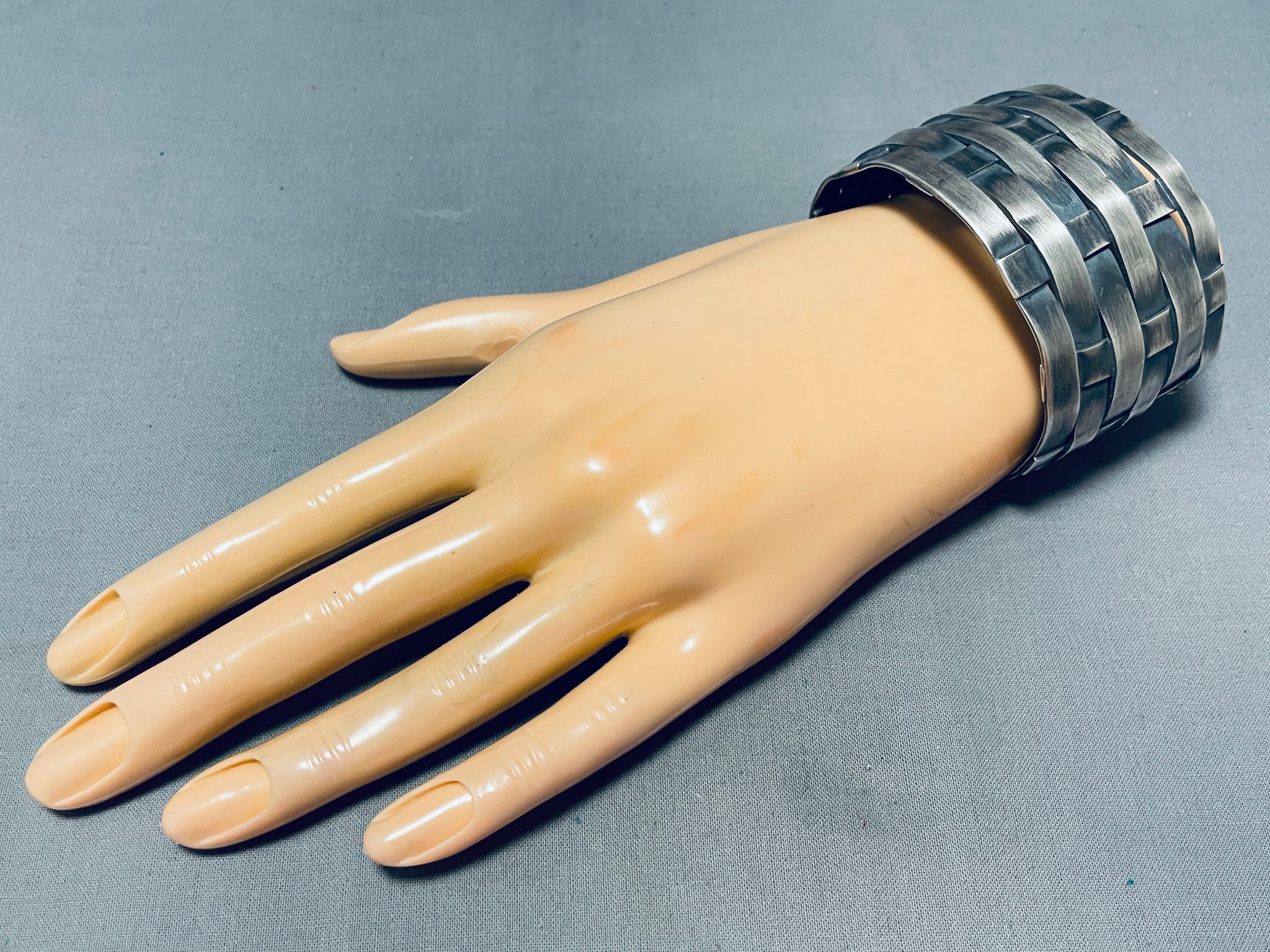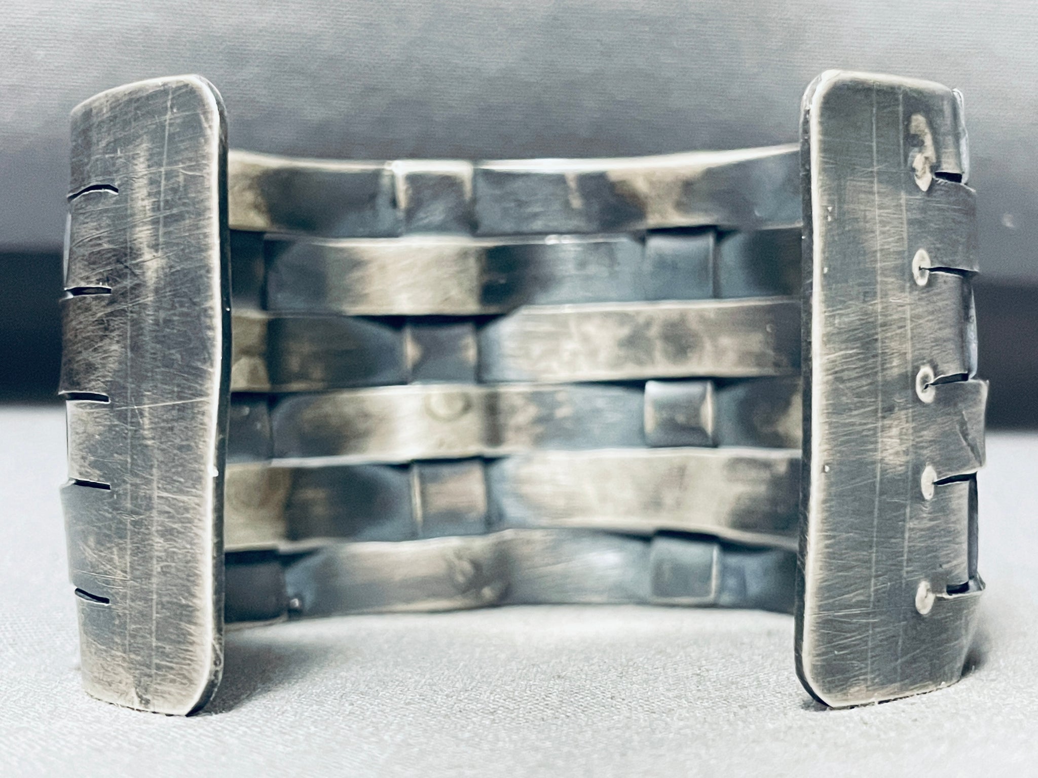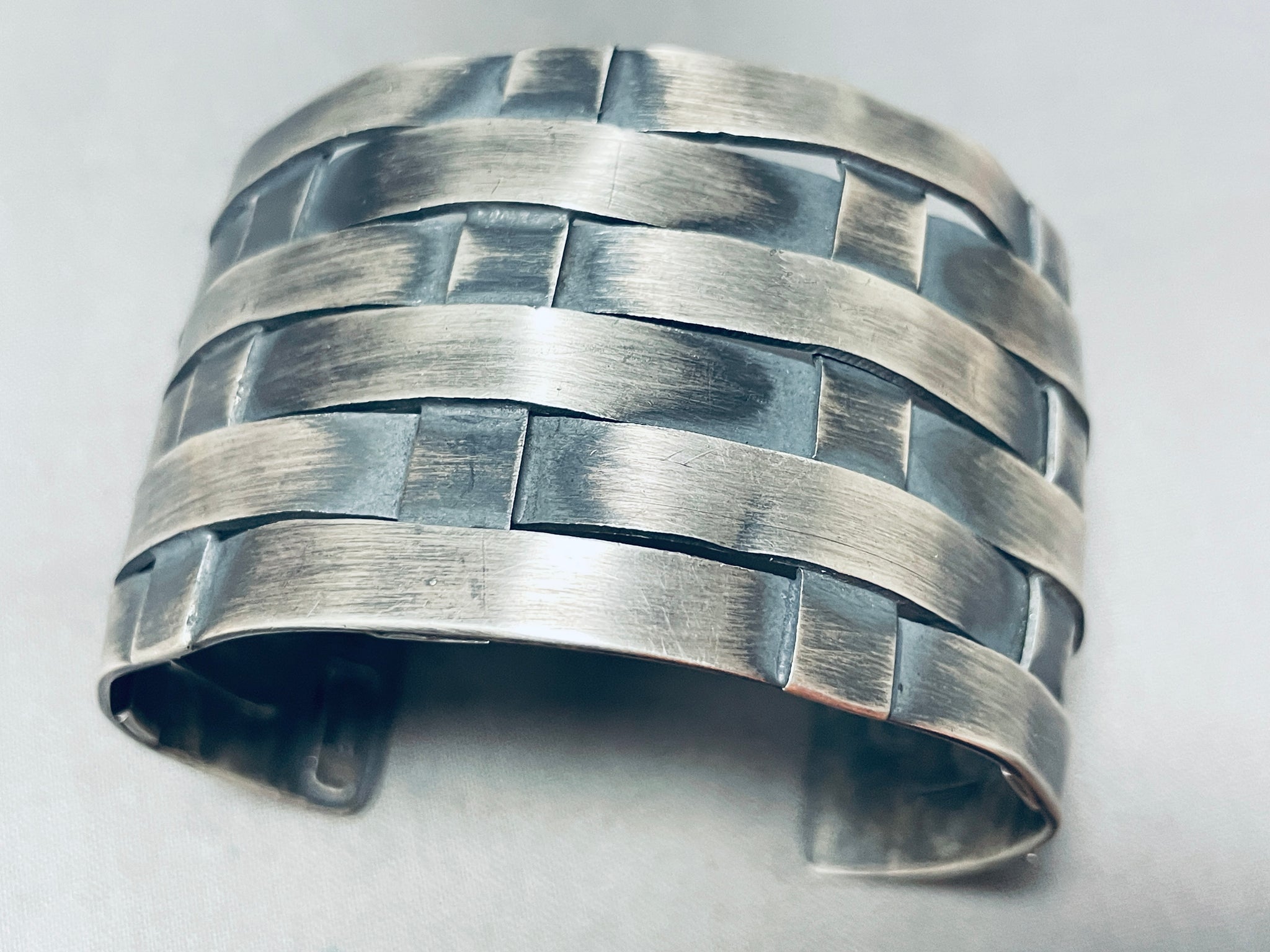 Fantastic Native American Navajo Sterling Silver Basket Weave Massive Bracelet