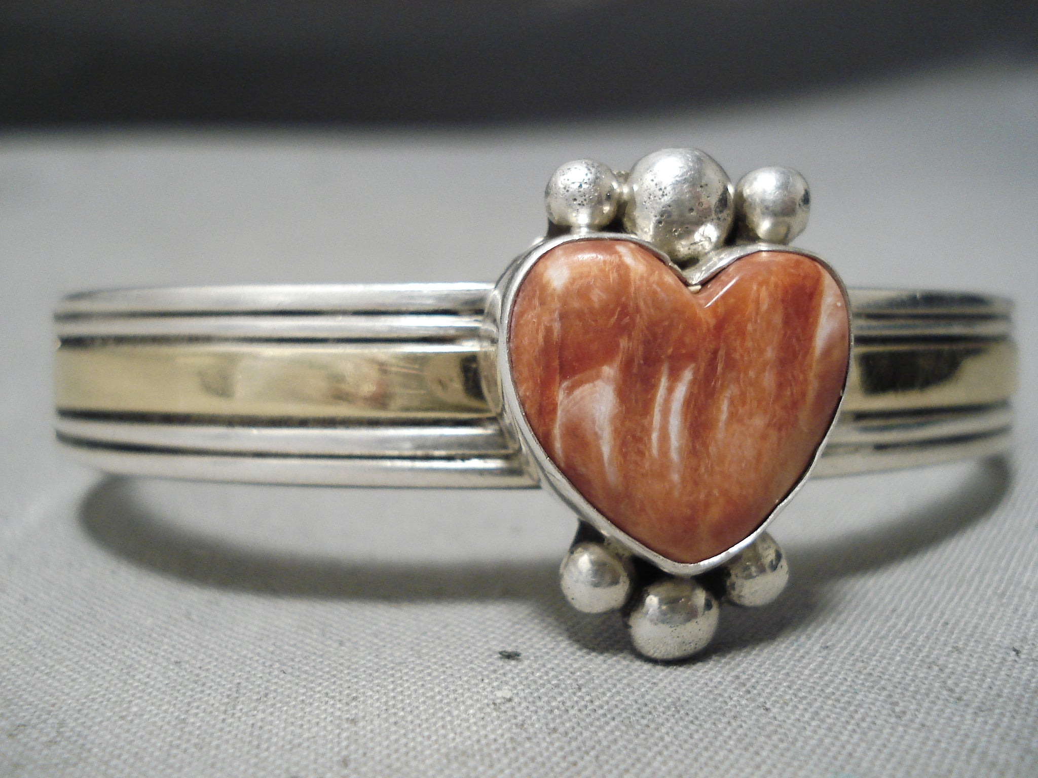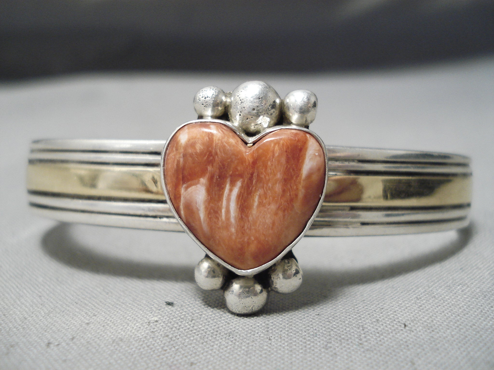 Fantastic Vintage Native American Navajo Spiny Oyster Sterling Silver 14k Gold Bracelet Old