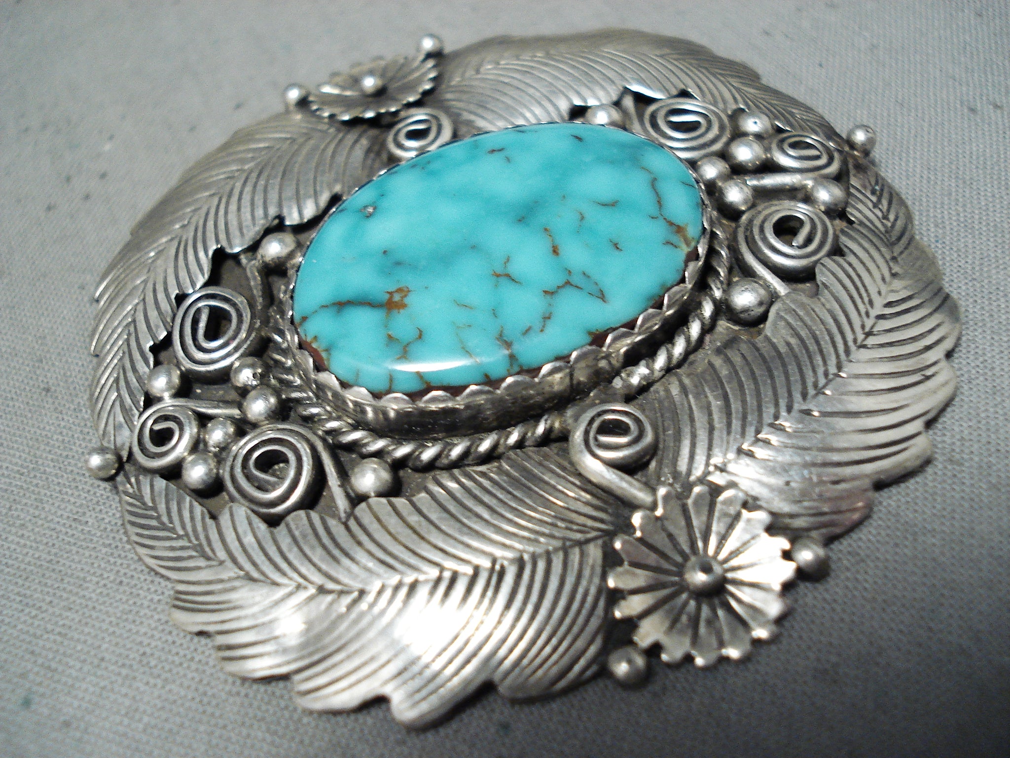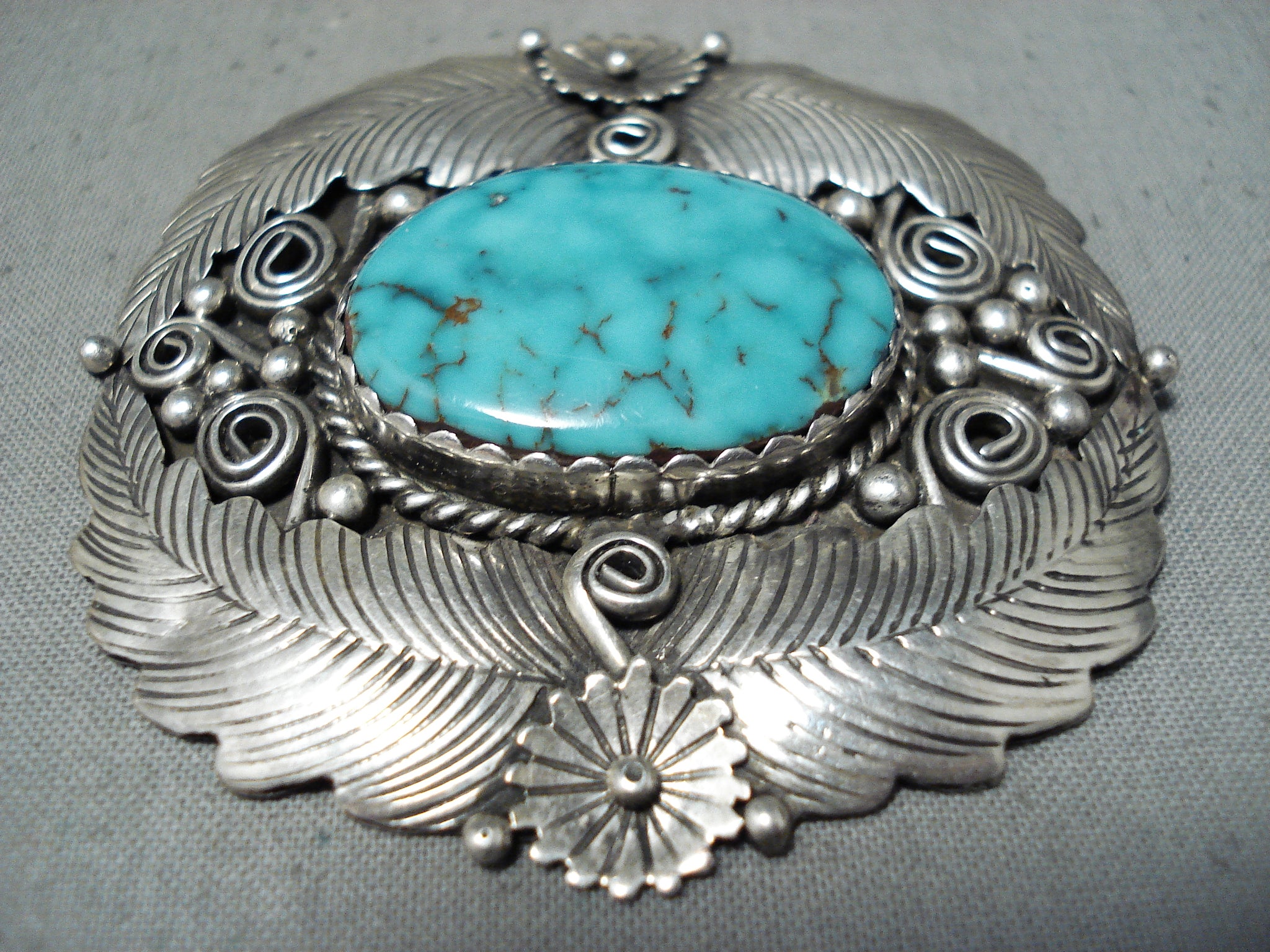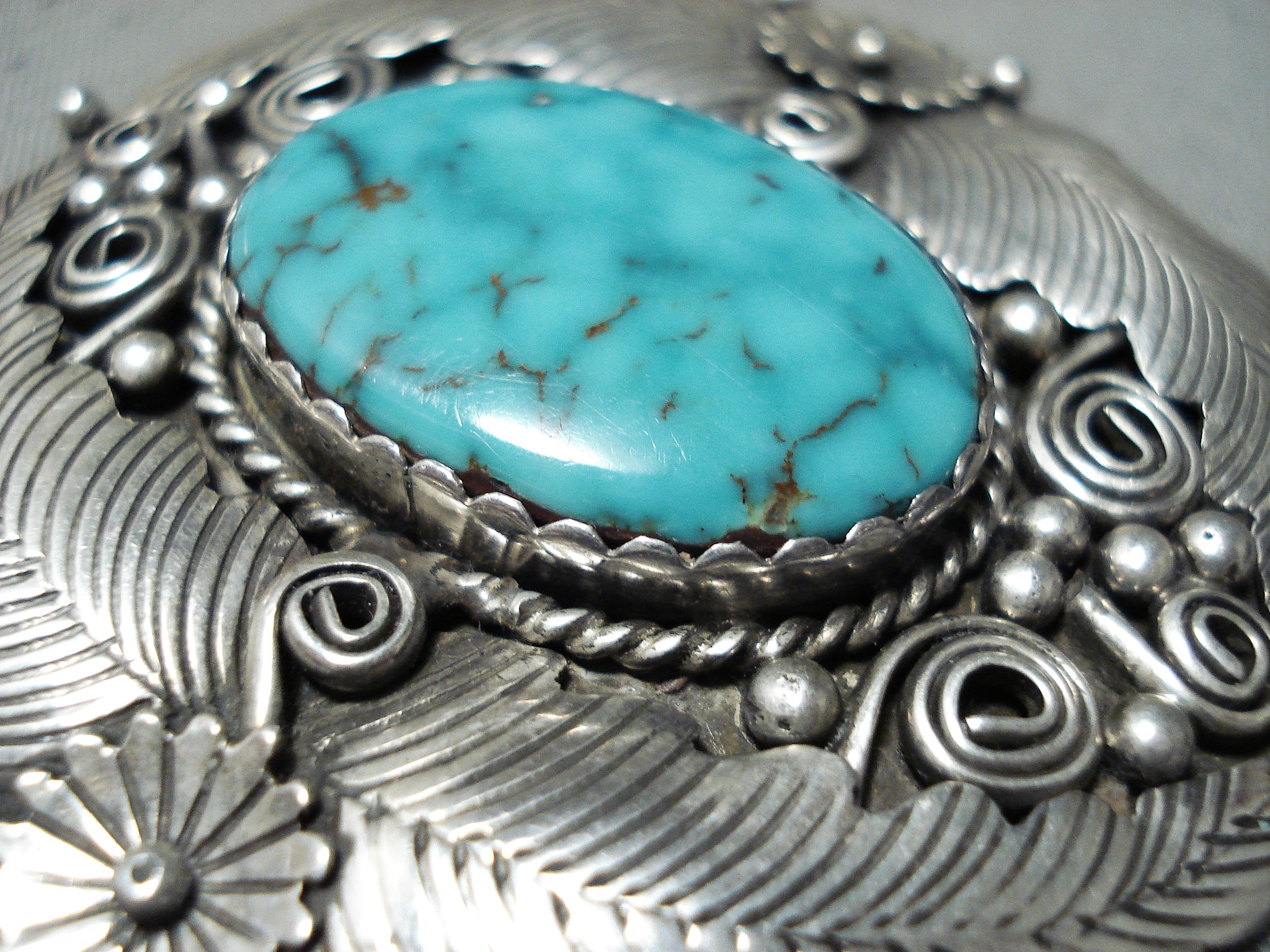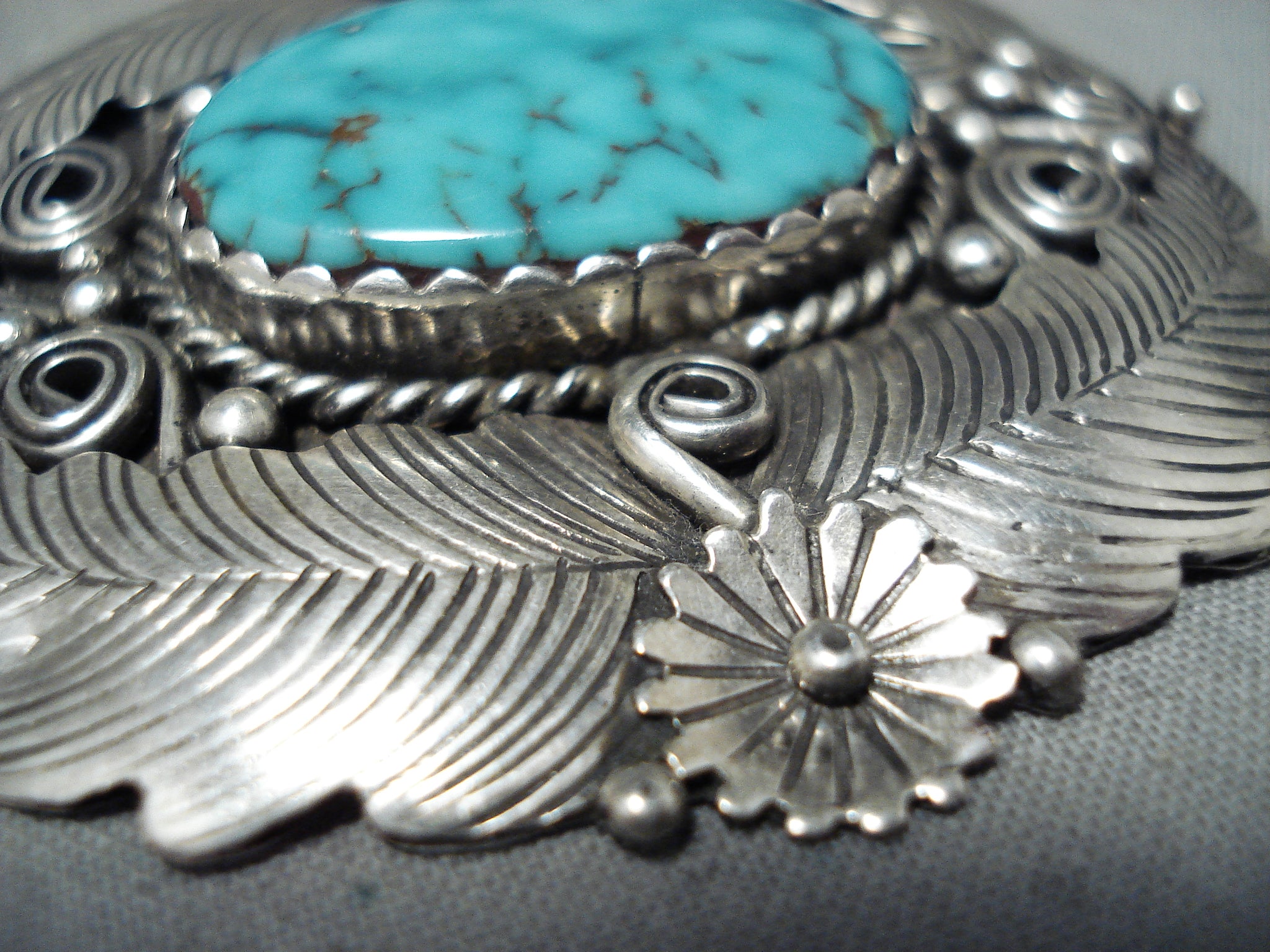 Fascinating Vintage Native American Navajo Kingman Turquoise Sterling Silver Bracelet