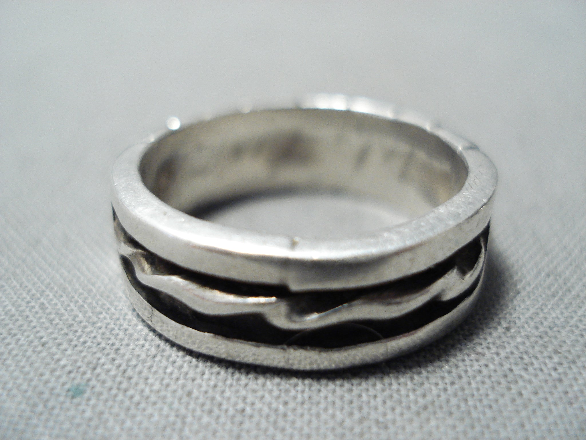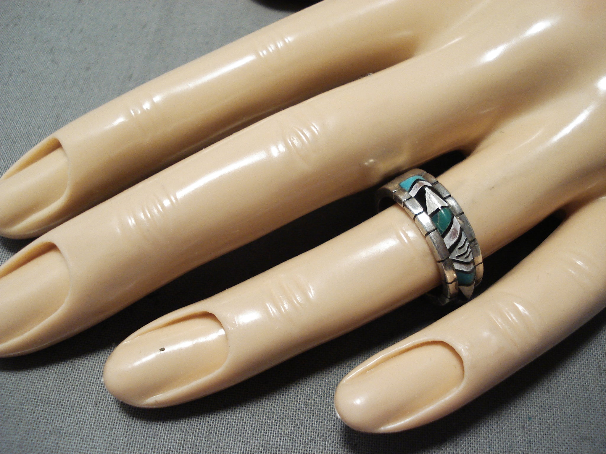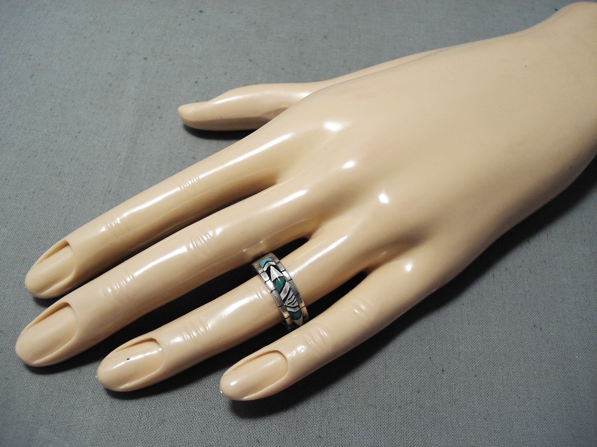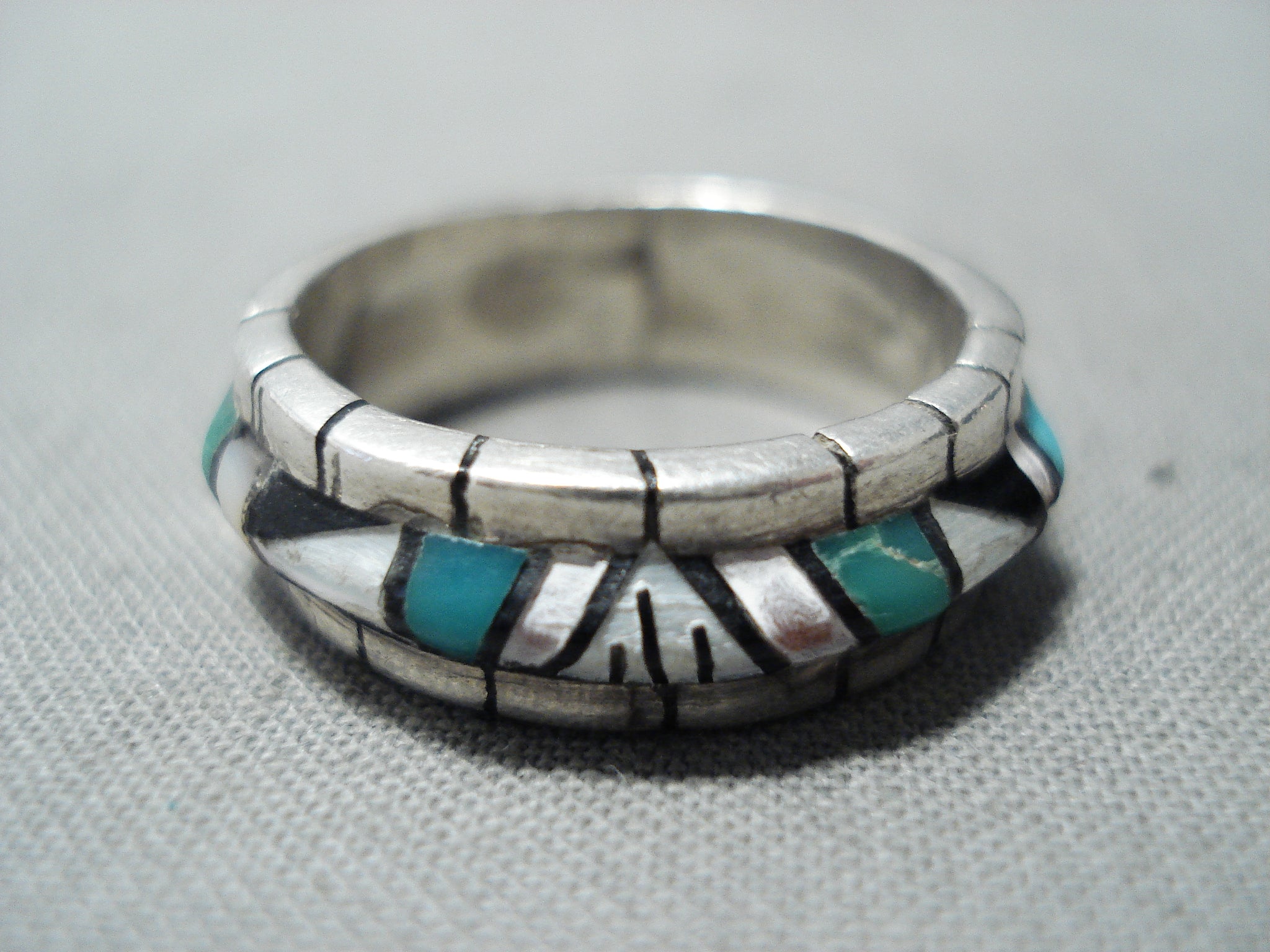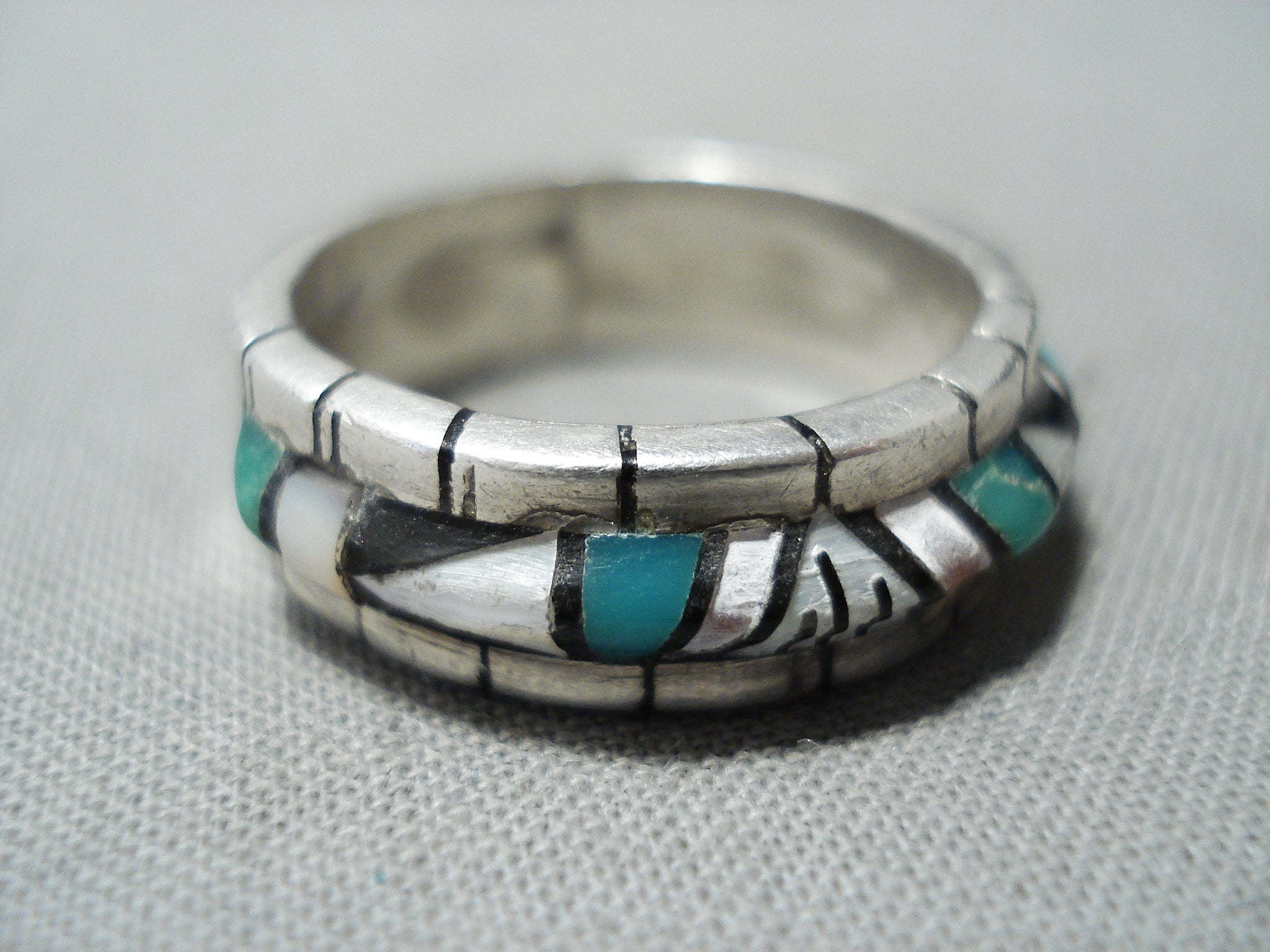 Fascinating Vintage Native American Navajo Turquoise Inlay Sterling Silver Ring