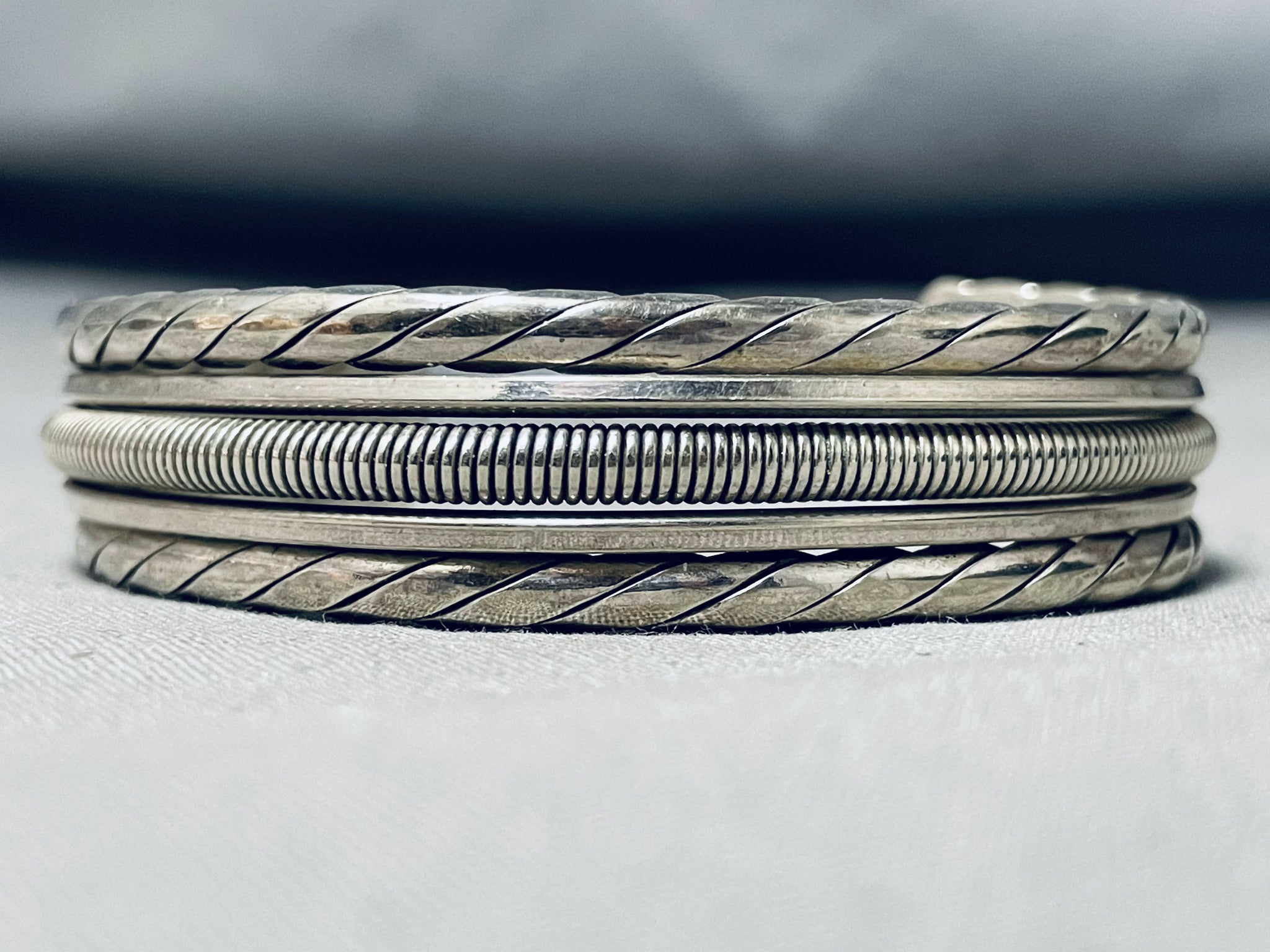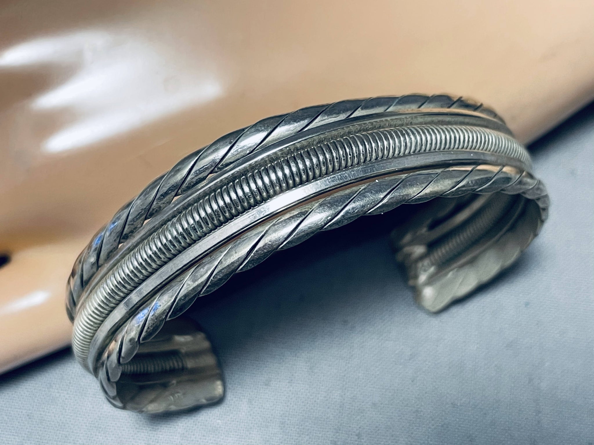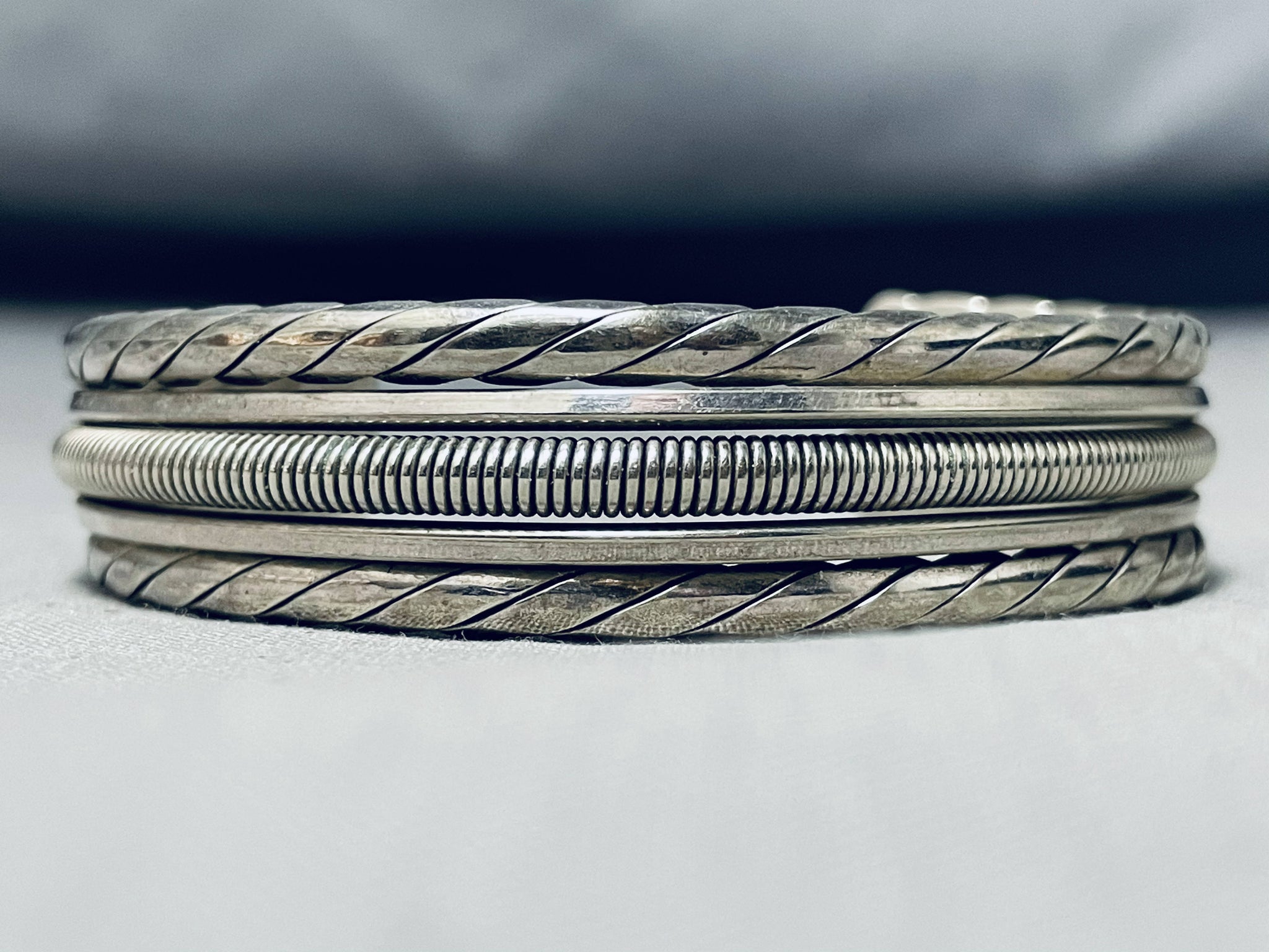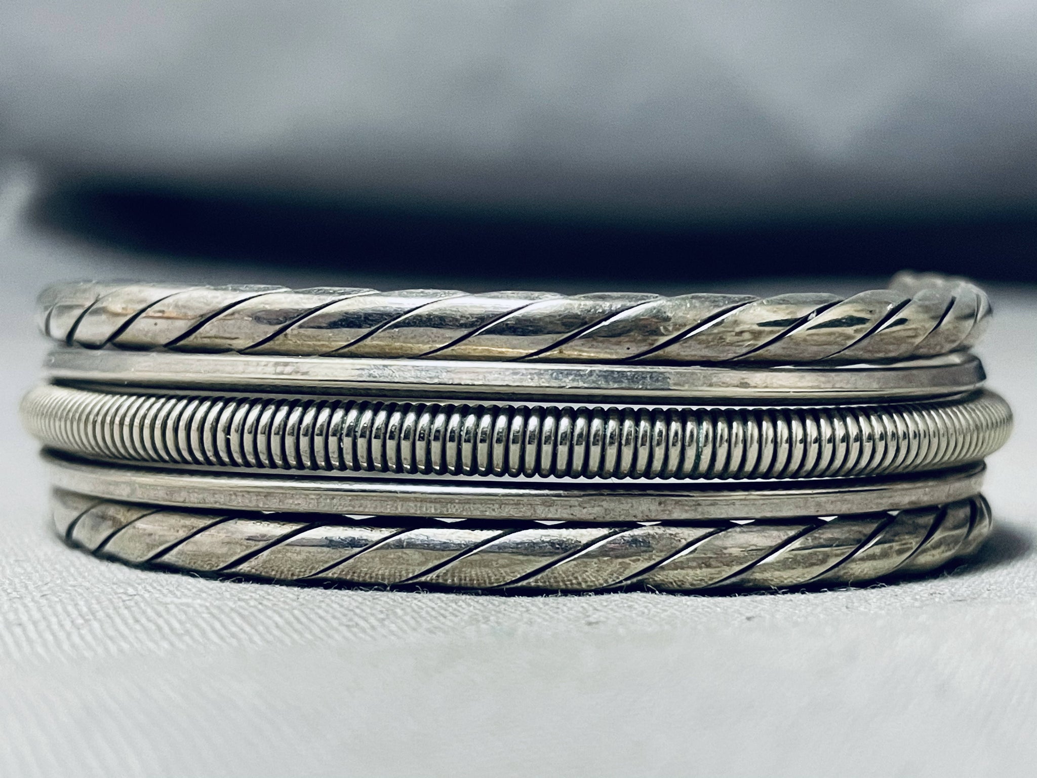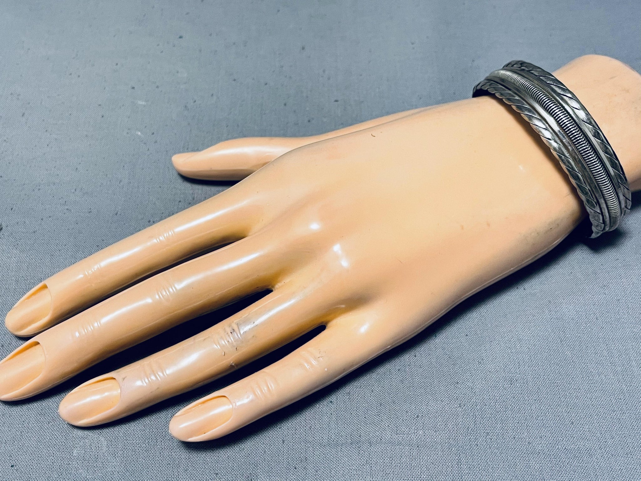 Focused Silver Work Vintage Native American Navajo Sterling Silver Bracelet