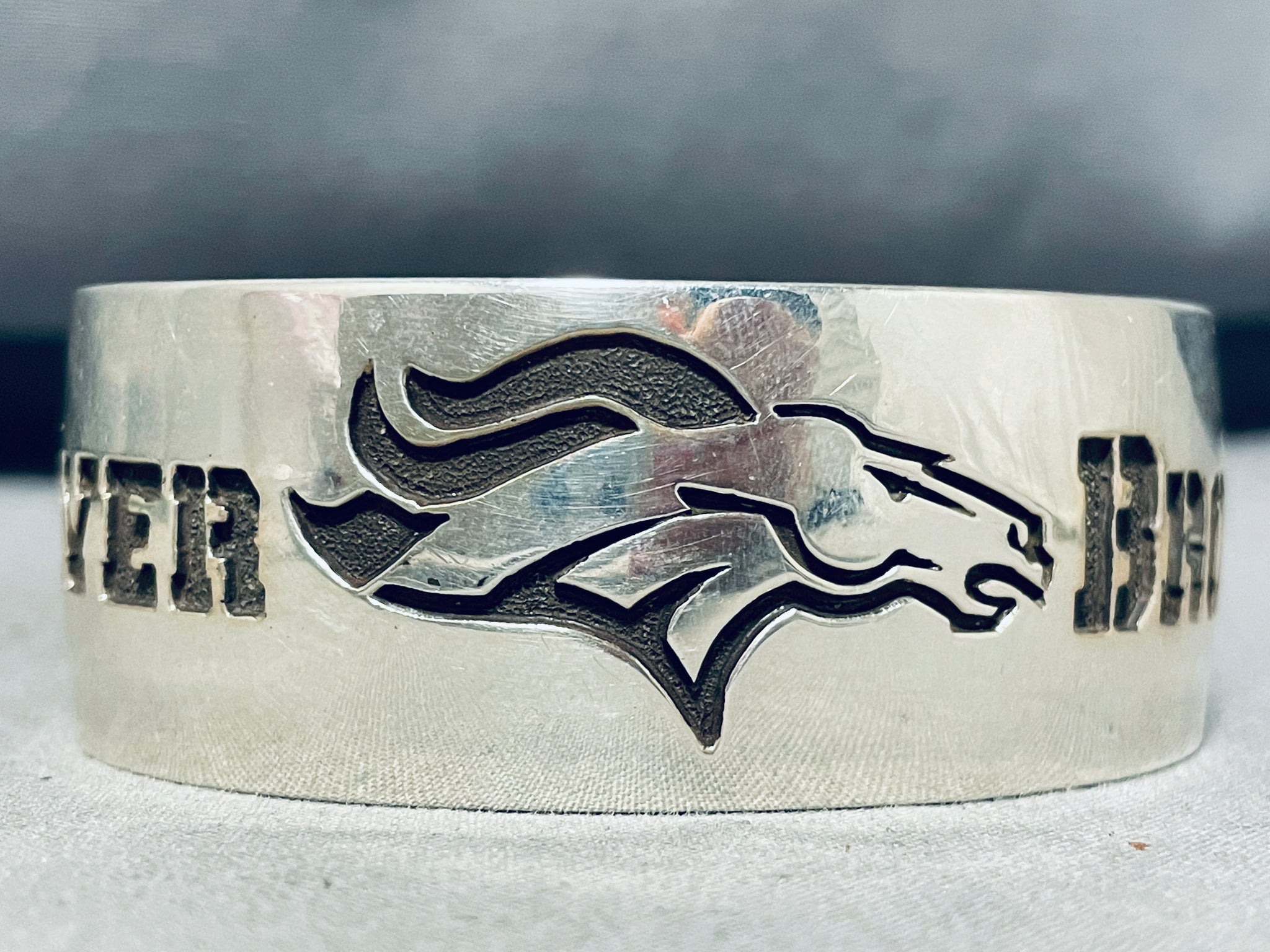 Freddy Douglas Native American Navajo Sterling Silver Denver Broncos Bracelet