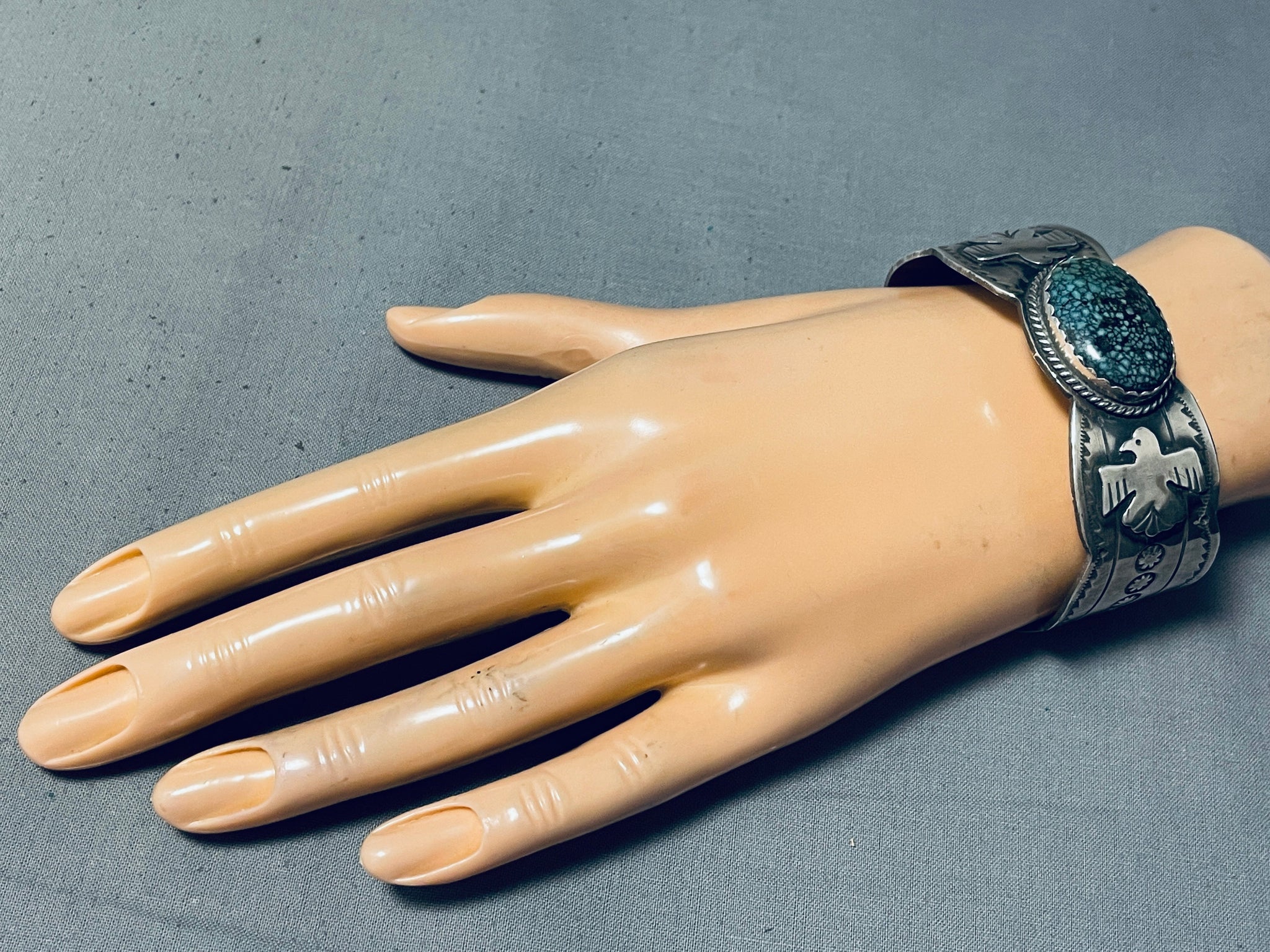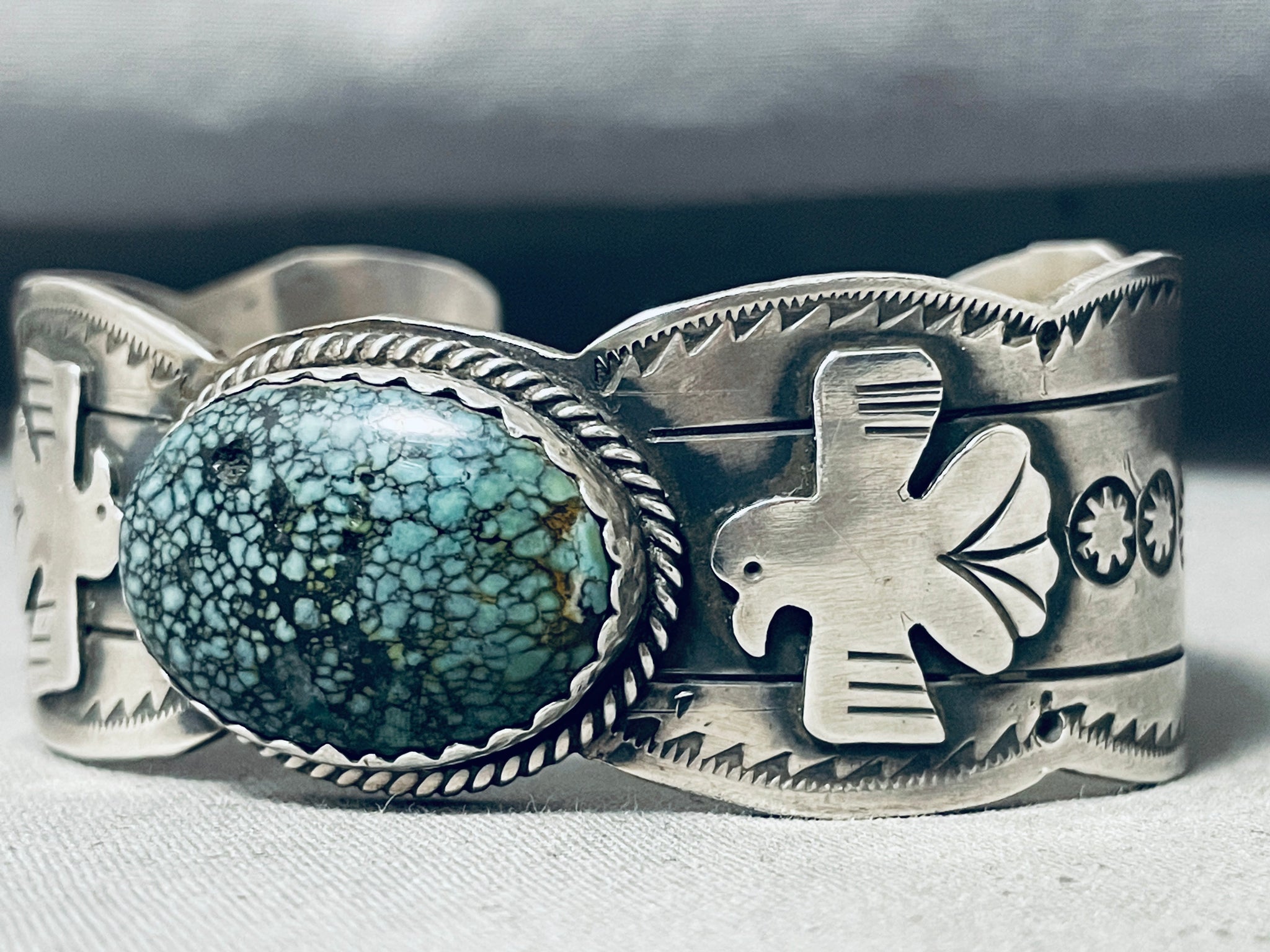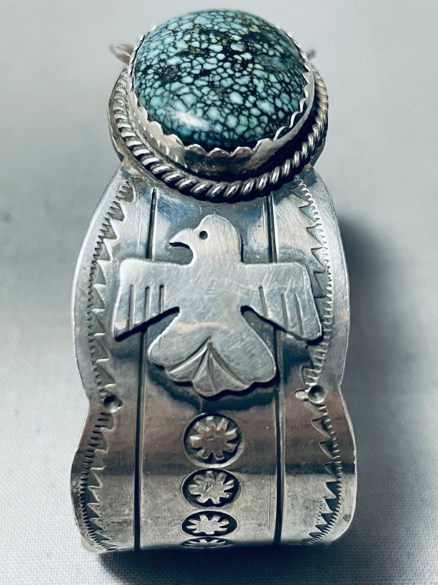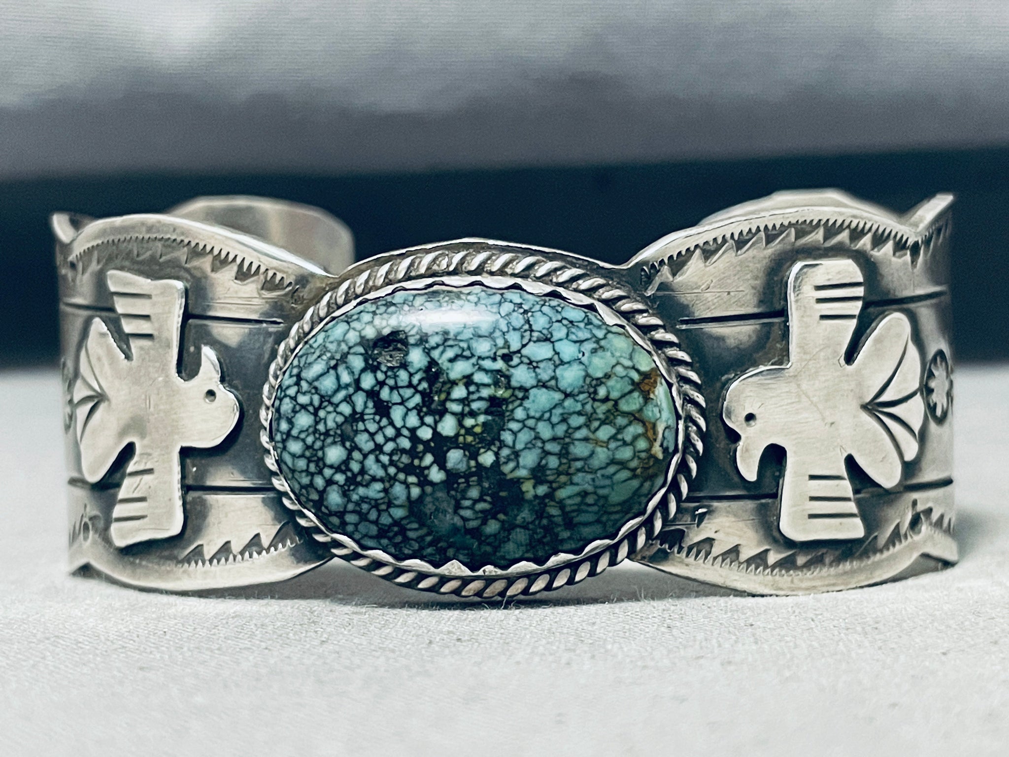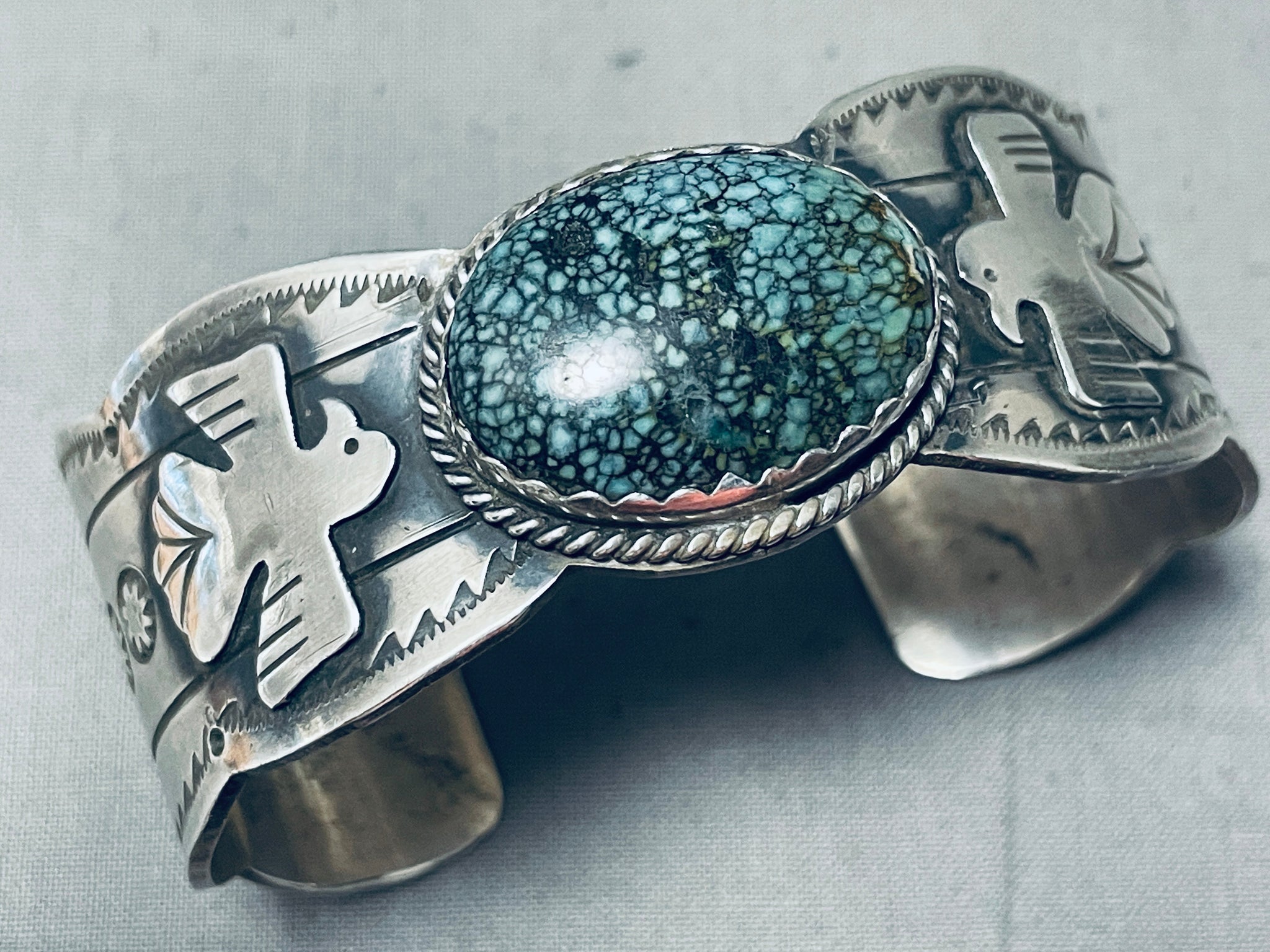 Freddy Peters Spiderweb Turquoise Sterling Silver Bracelet Signed