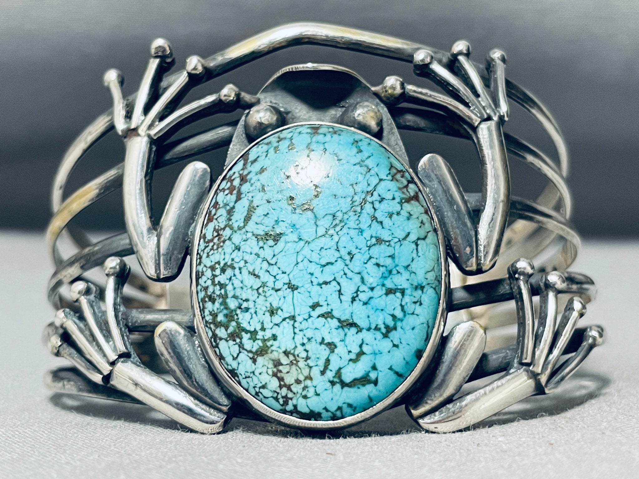Frog Handmade Sterling Silver Domed Turquoise Southwestern Bracelet