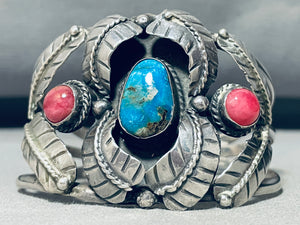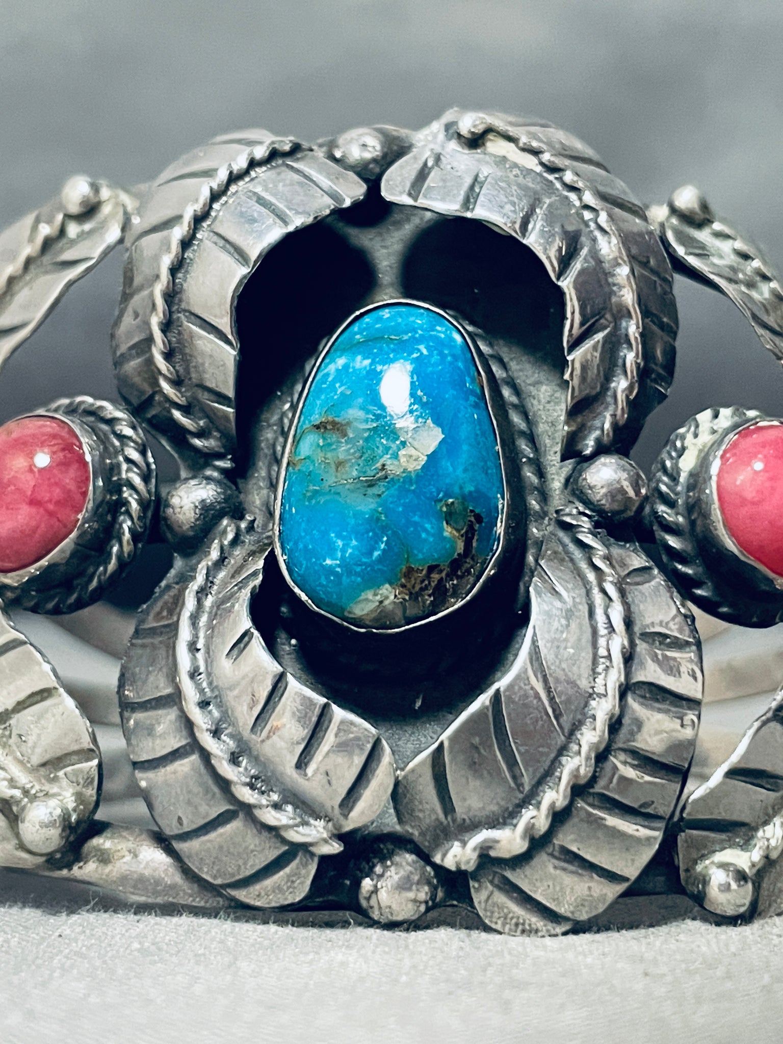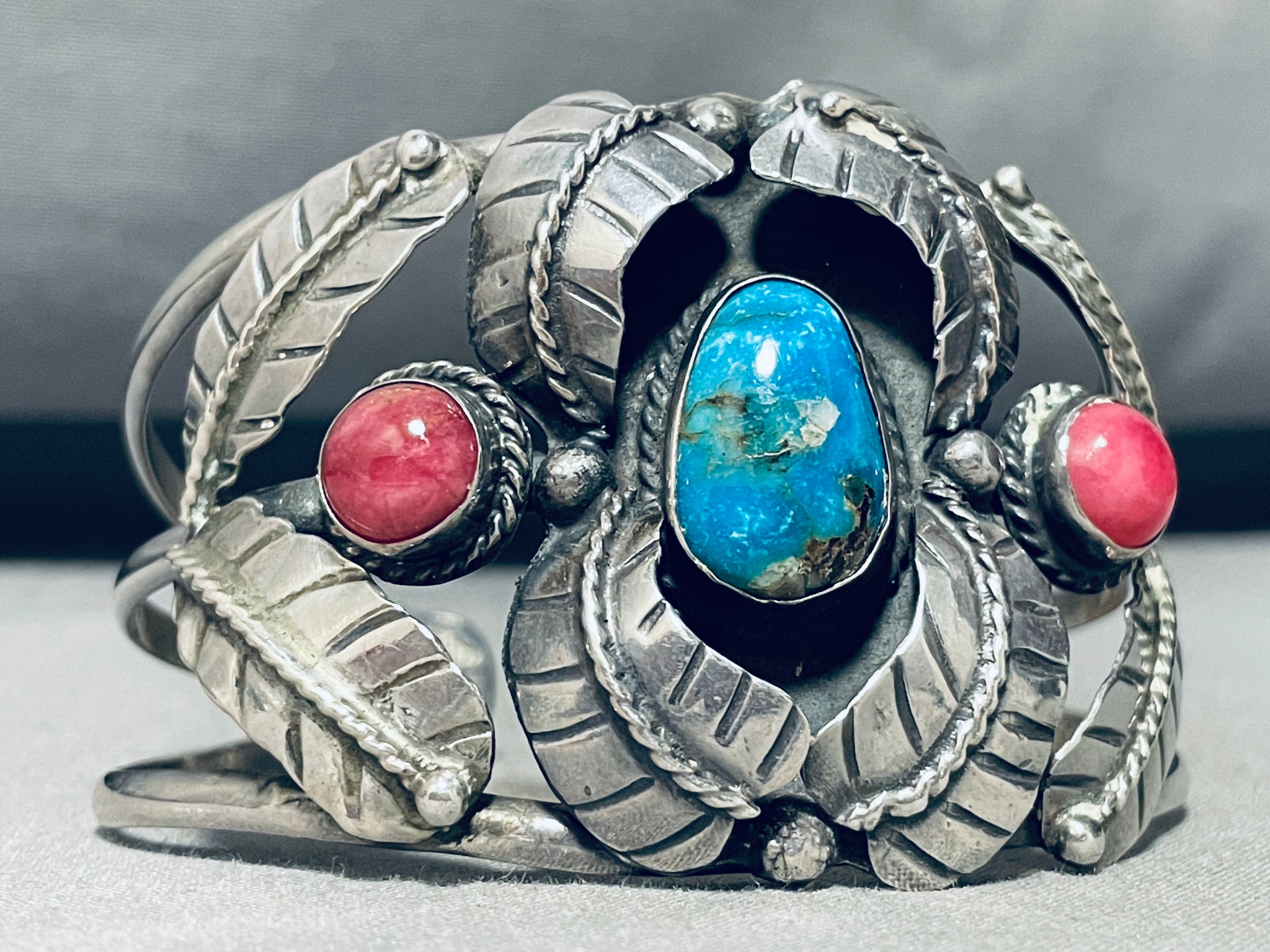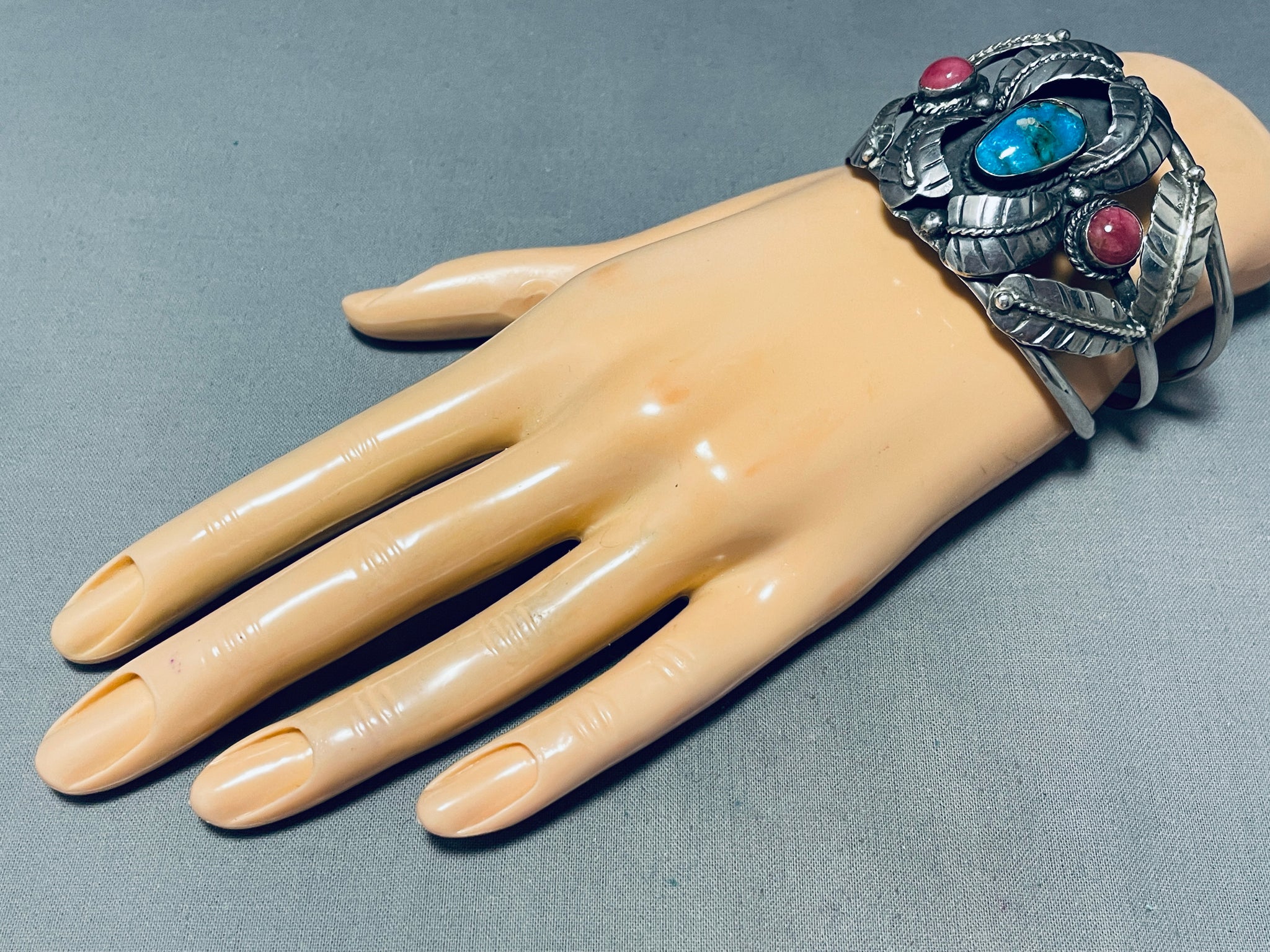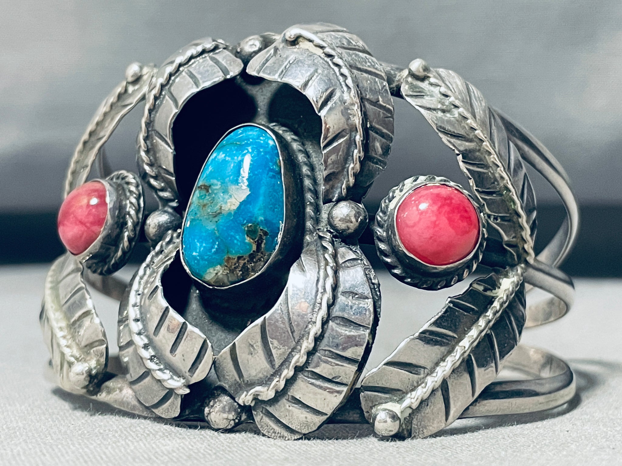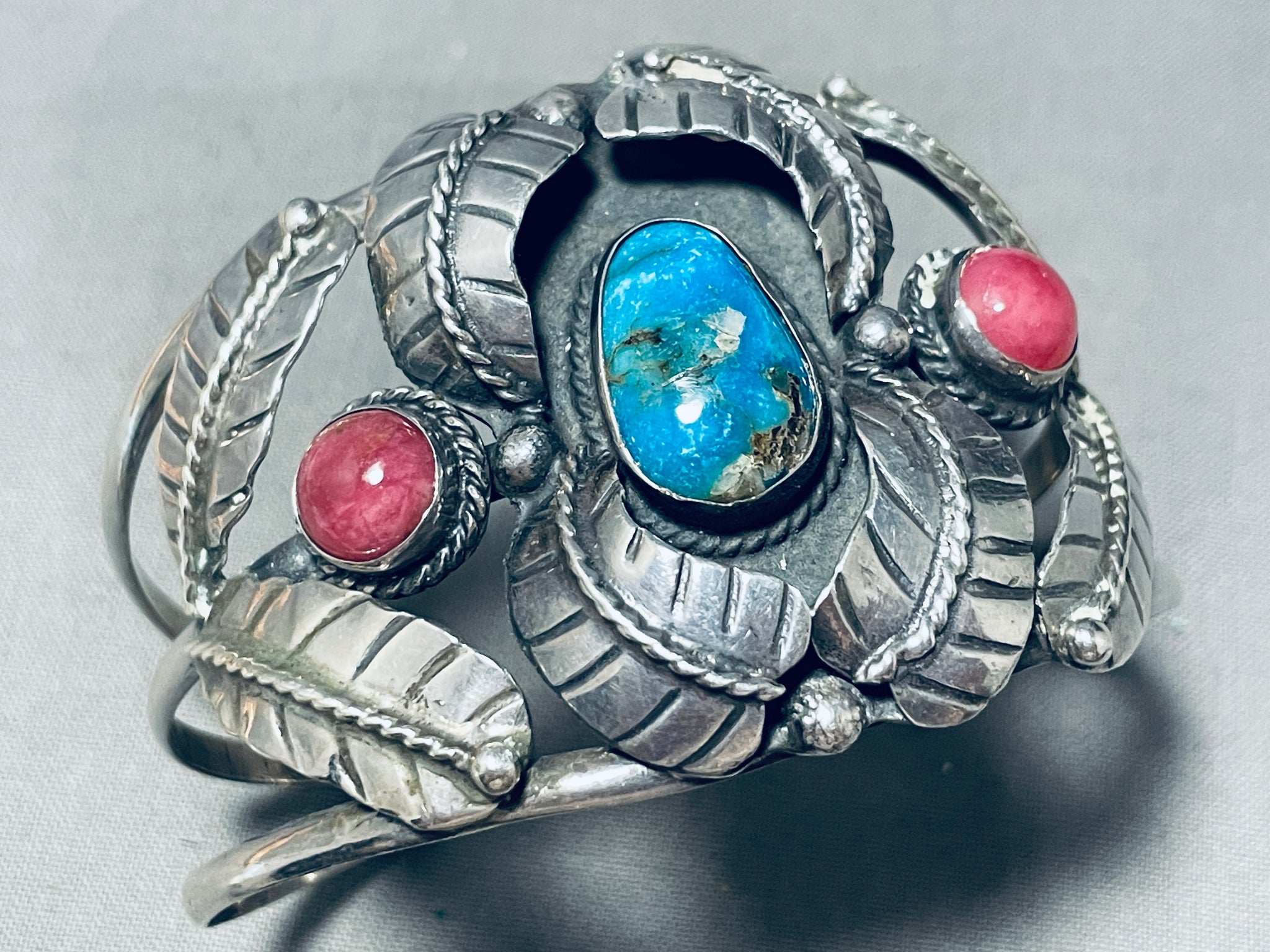 Garden Of Leaves Vintage Native American Navajo Turquoise Sterling Silver Bracelet Old