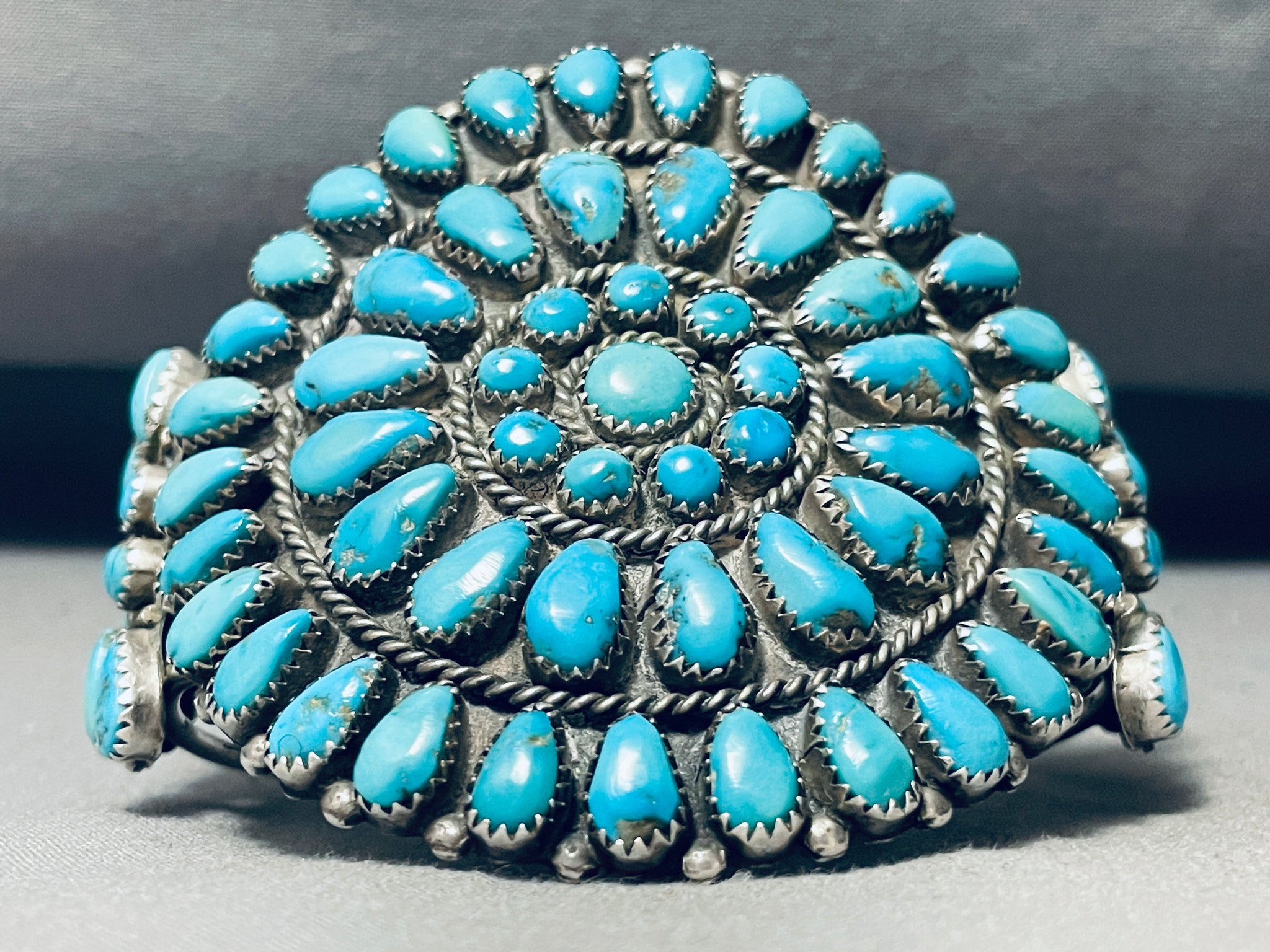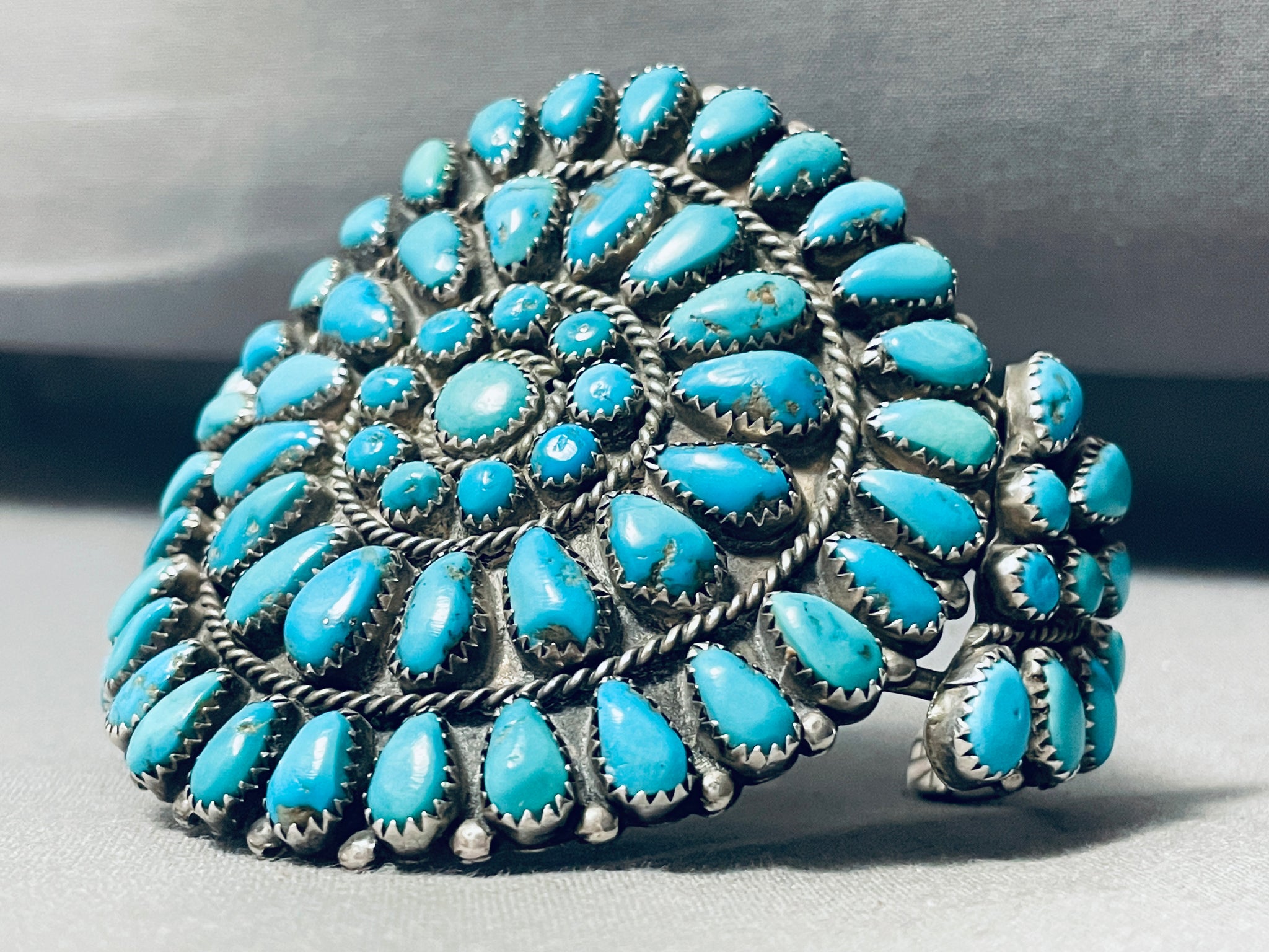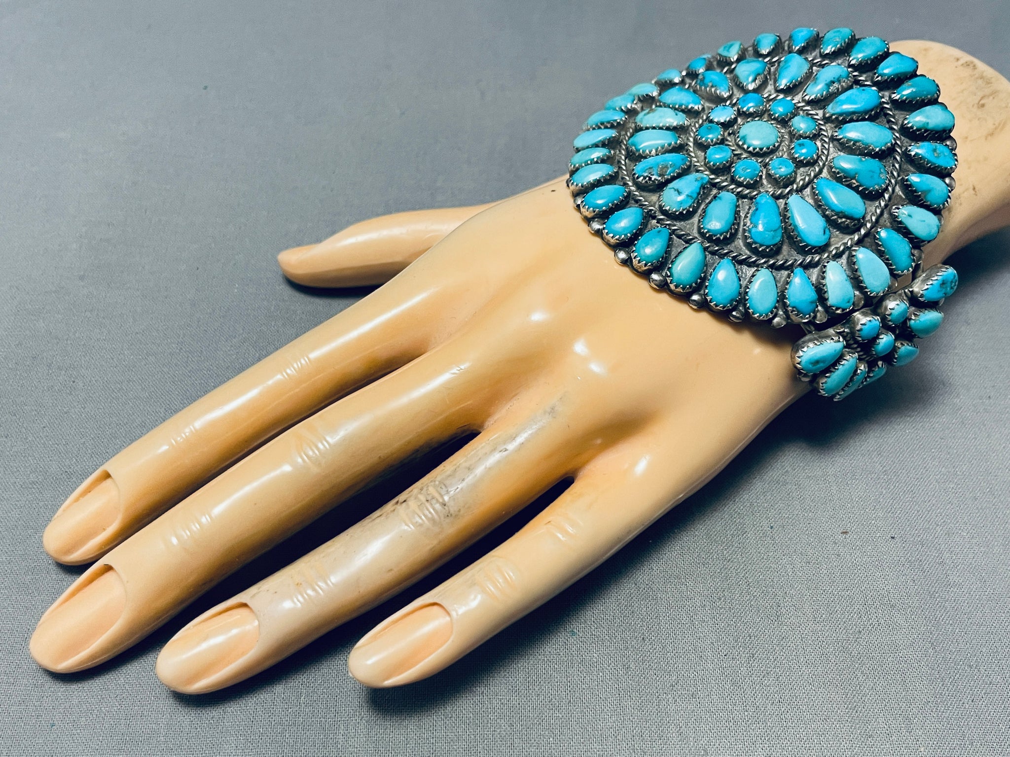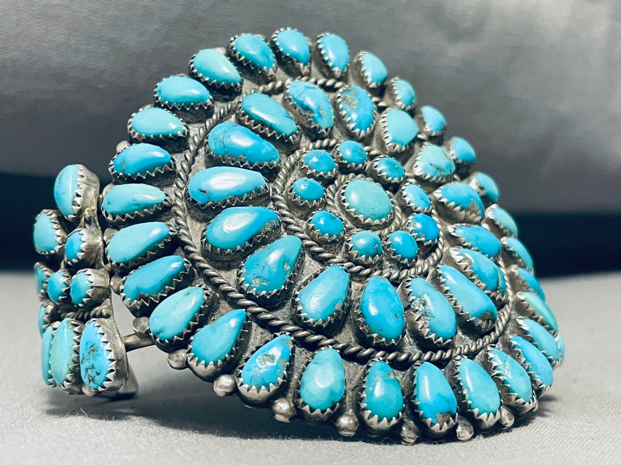 Gasp! Vintage Native American Navajo Turquoise Signed Sterling Silver Cluster Bracelet