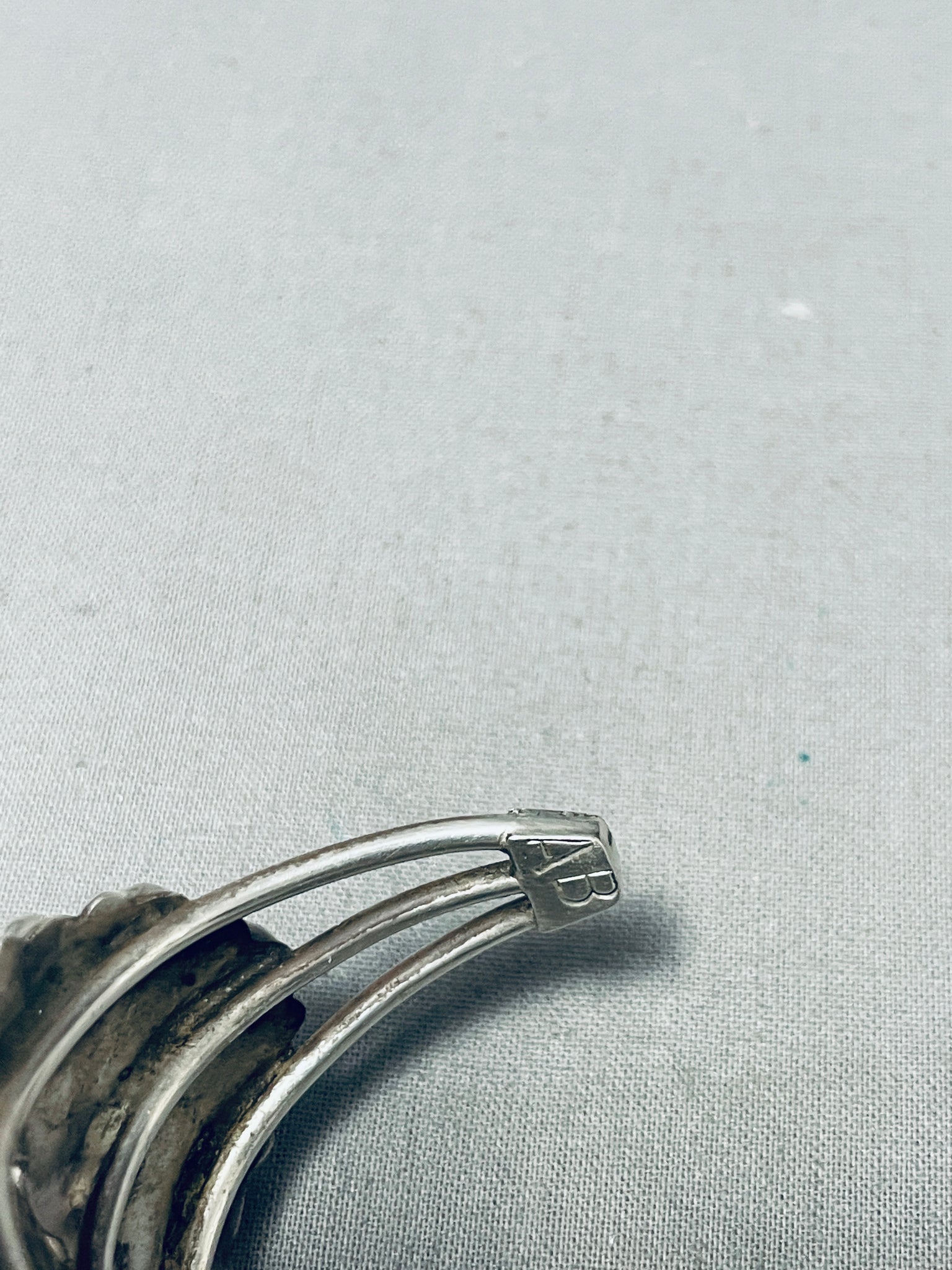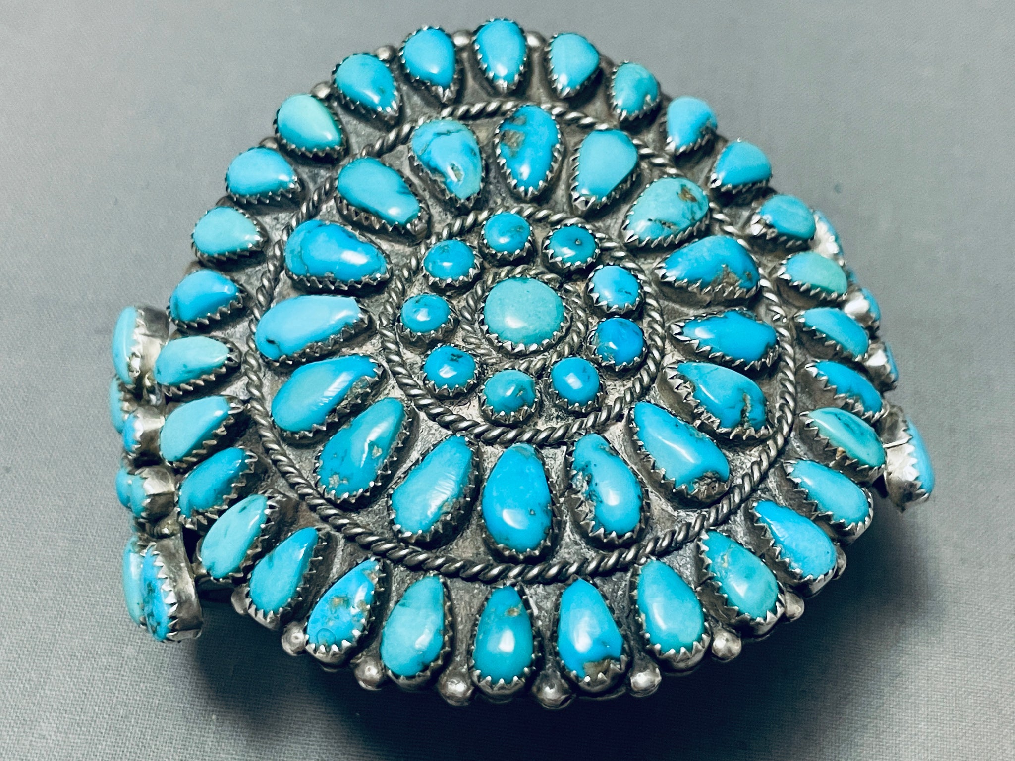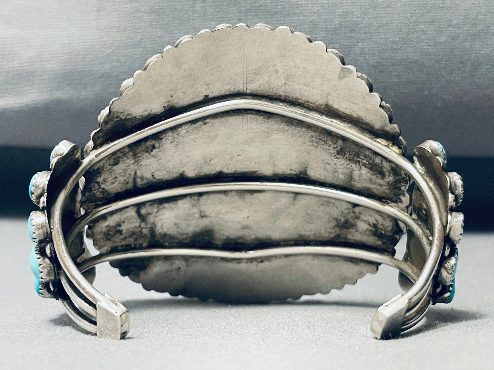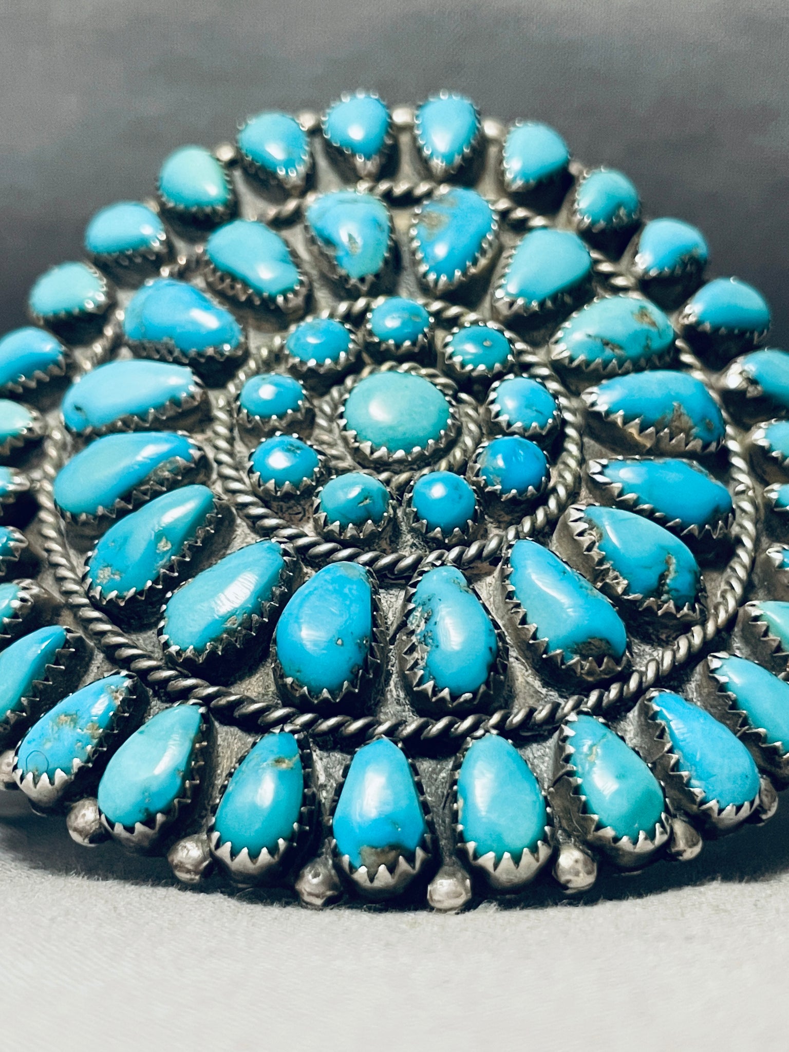 Gasp! Vintage Native American Navajo Turquoise Signed Sterling Silver Cluster Bracelet