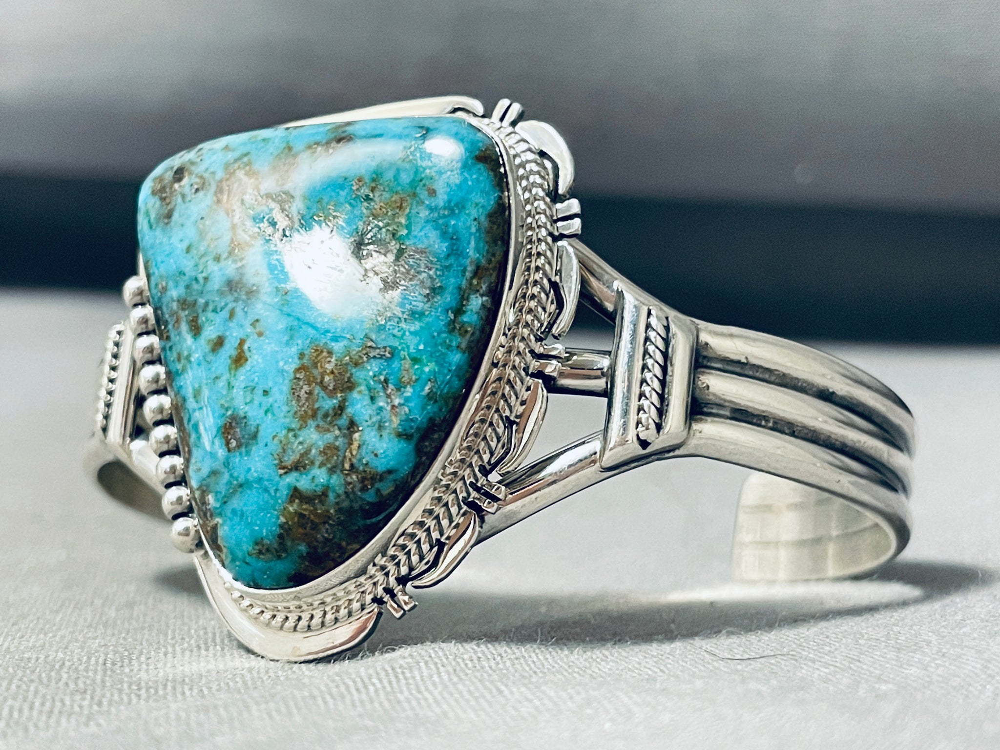 Glamorous Native American Navajo Old Kingman Turquoise Sterling Silver Bracelet
