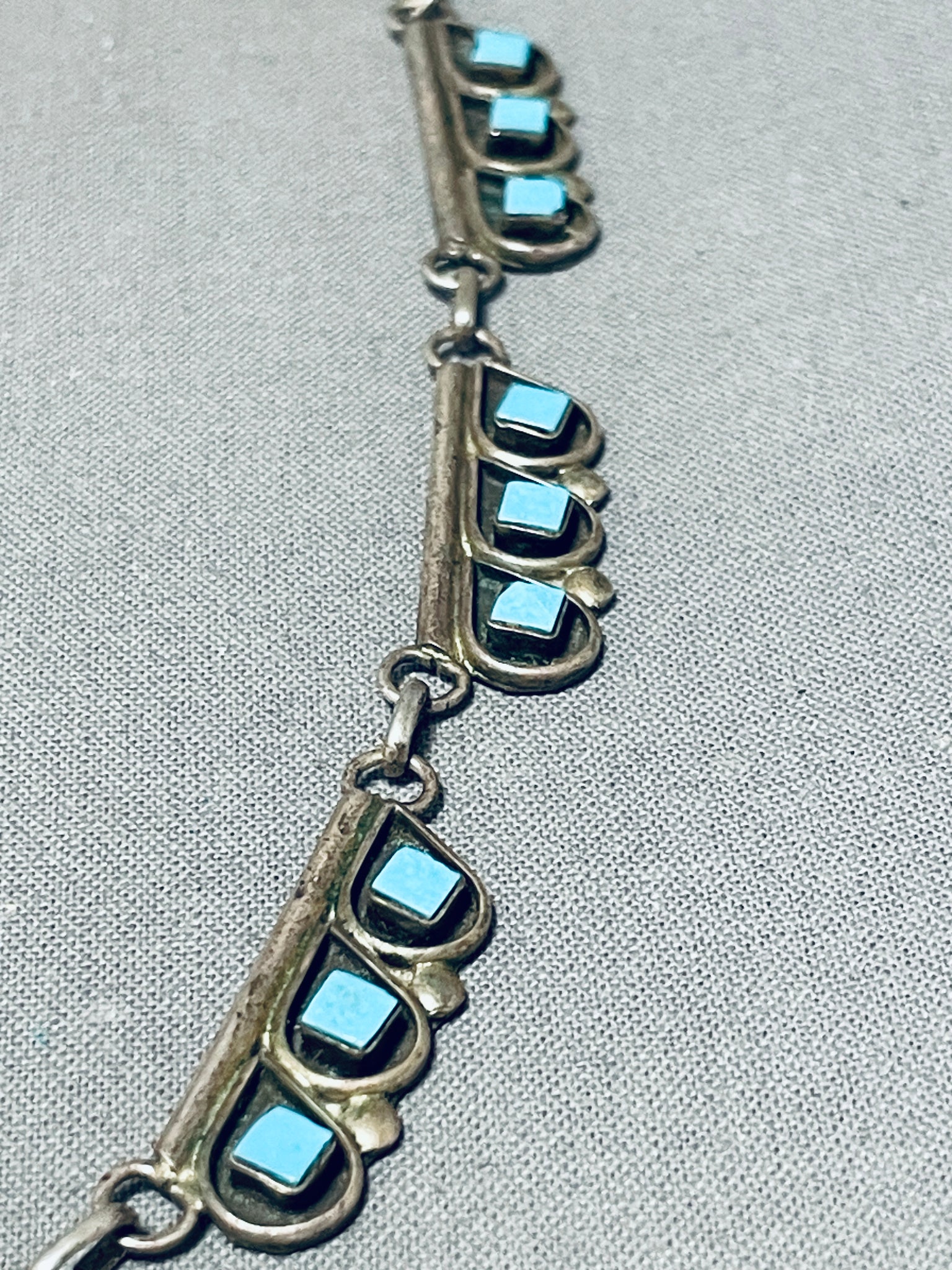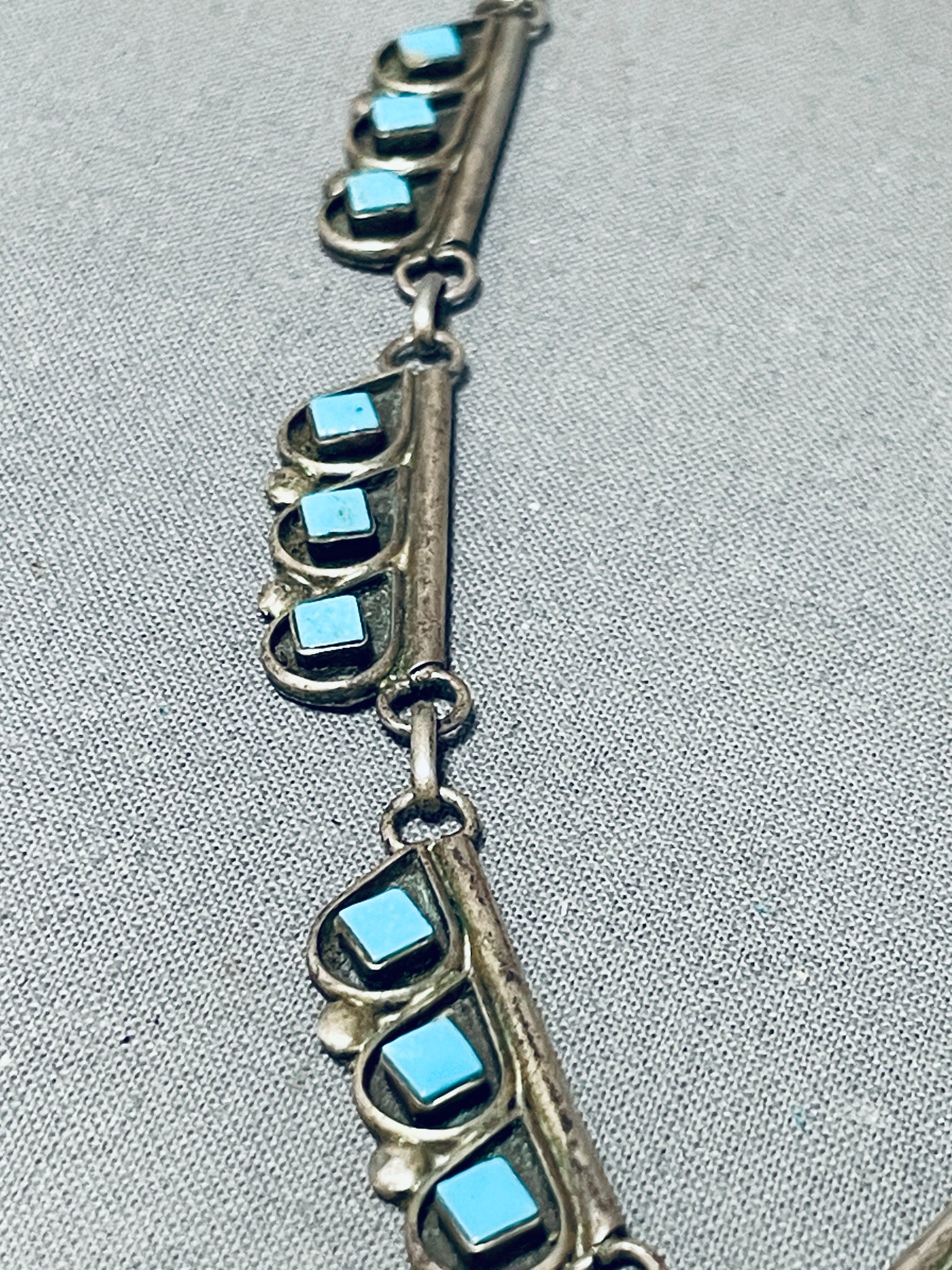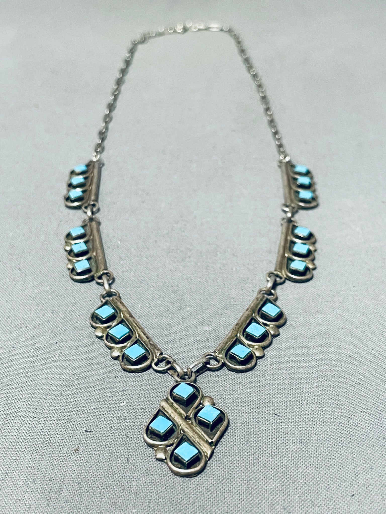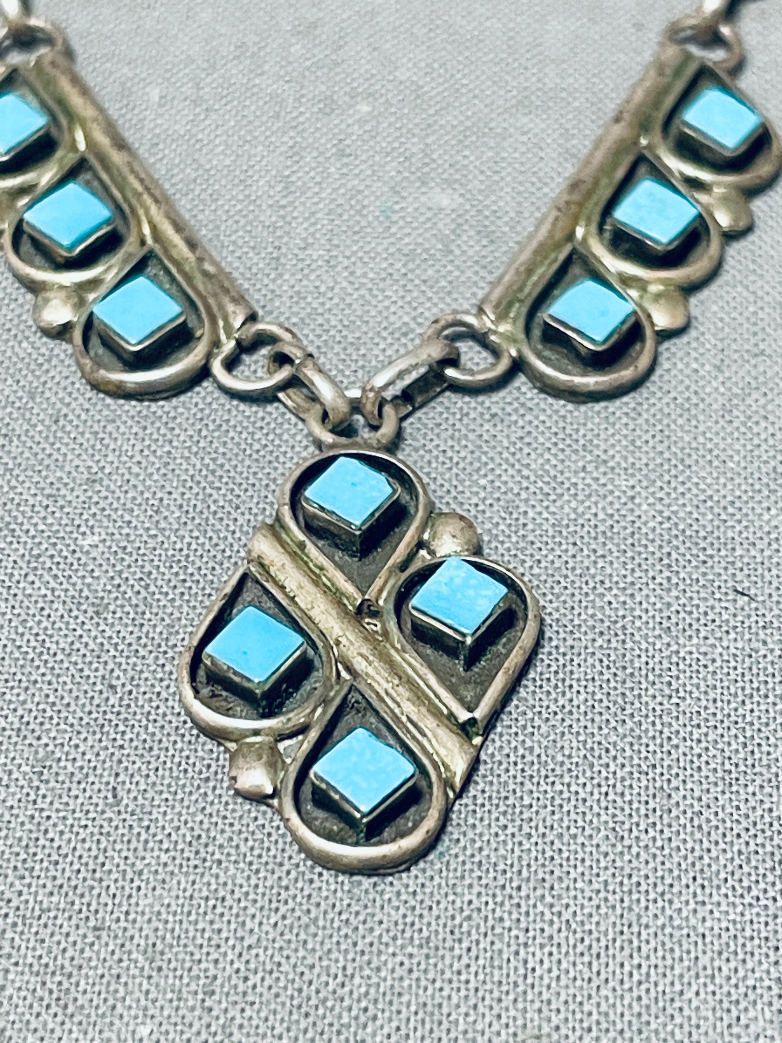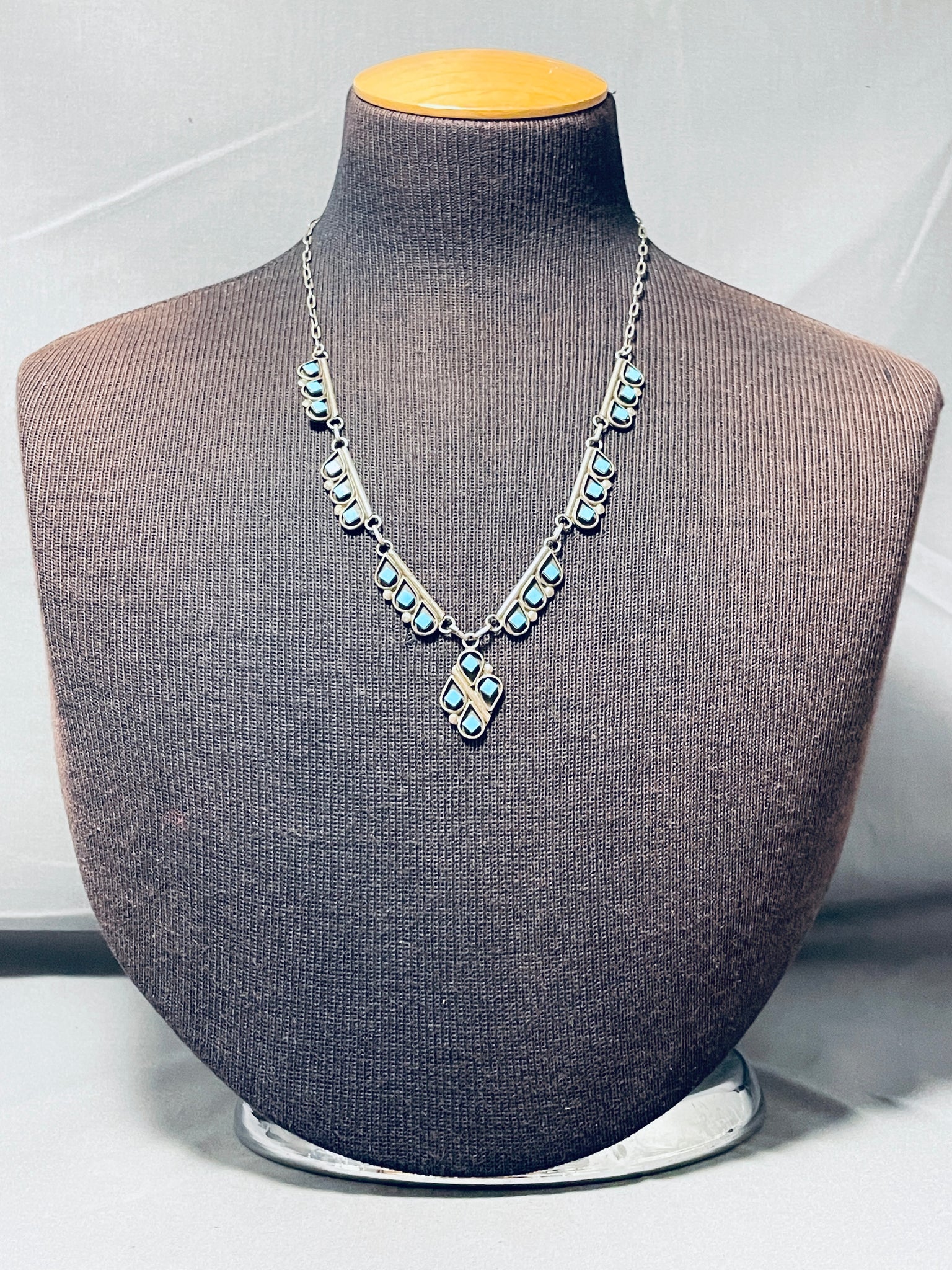 Glamorous Vintage Native American Navajo Sleeping Beauty Turquoise Sterling Silver Necklace