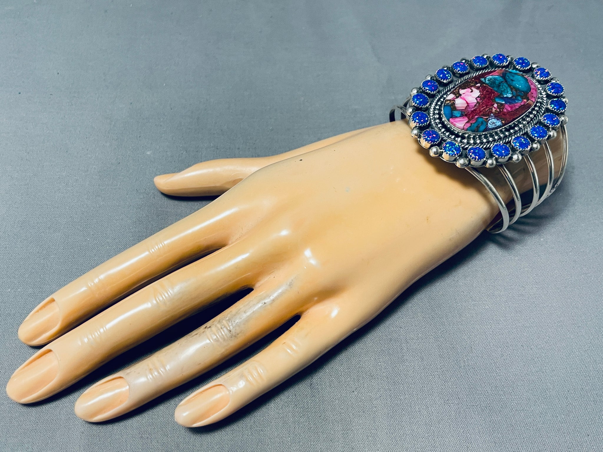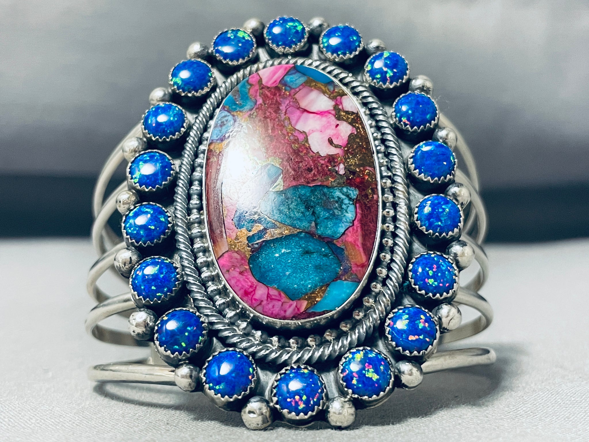 Glorious Native American Navajo Signed Multi Color Purple Opal Sterling Silver Bracelet