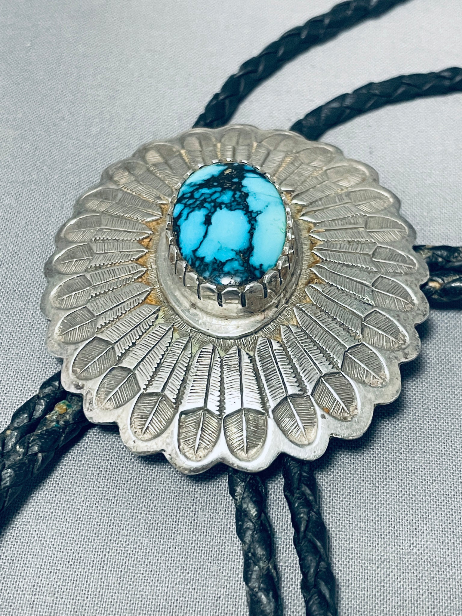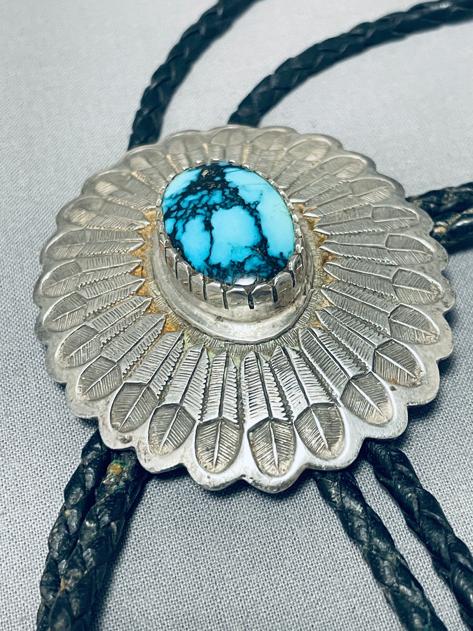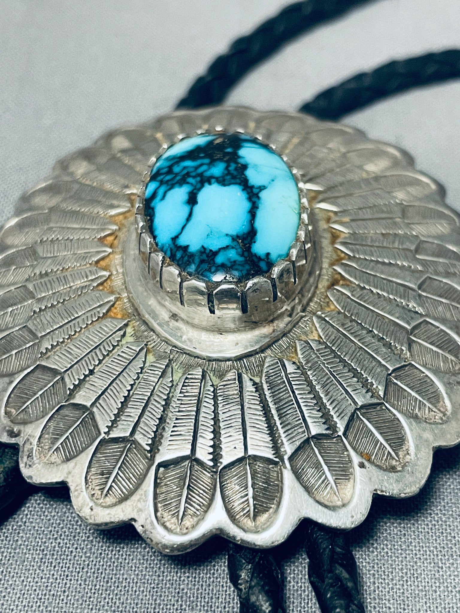 Godber Turquoise Vintage Native American Navajo Sterling Silver Bolo Tie
