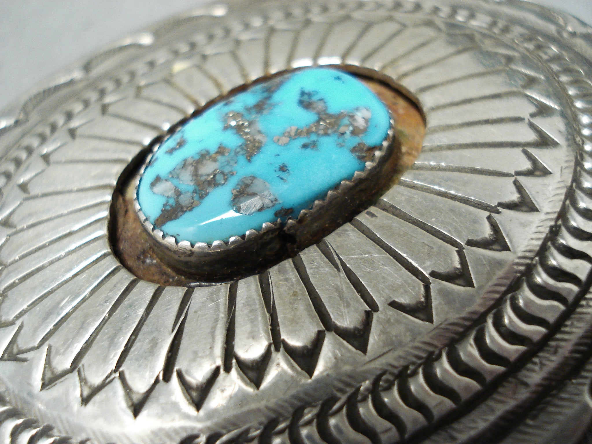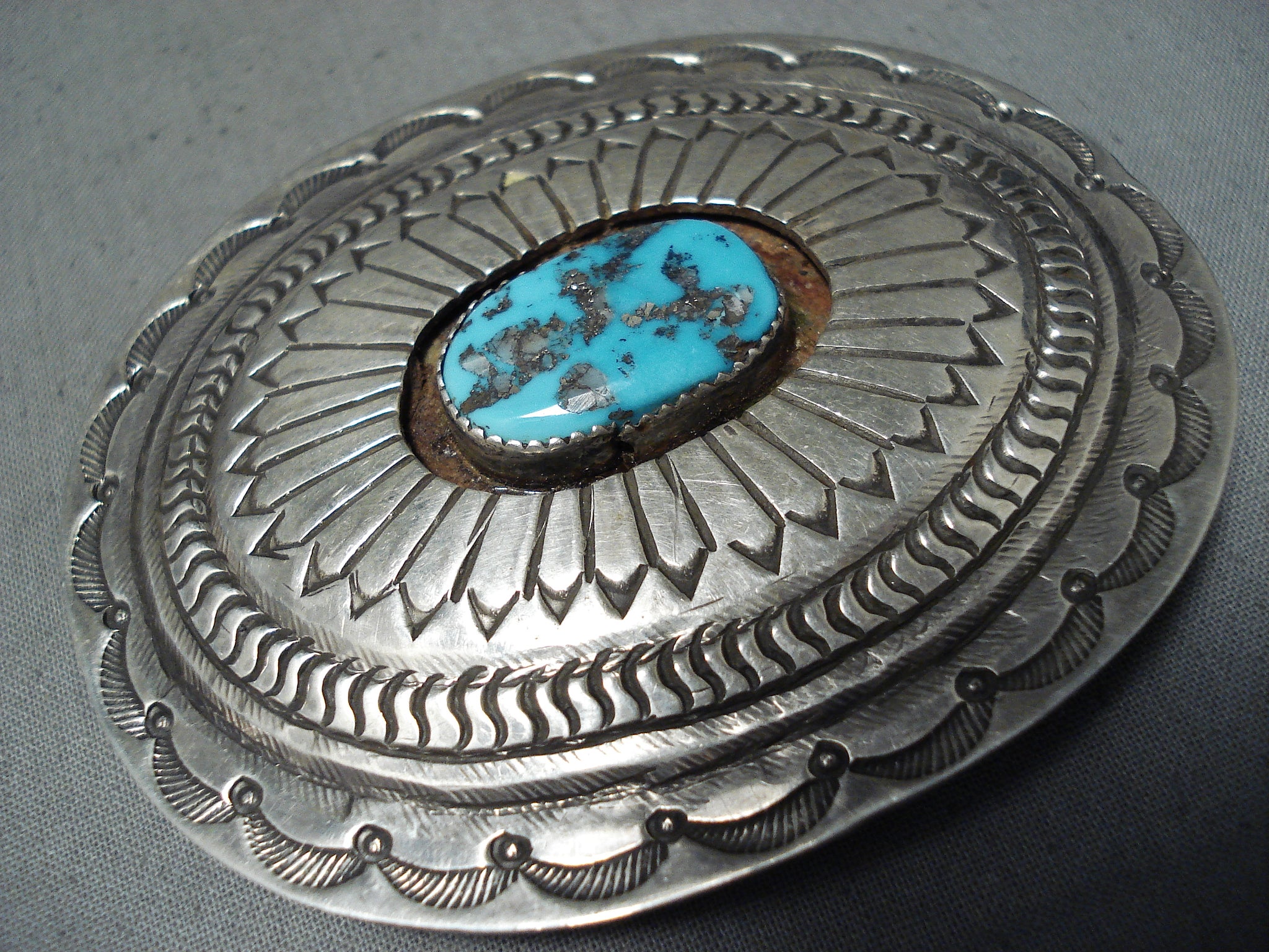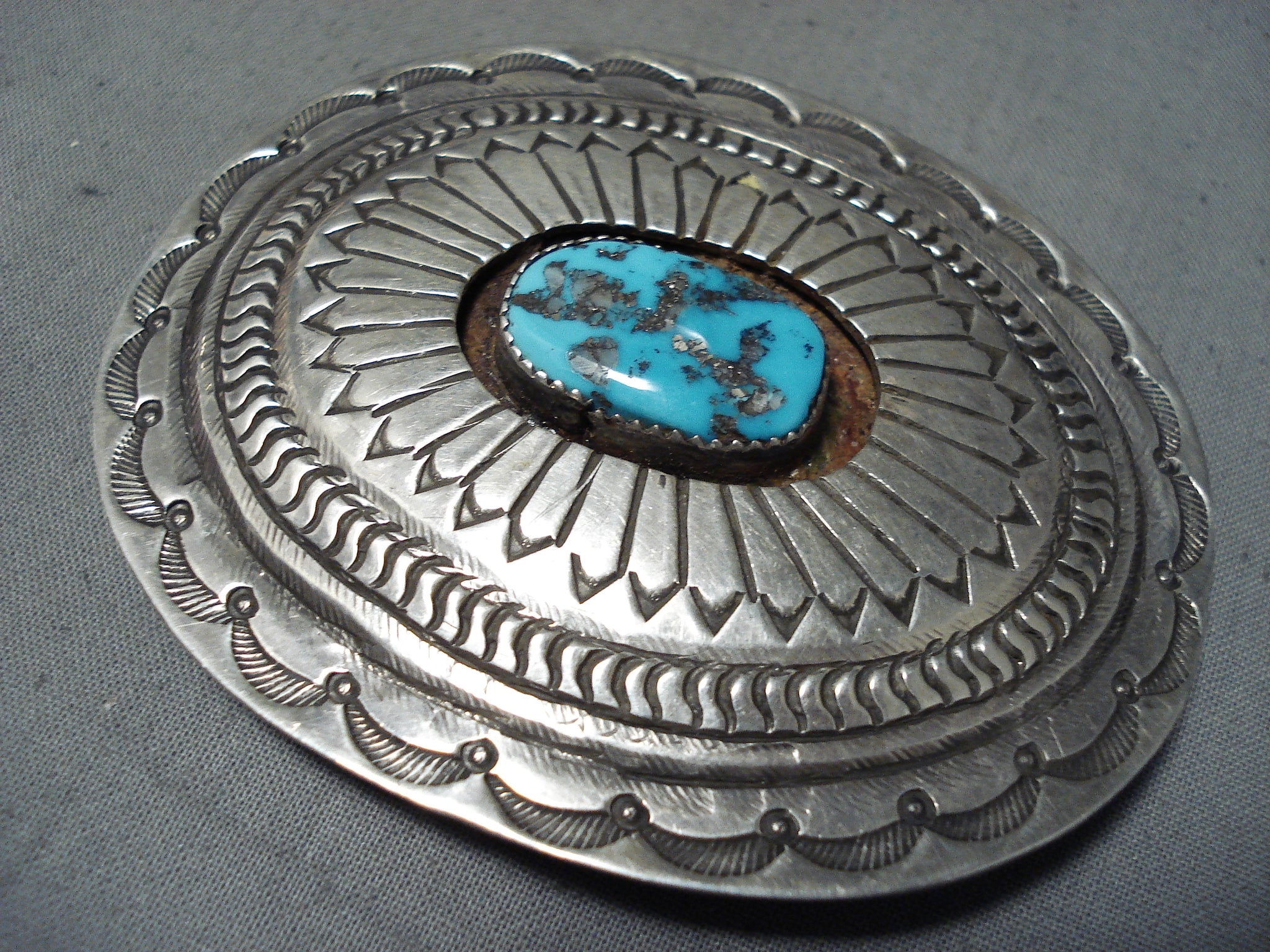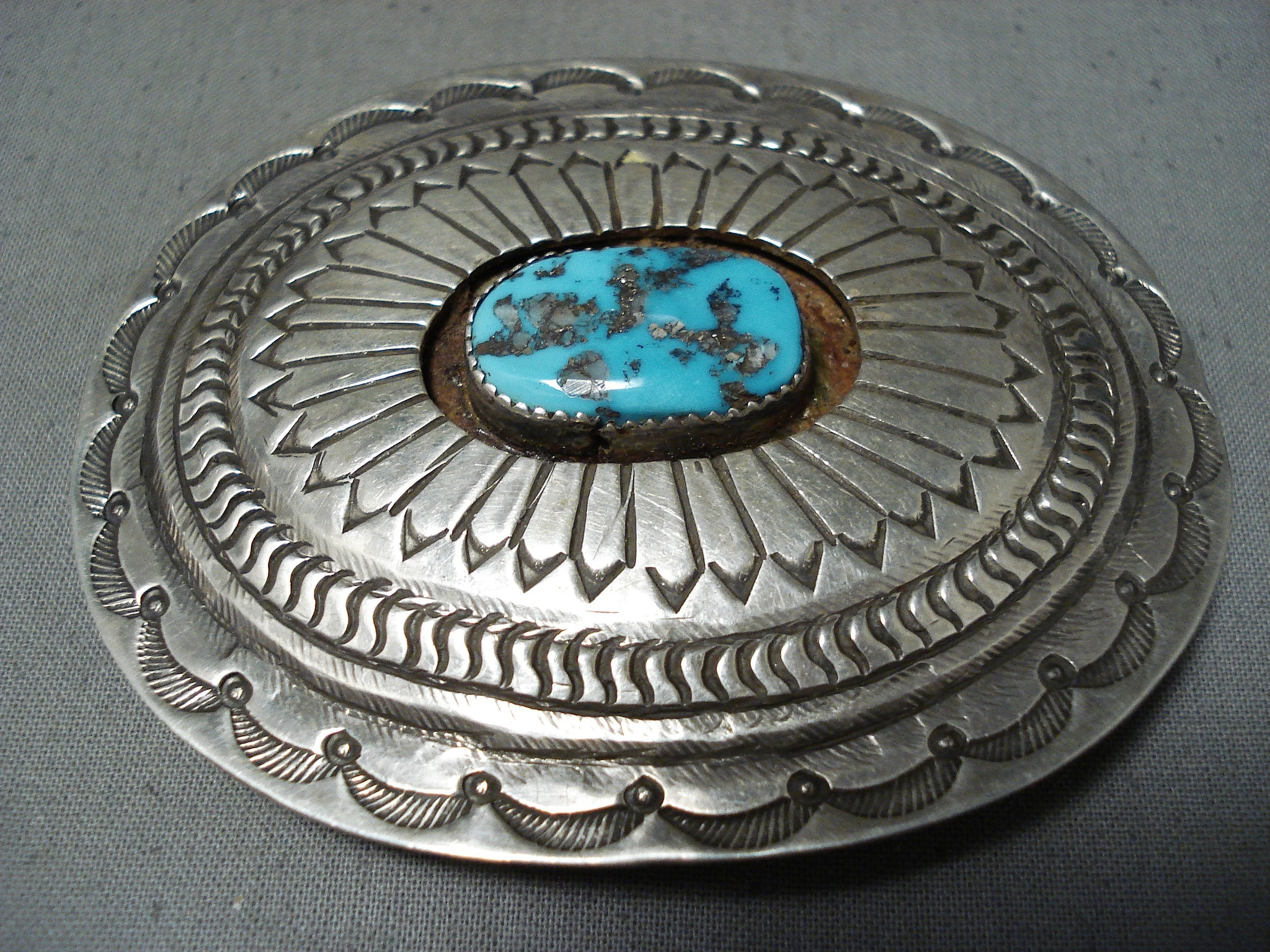Goerge Lee Vintage Native American Navajo Morenci Turquoise Sterling Silver Buckle