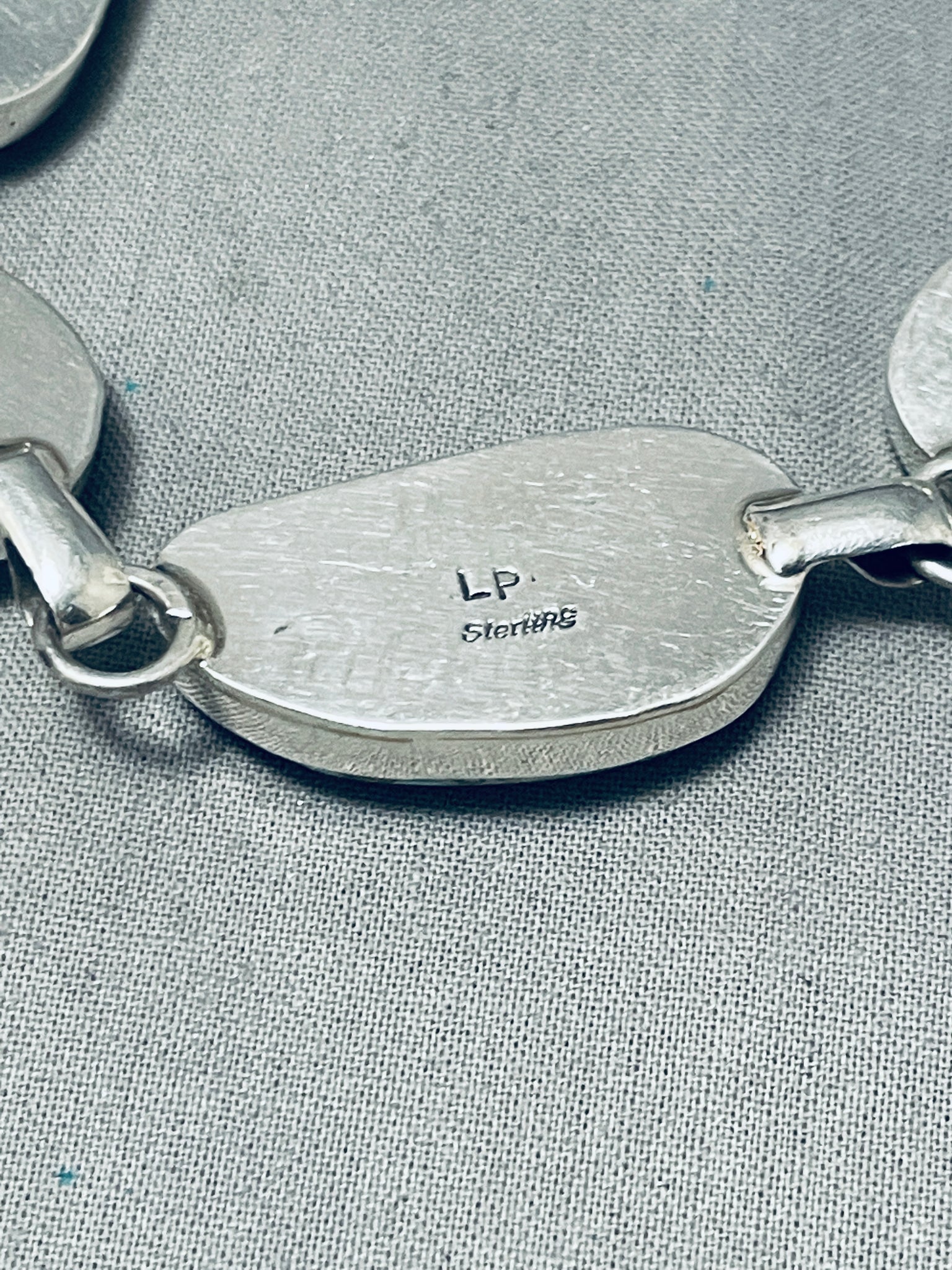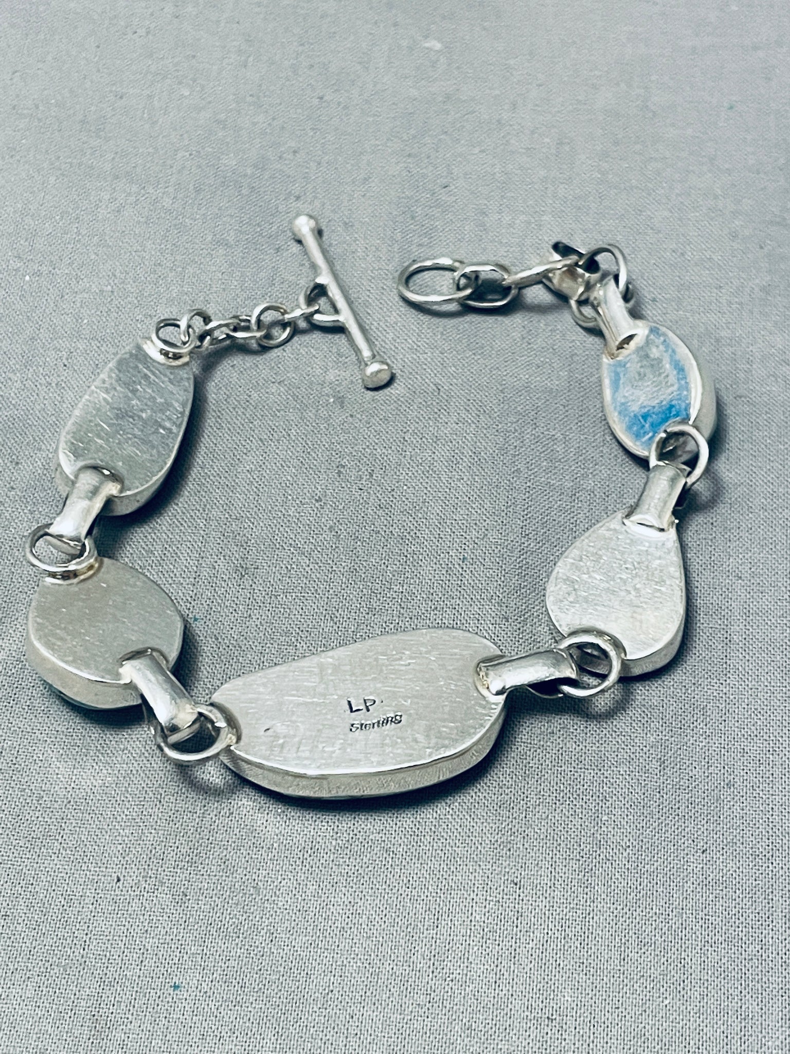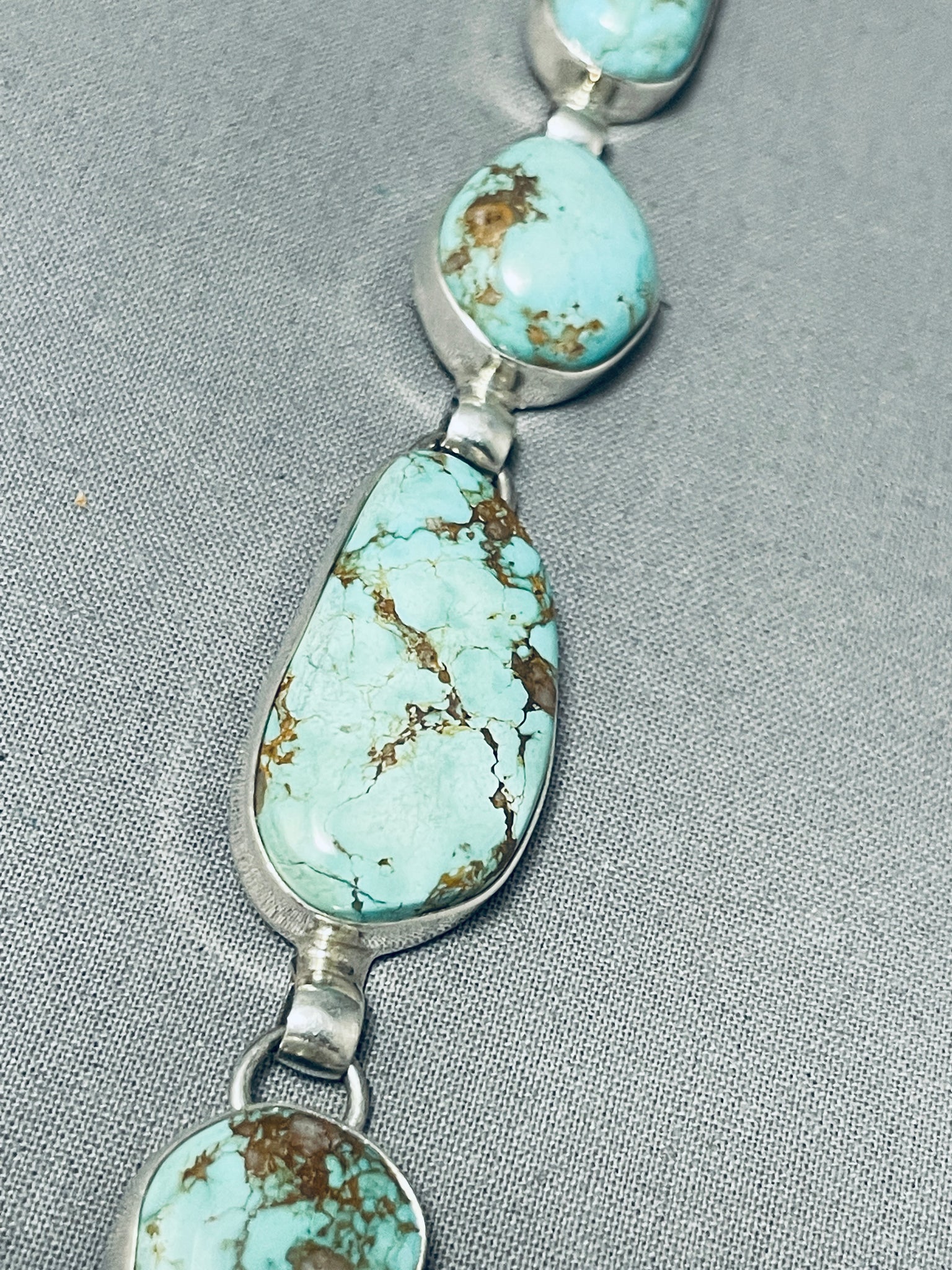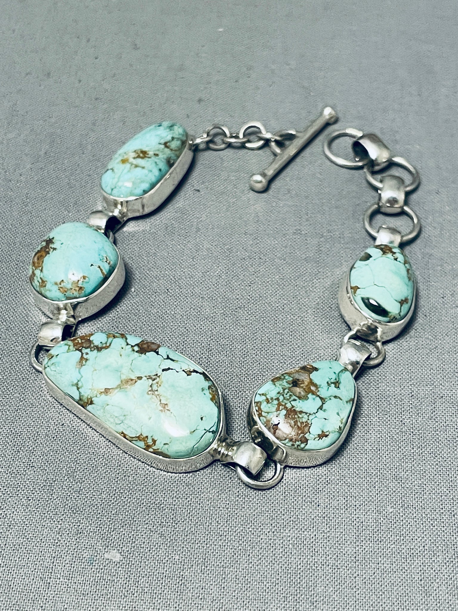 Gorgeous Native American Navajo Green Turquoise Sterling Silver Link Bracelet