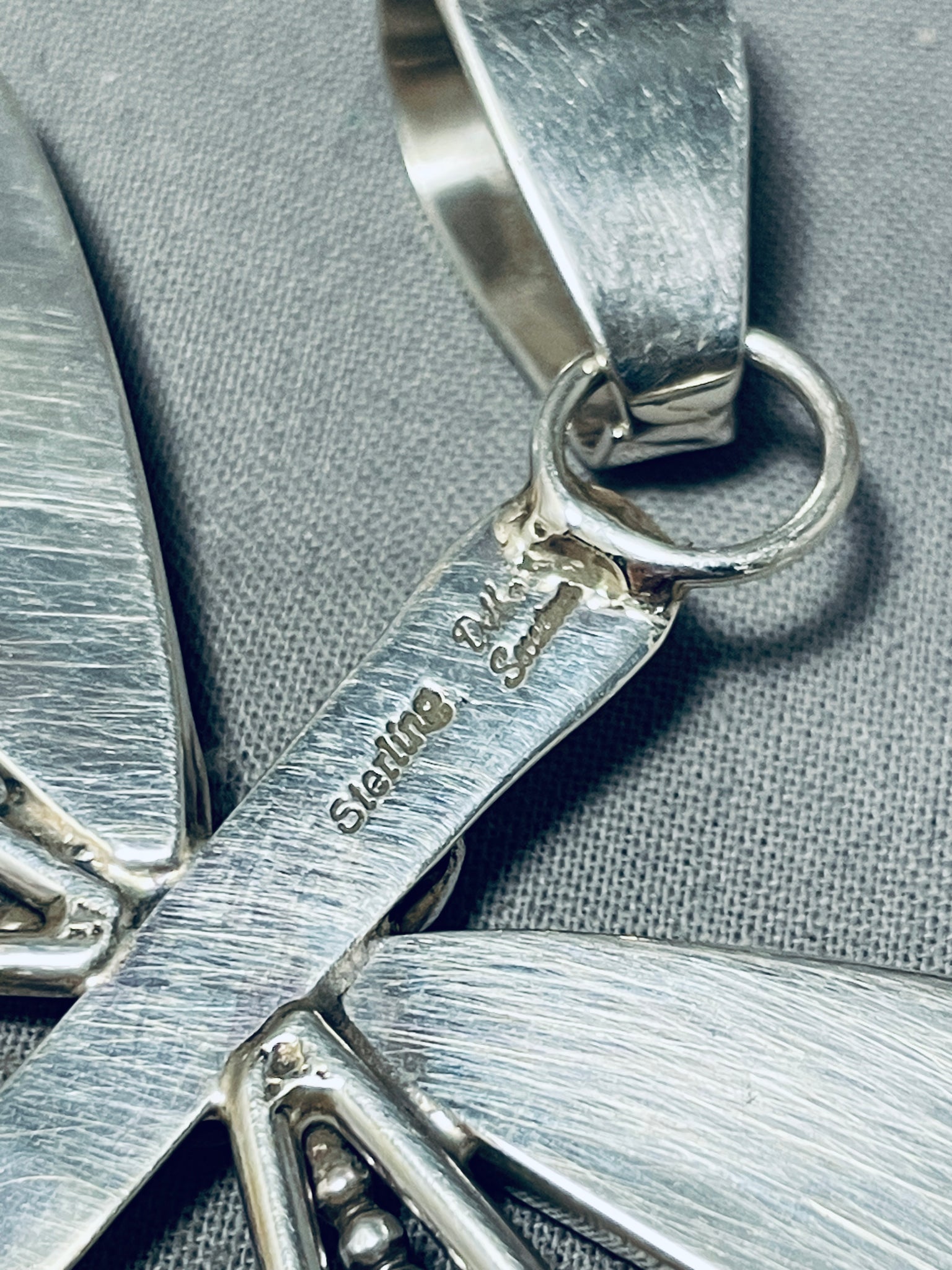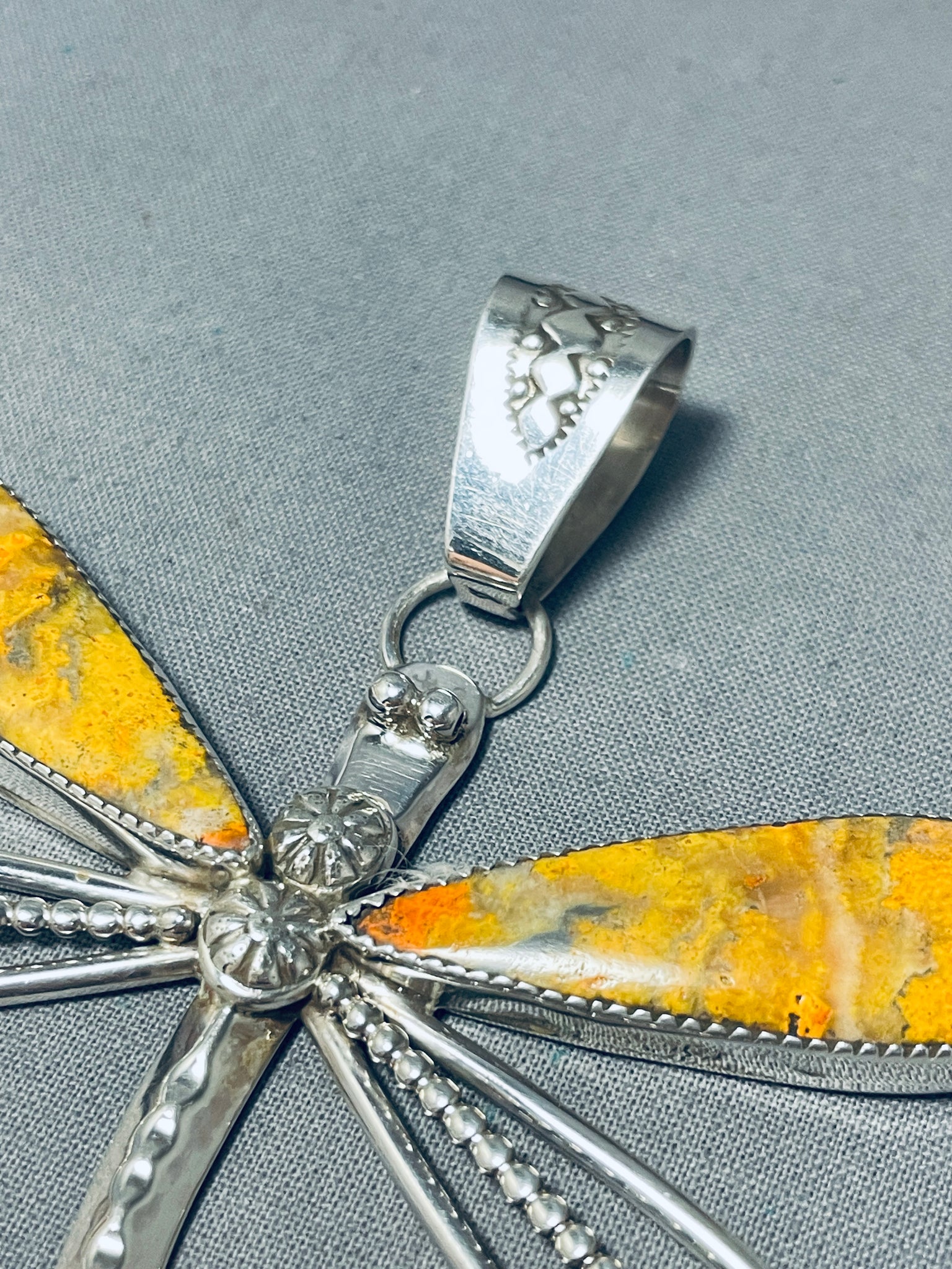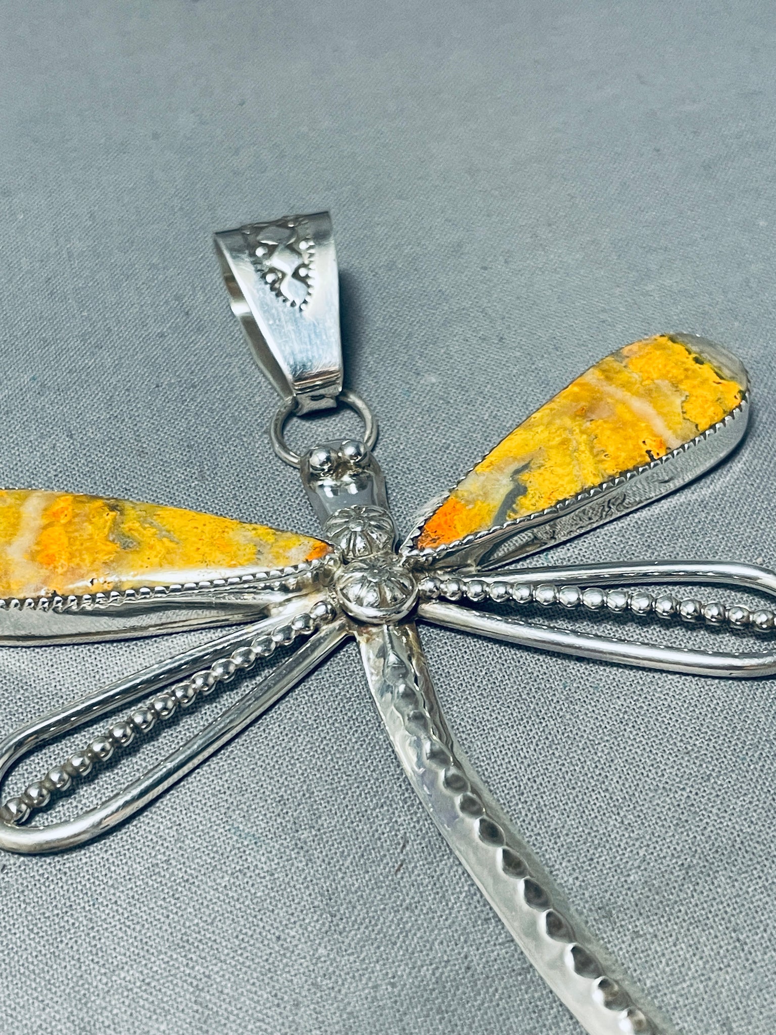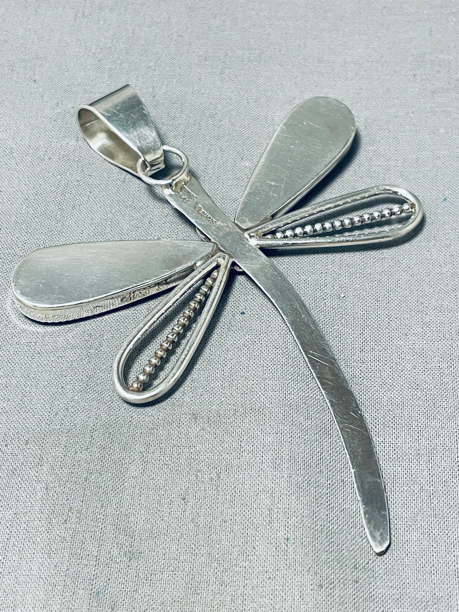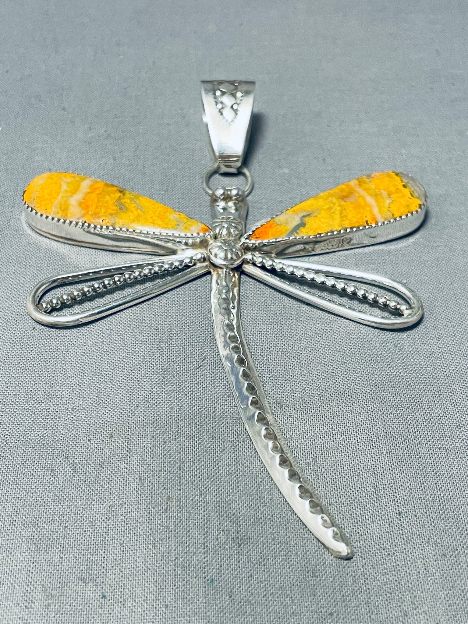 Gorgeous Native American Navajo Signed Honeybee Sterling Silver Dragonfly Pendant