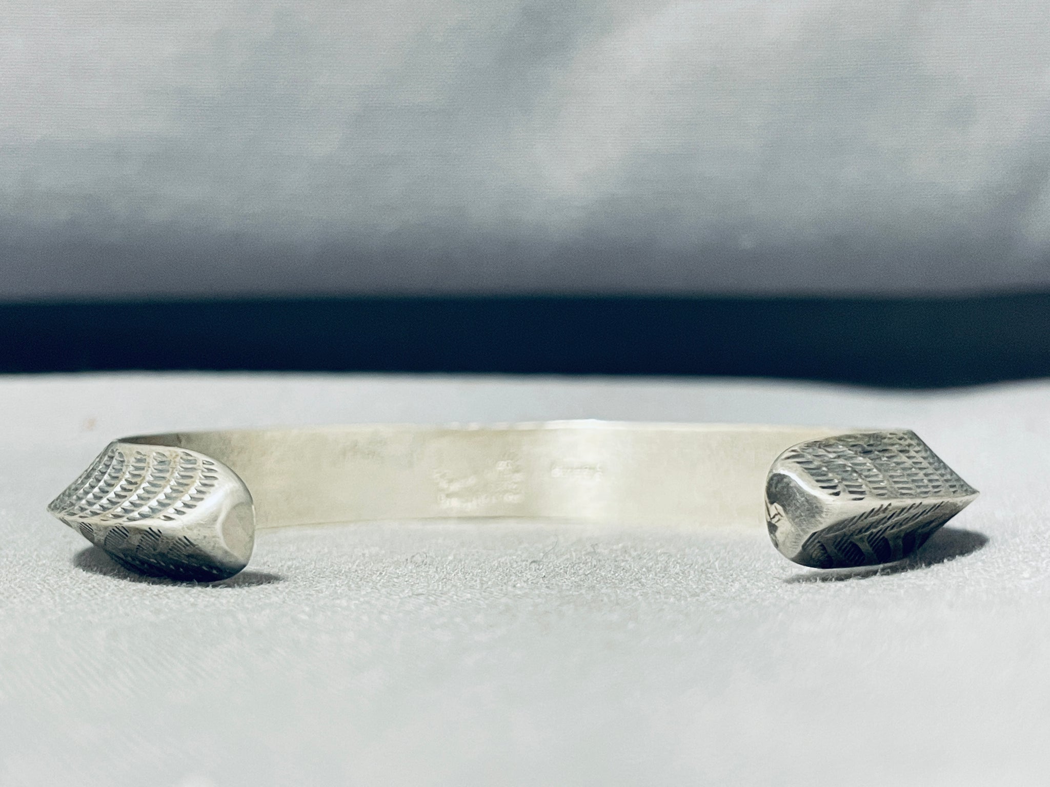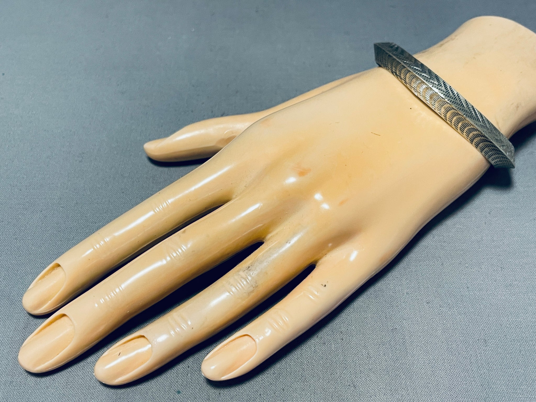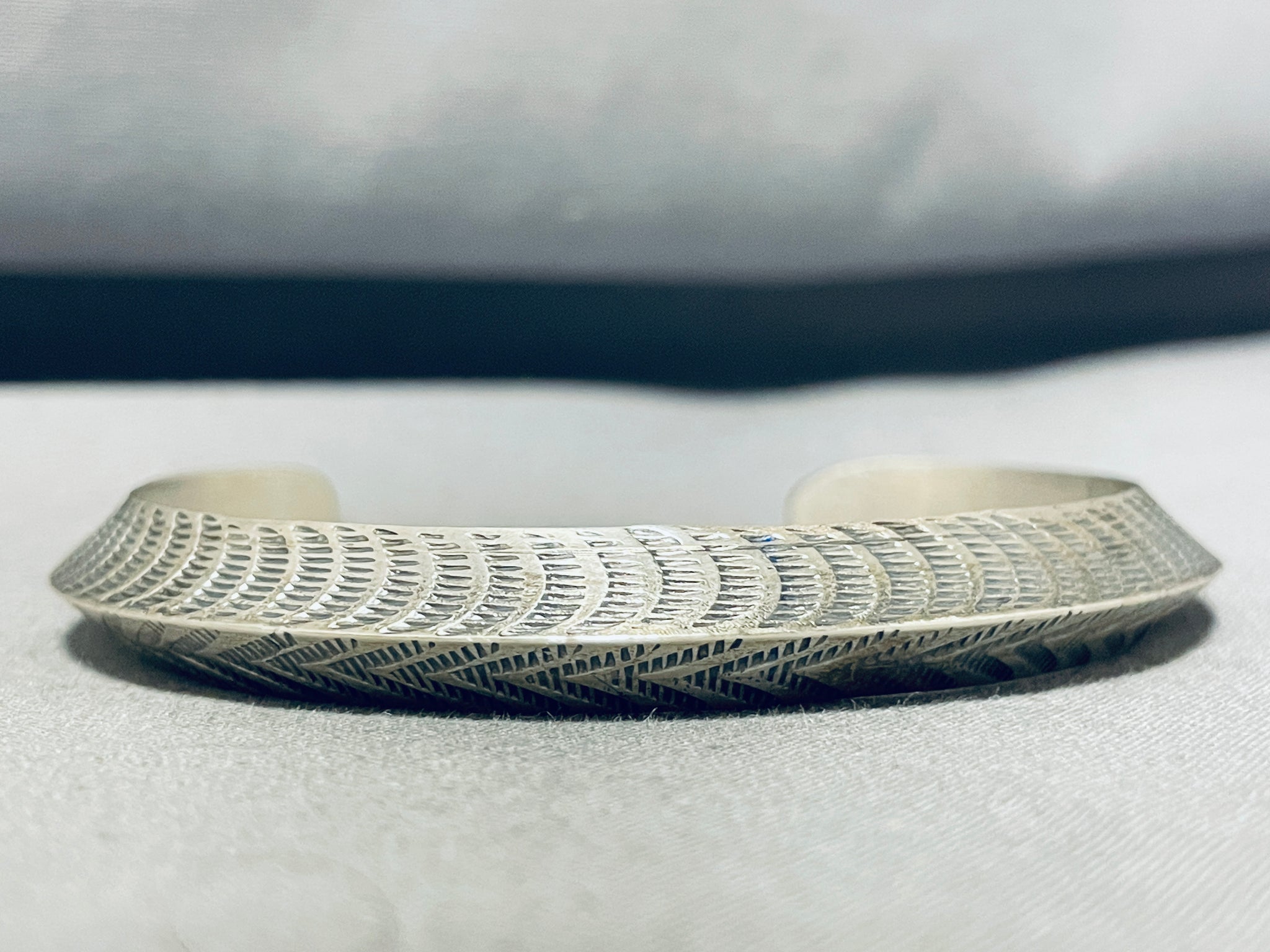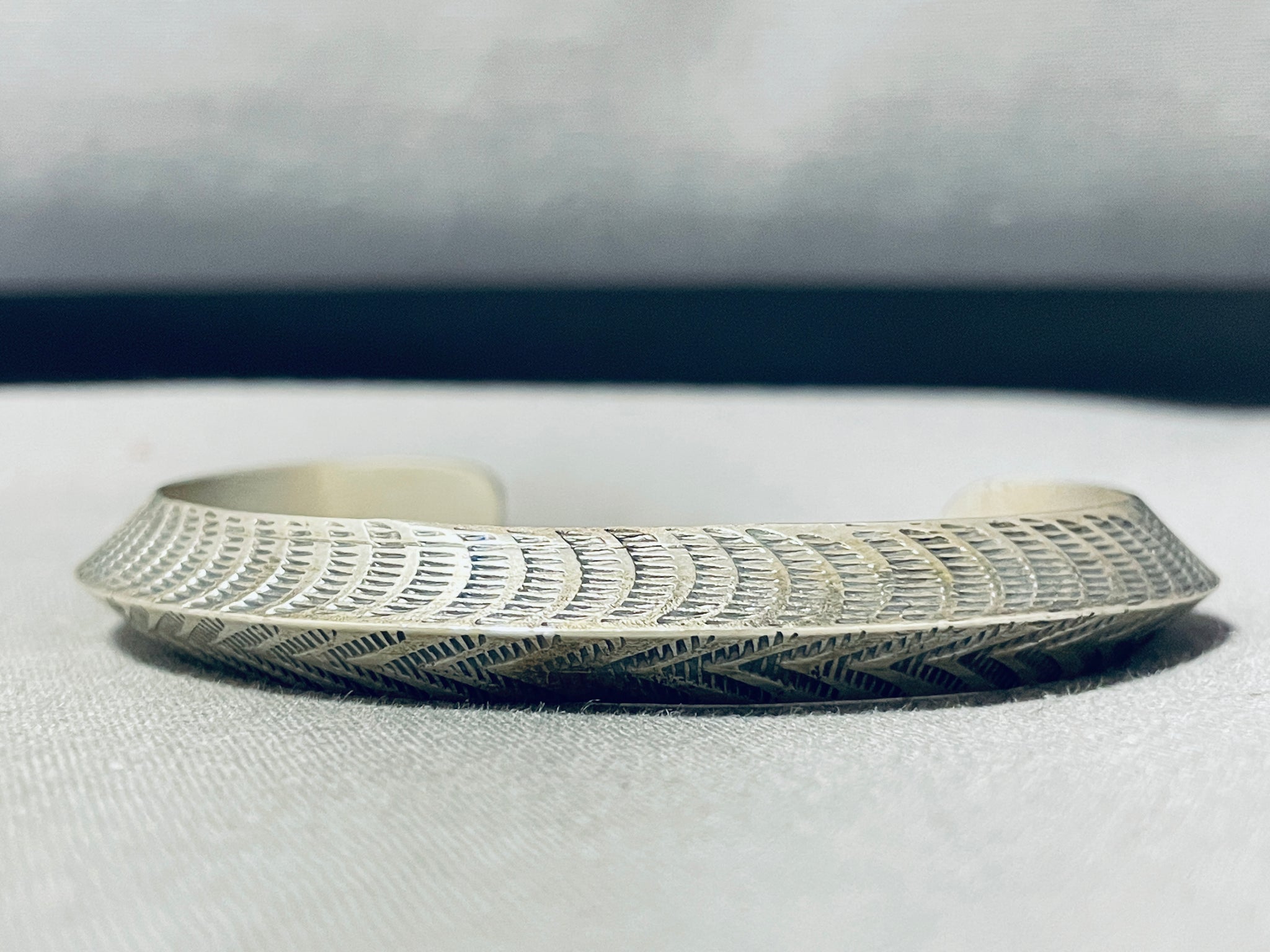 Gorgeous Native American Navajo Signed Sterling Silver Handstamped Tawny Willie Bracelet