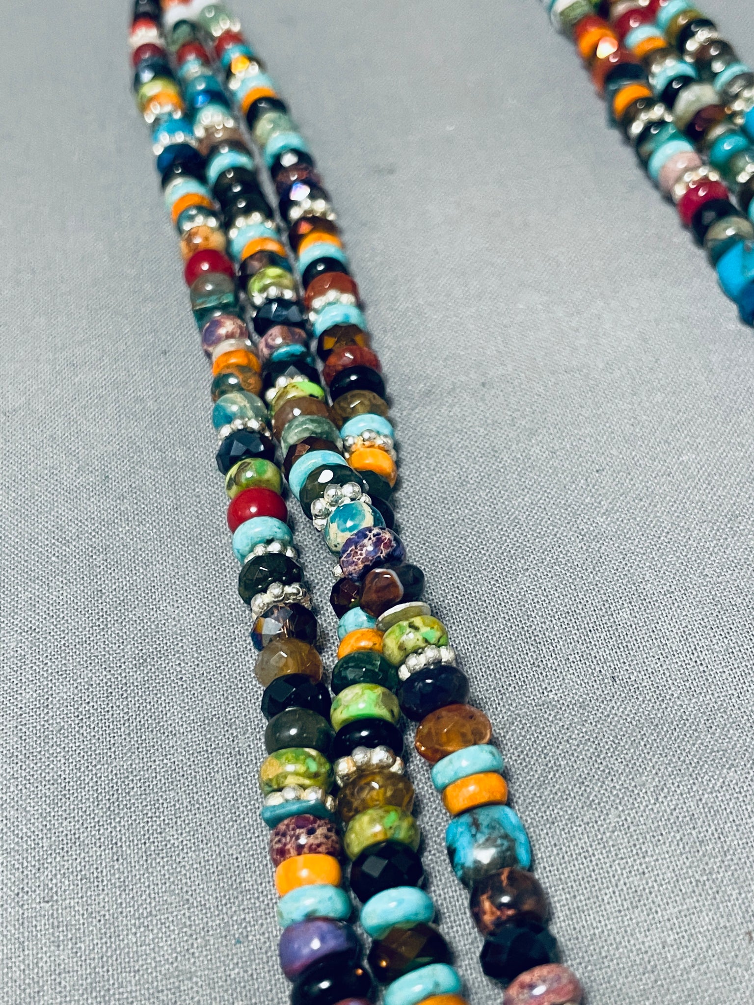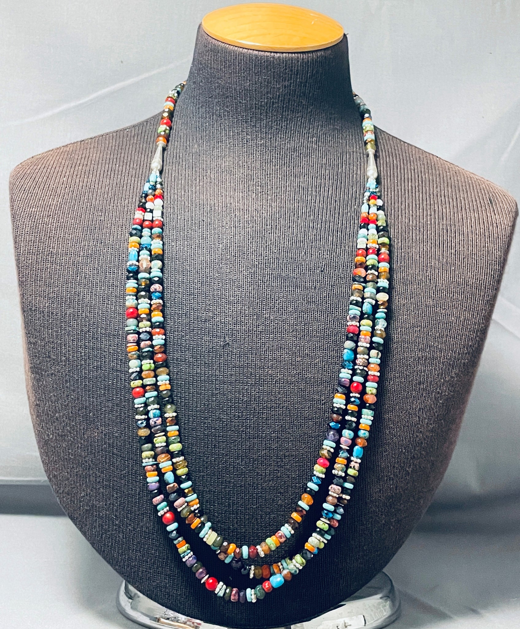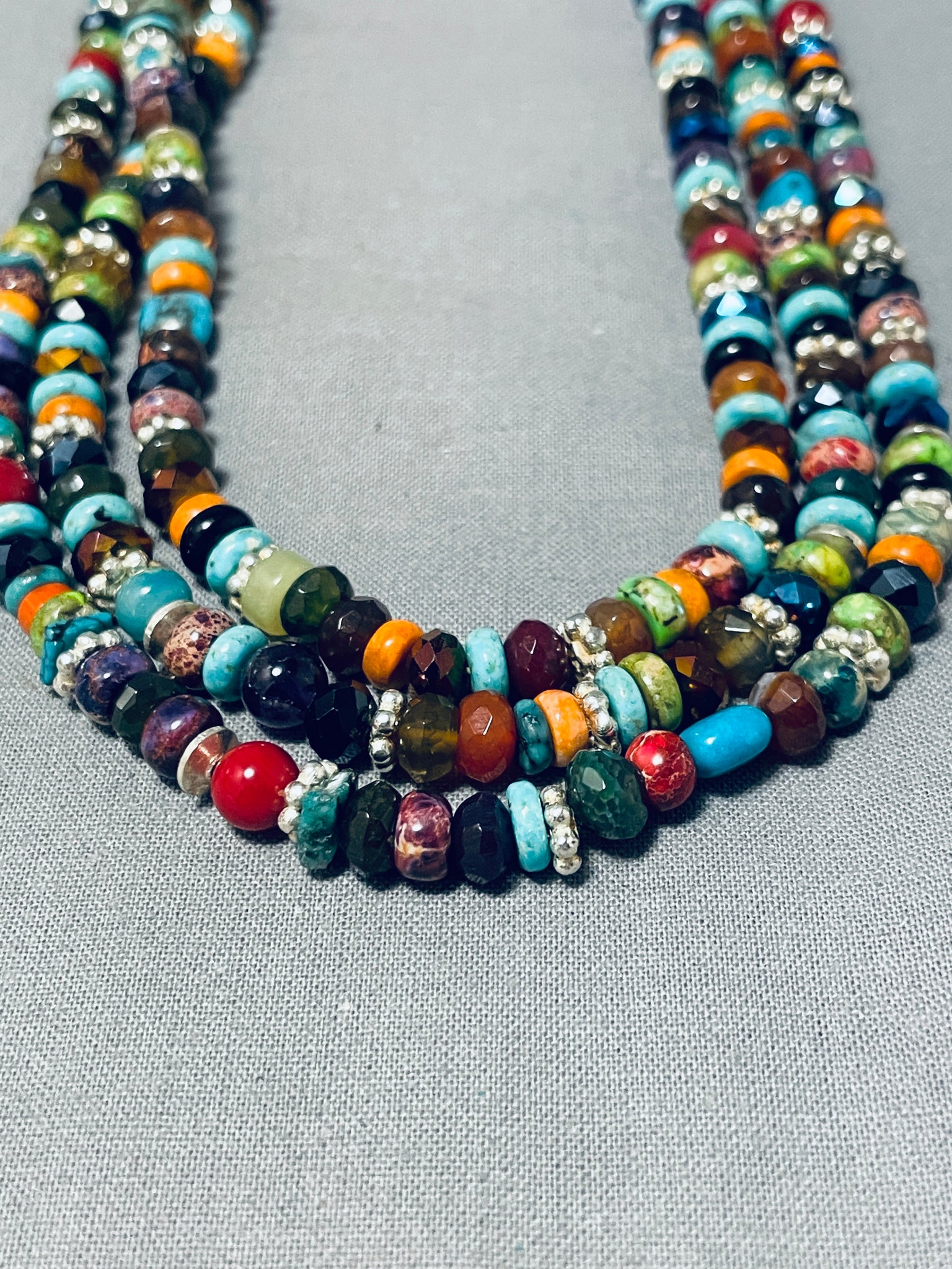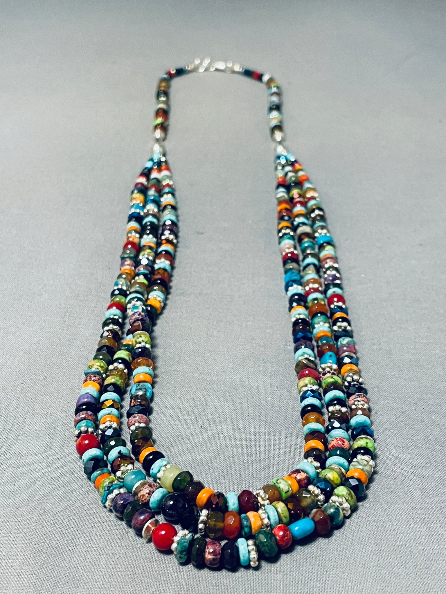 Gorgeous Native American Navajo Turquoise Coral Spiny Lapis Sterling Silver 3 Strand Necklace