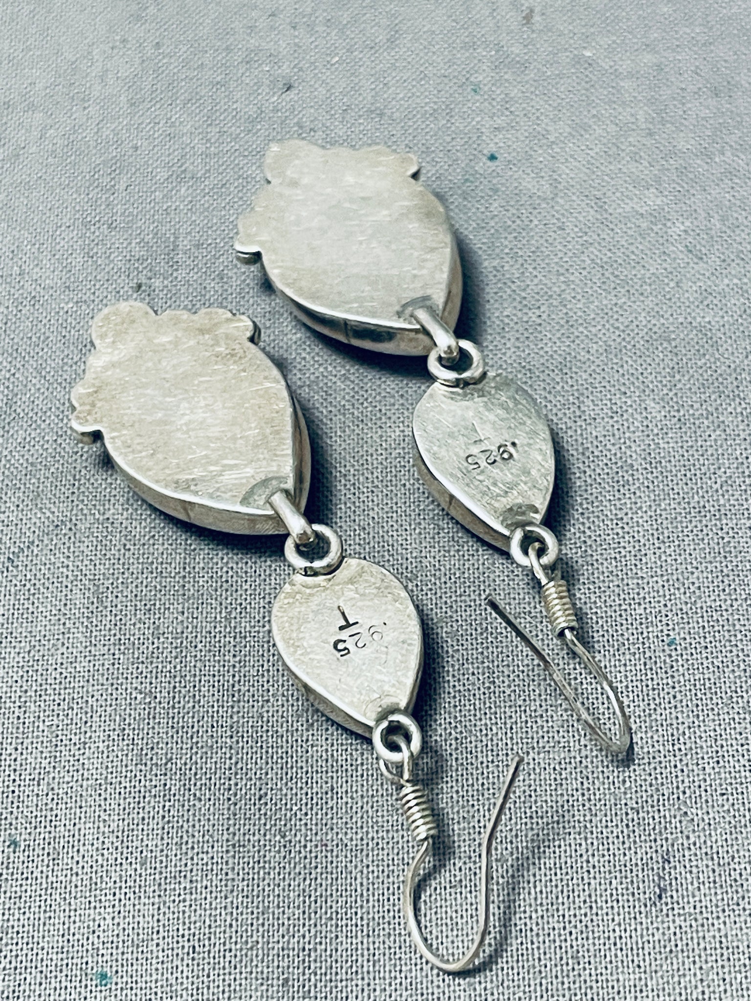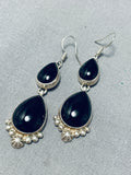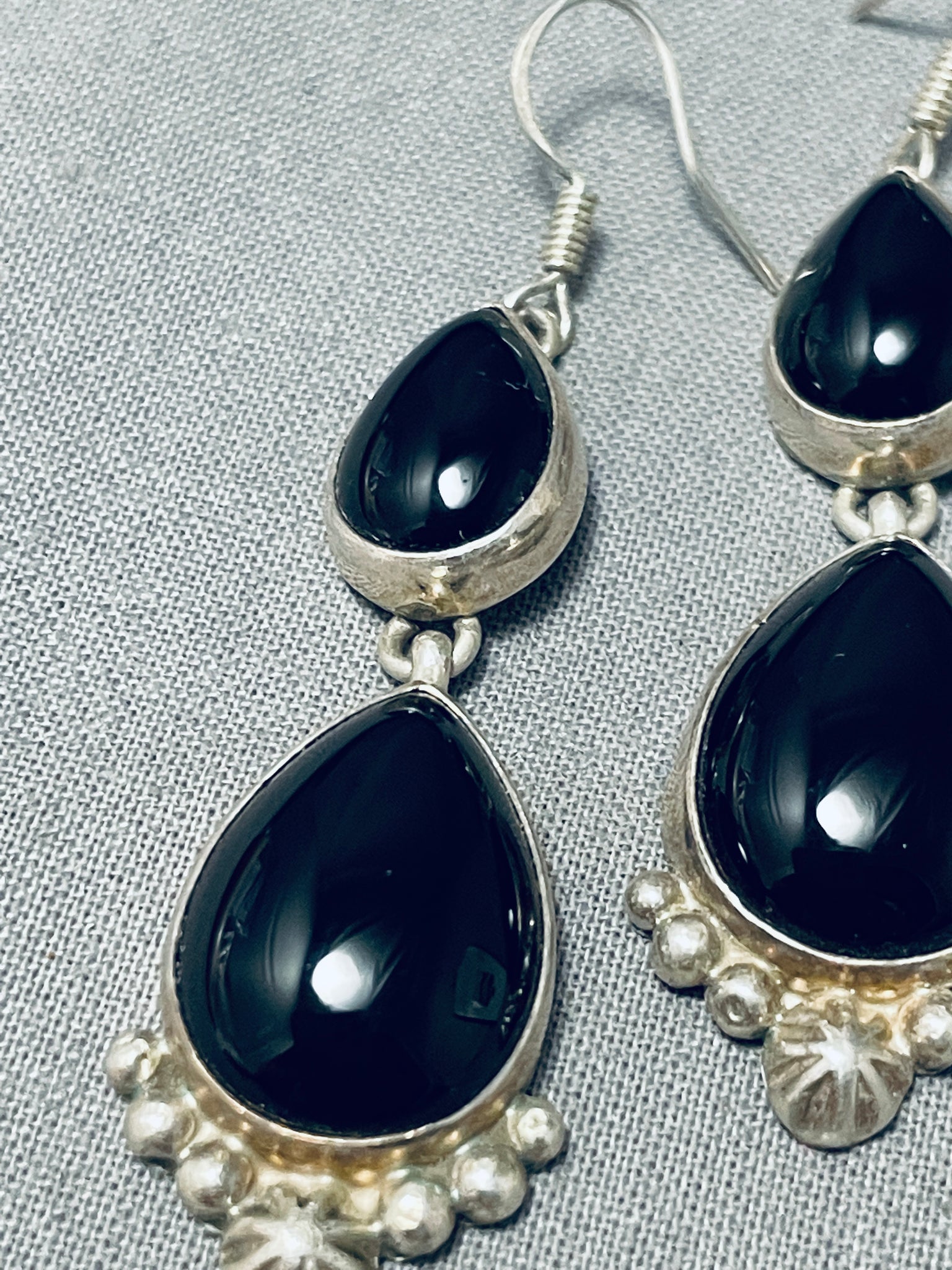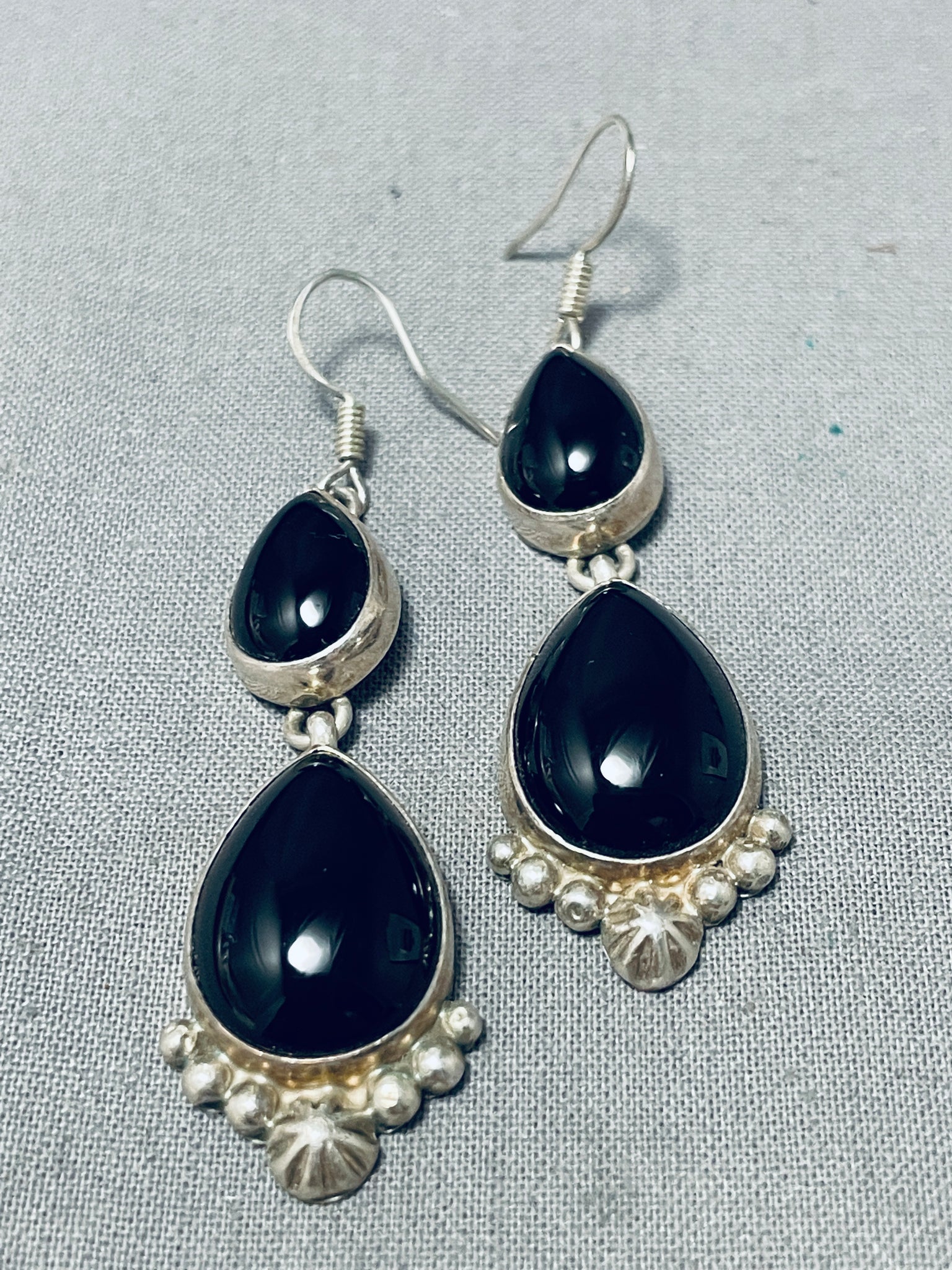 Gorgeous Vintage Native American Navajo Black Onyx Teardrops Sterling Silver Earrings
