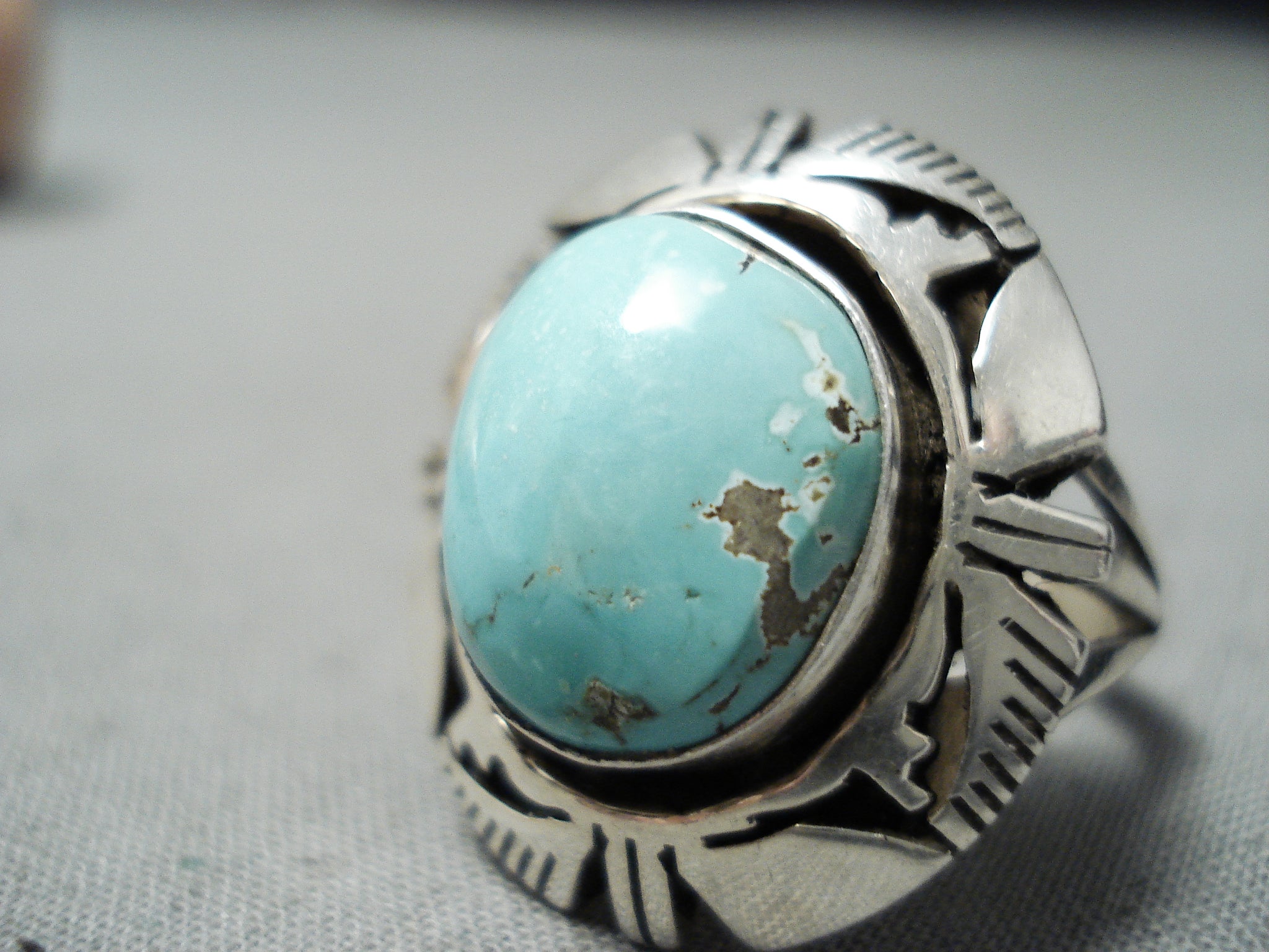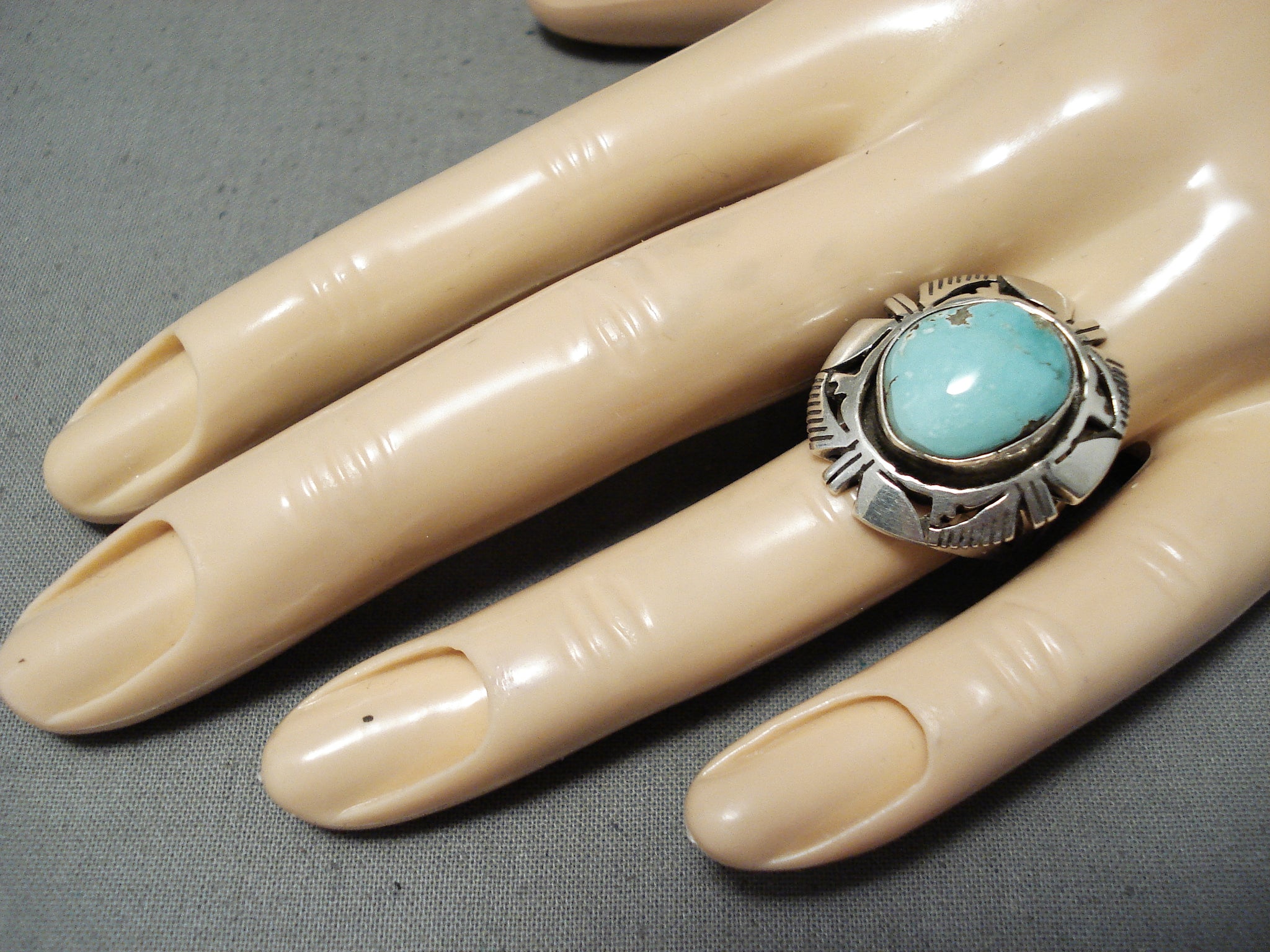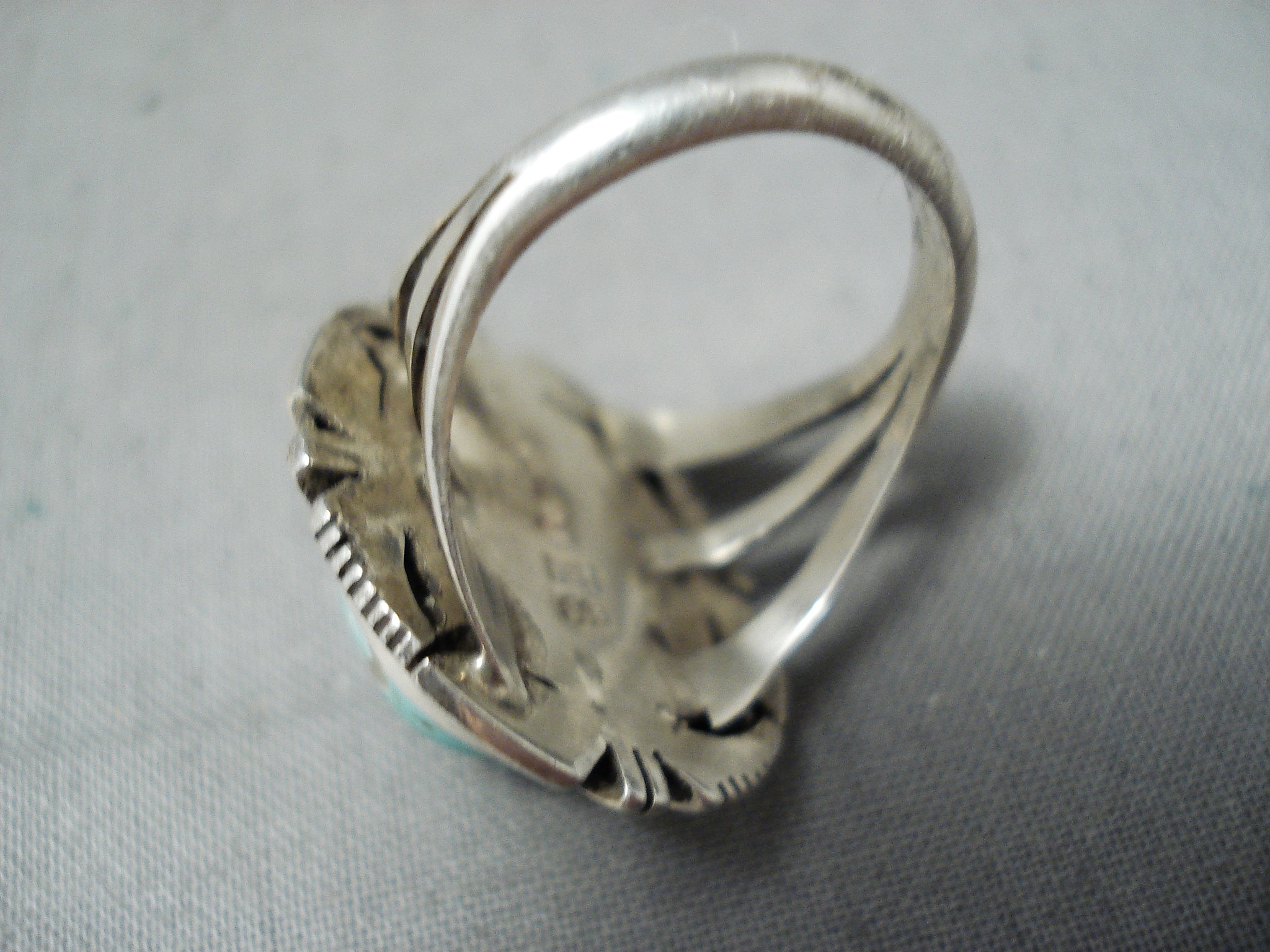 Gorgeous Vintage Native American Navajo Green Turquoise Sterling Silver Ring