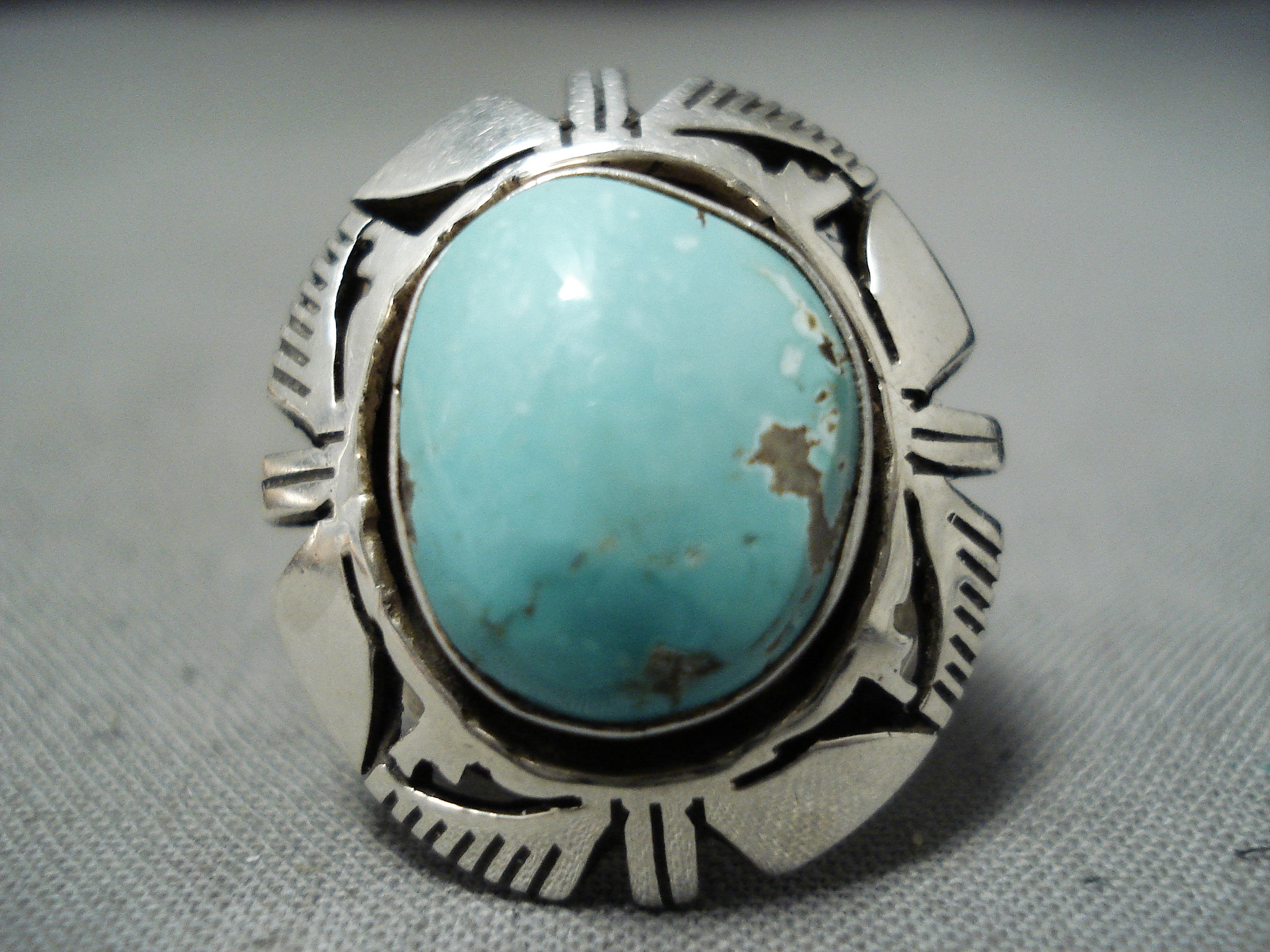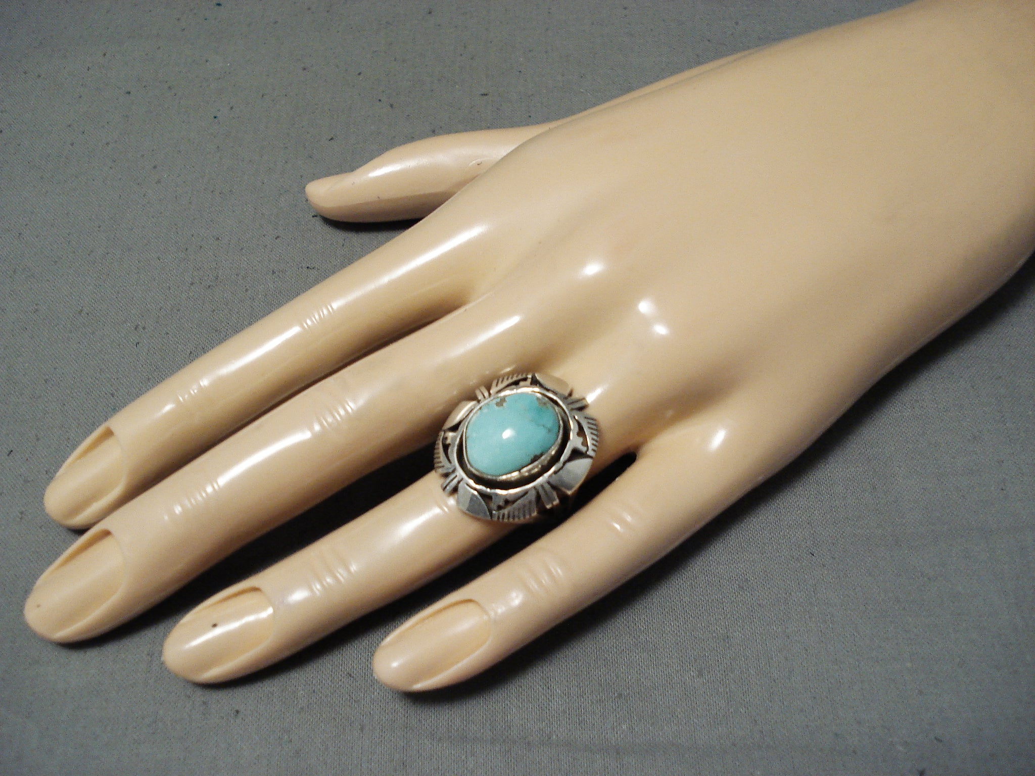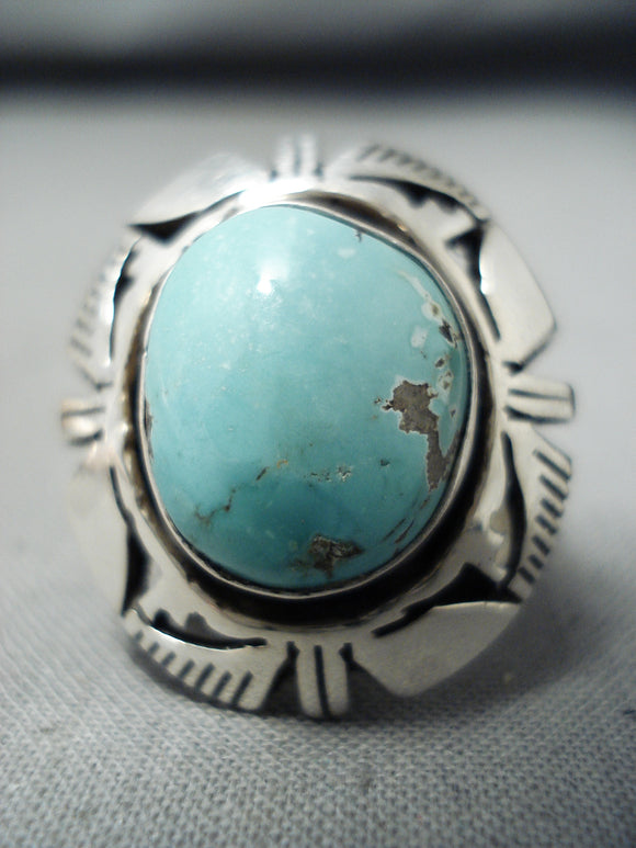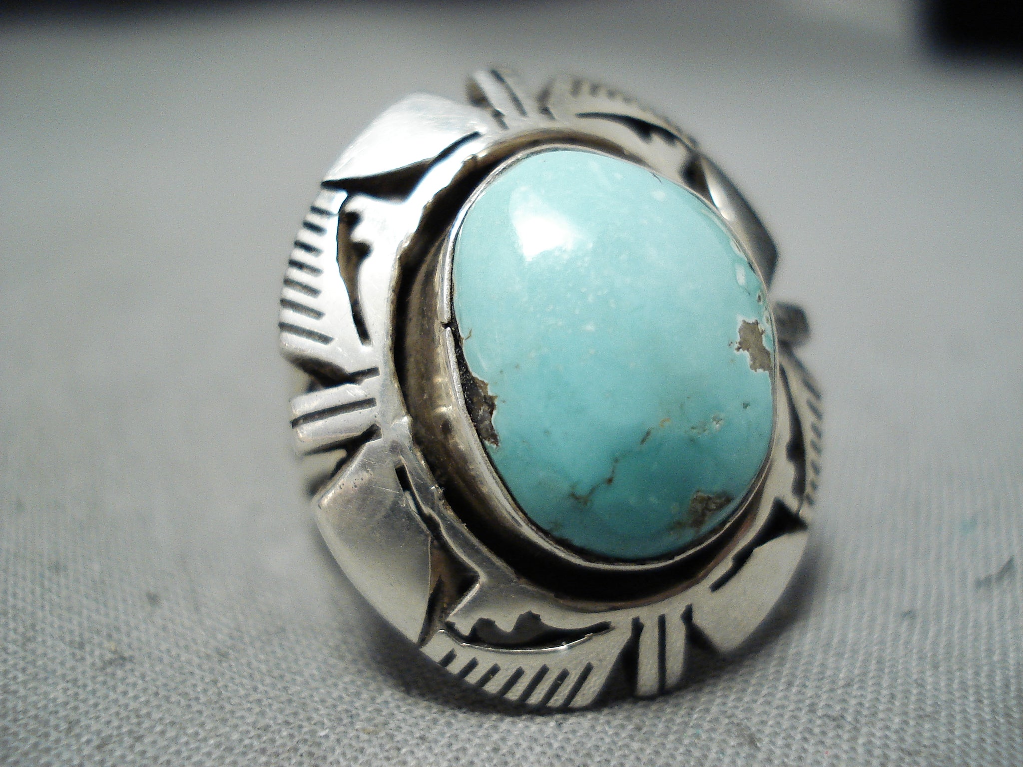 Gorgeous Vintage Native American Navajo Green Turquoise Sterling Silver Ring