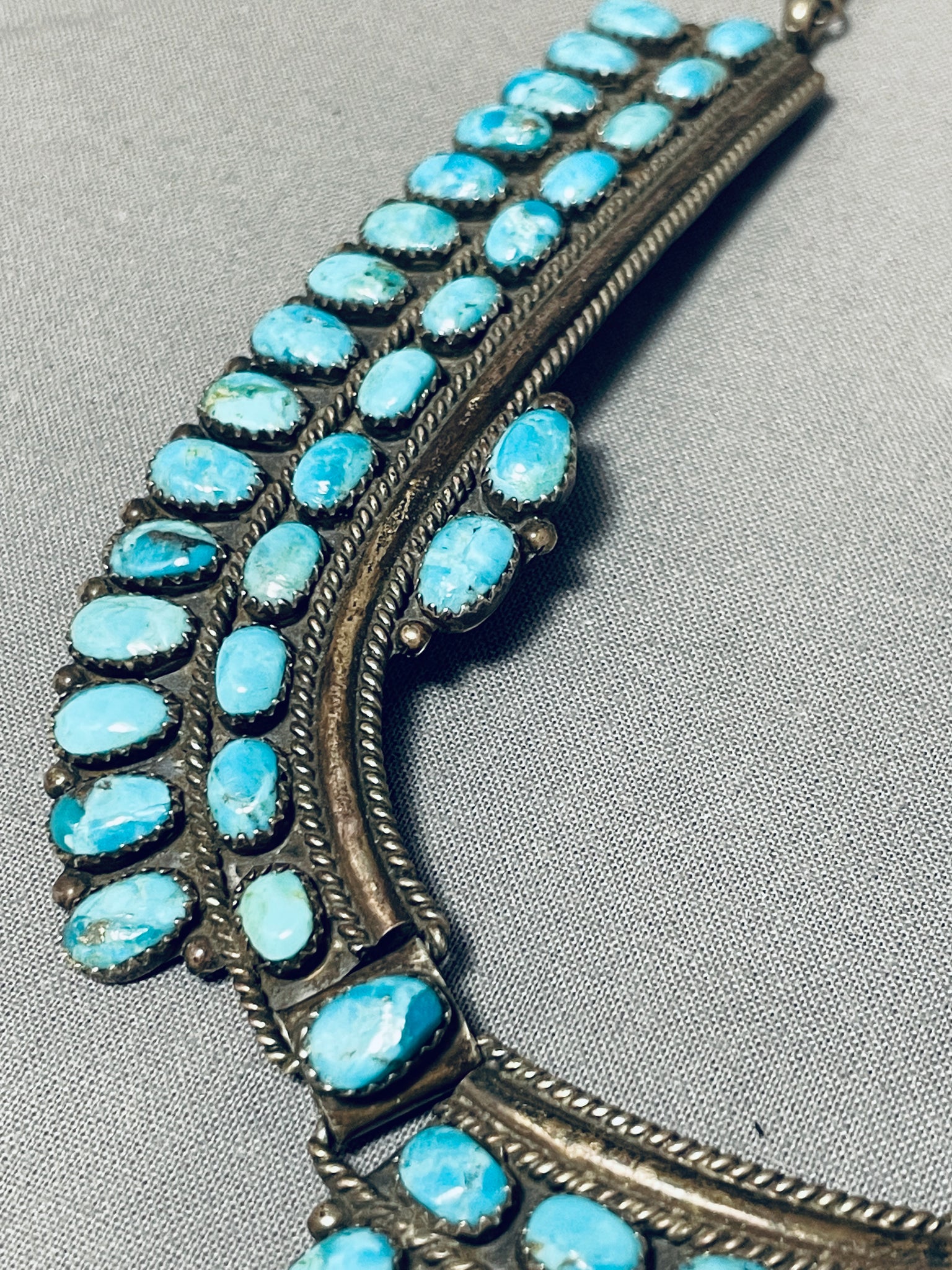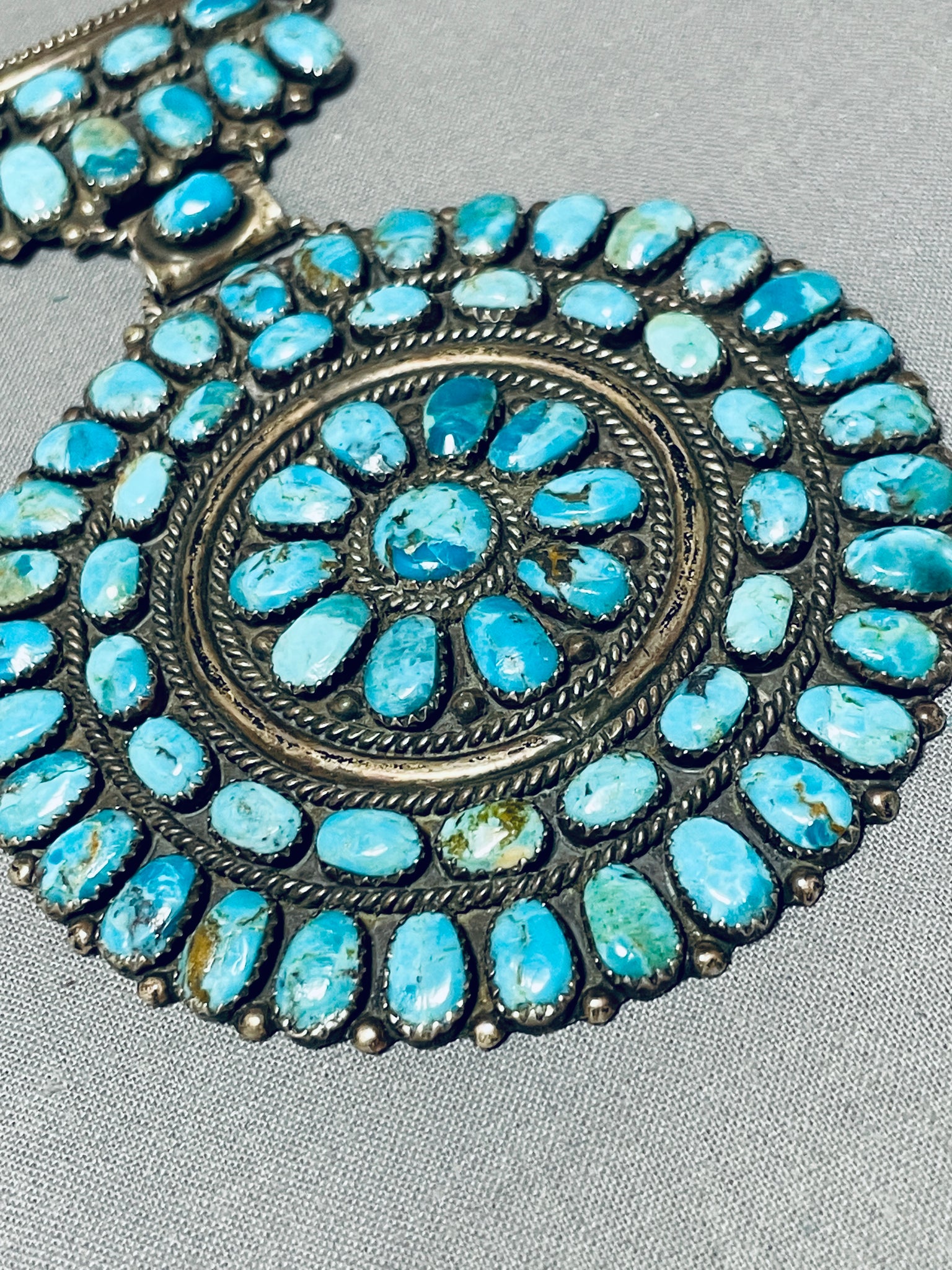 Grand Huge Vintage Native American Navajo Turquoise Sterling Silver Necklace