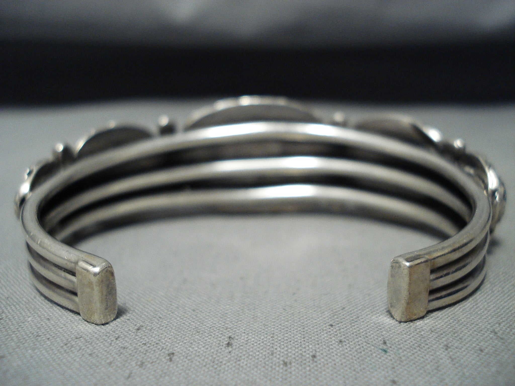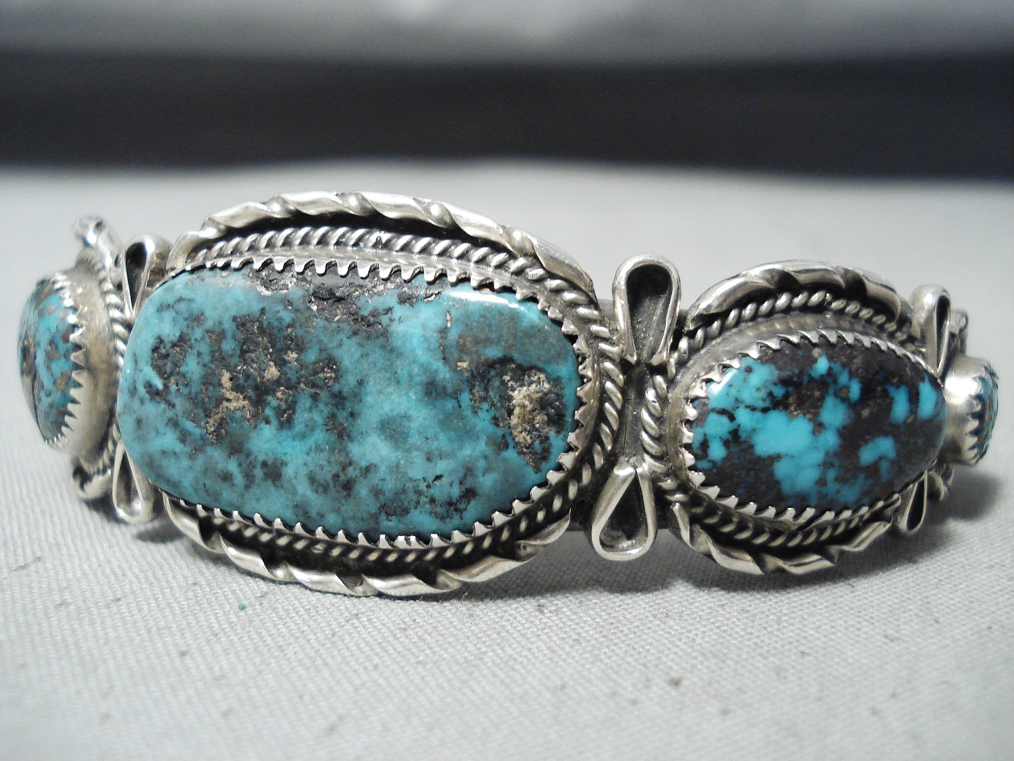 Grand Vintage Native American Navajo Turquoise Mountain Turquoise Sterling Silver Bracelet Old