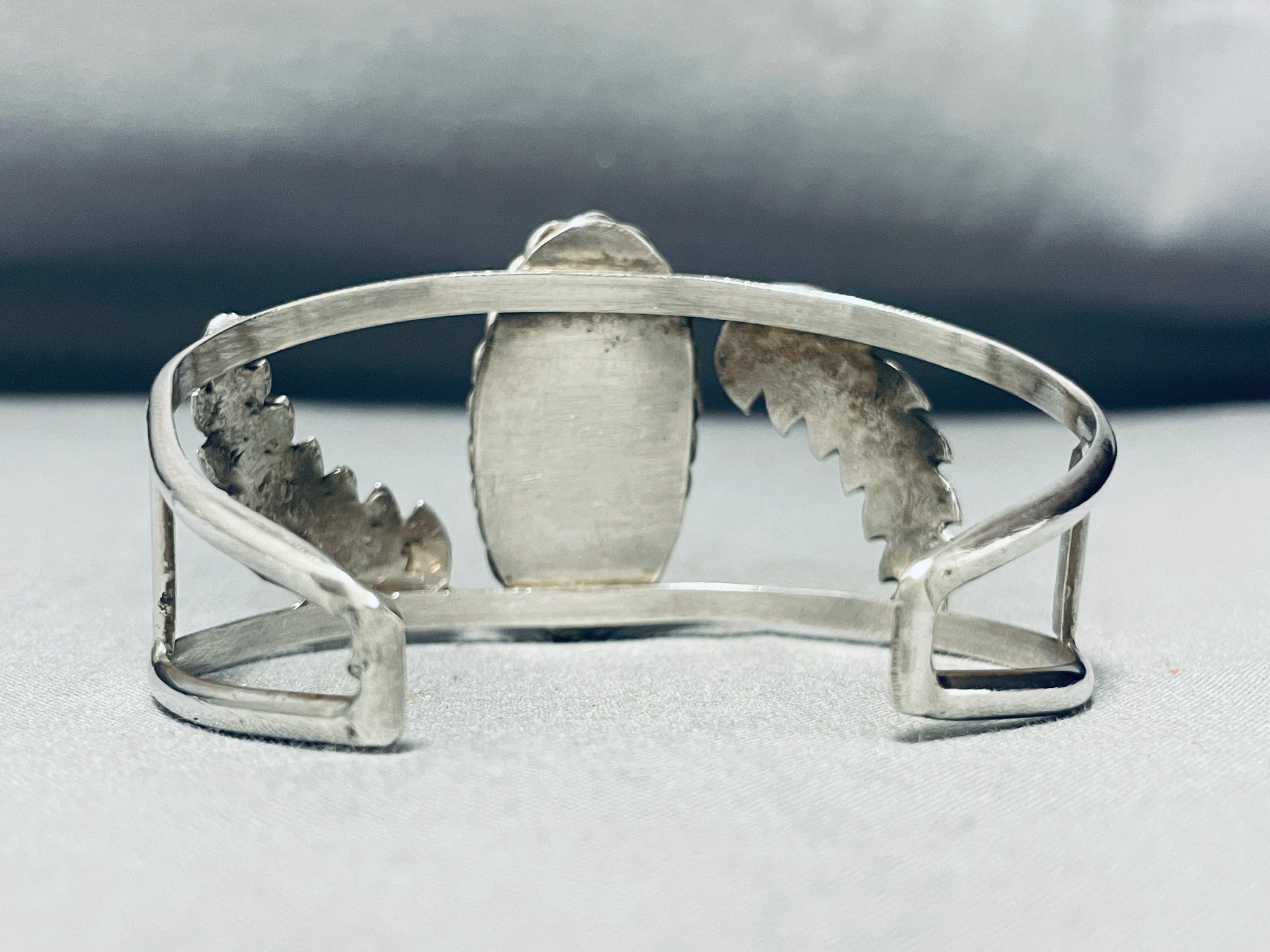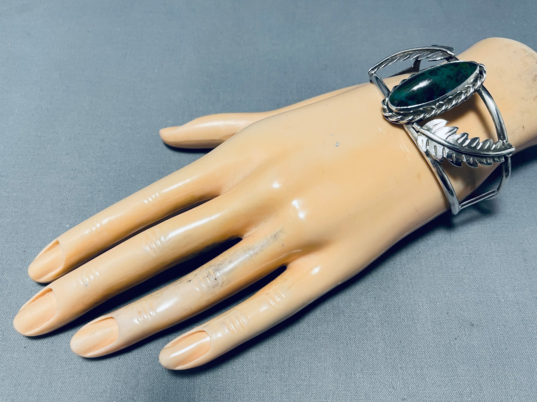 Green Turquoise Jungle Leaf Vintage Native American Navajo Sterling Silver Bracelet