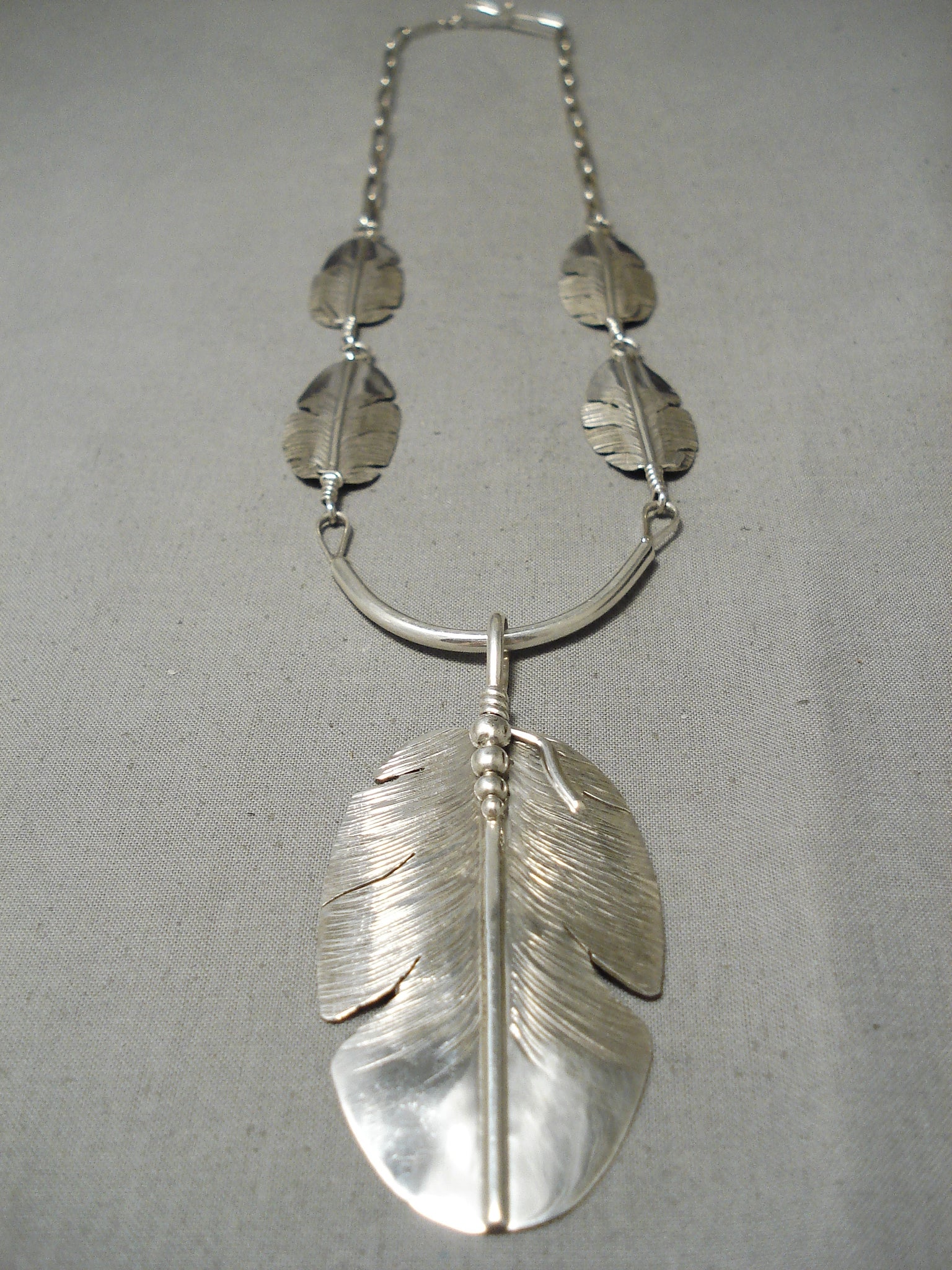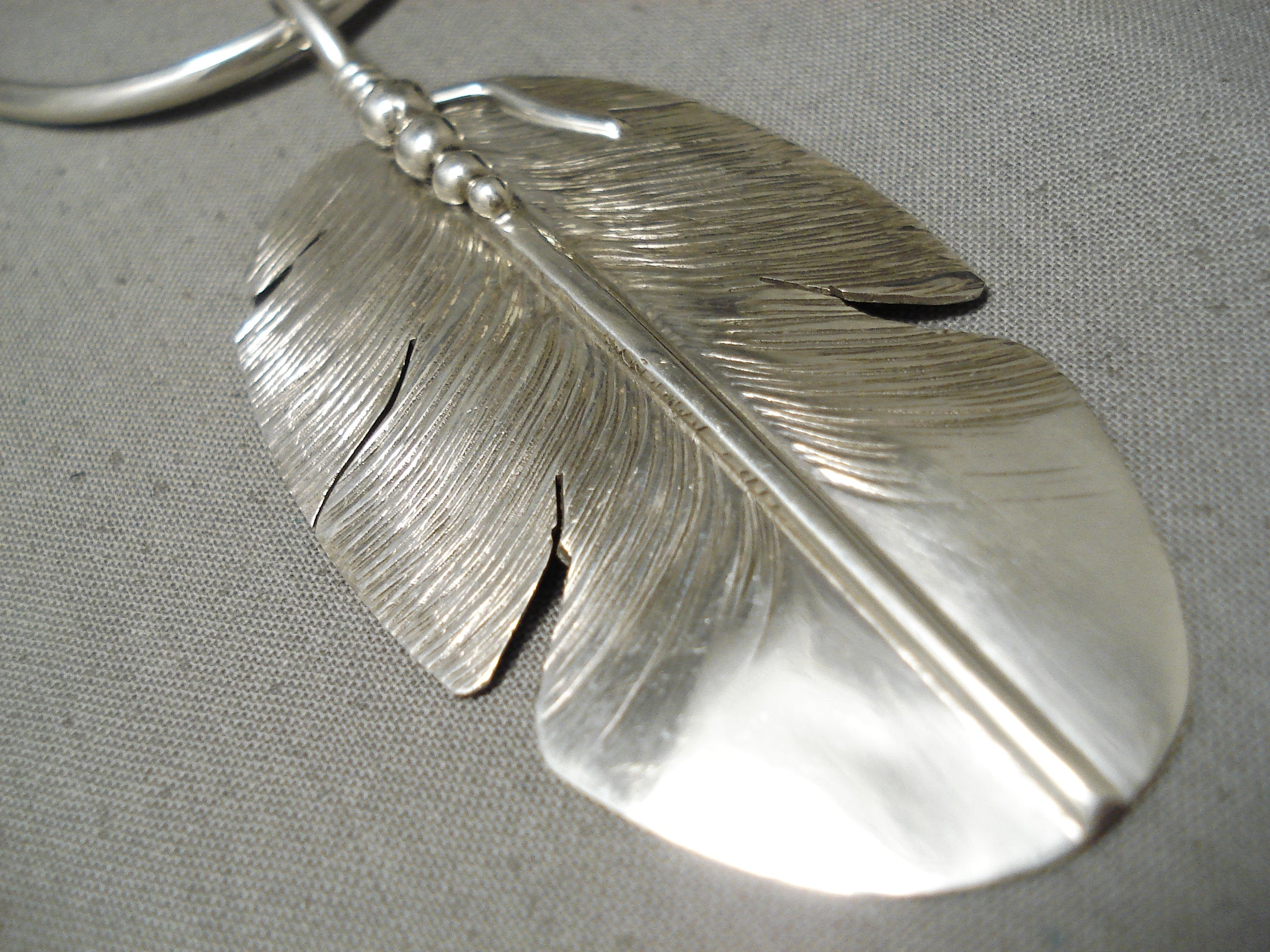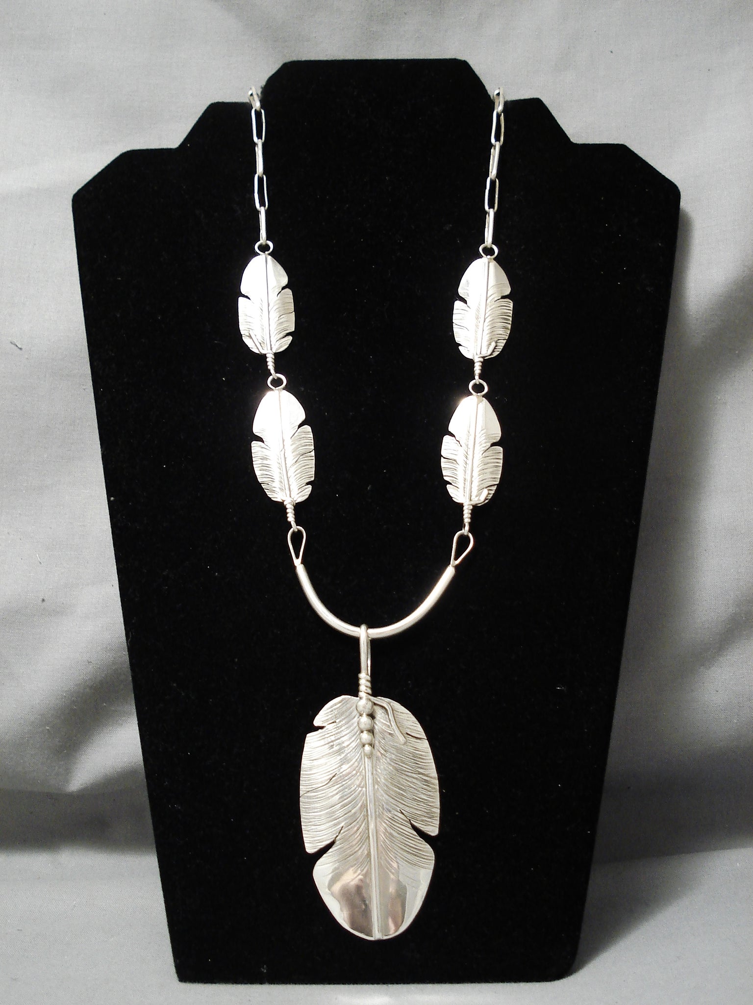 Hand Carved Feather Master Native American Navajo Sterling Silver Necklace