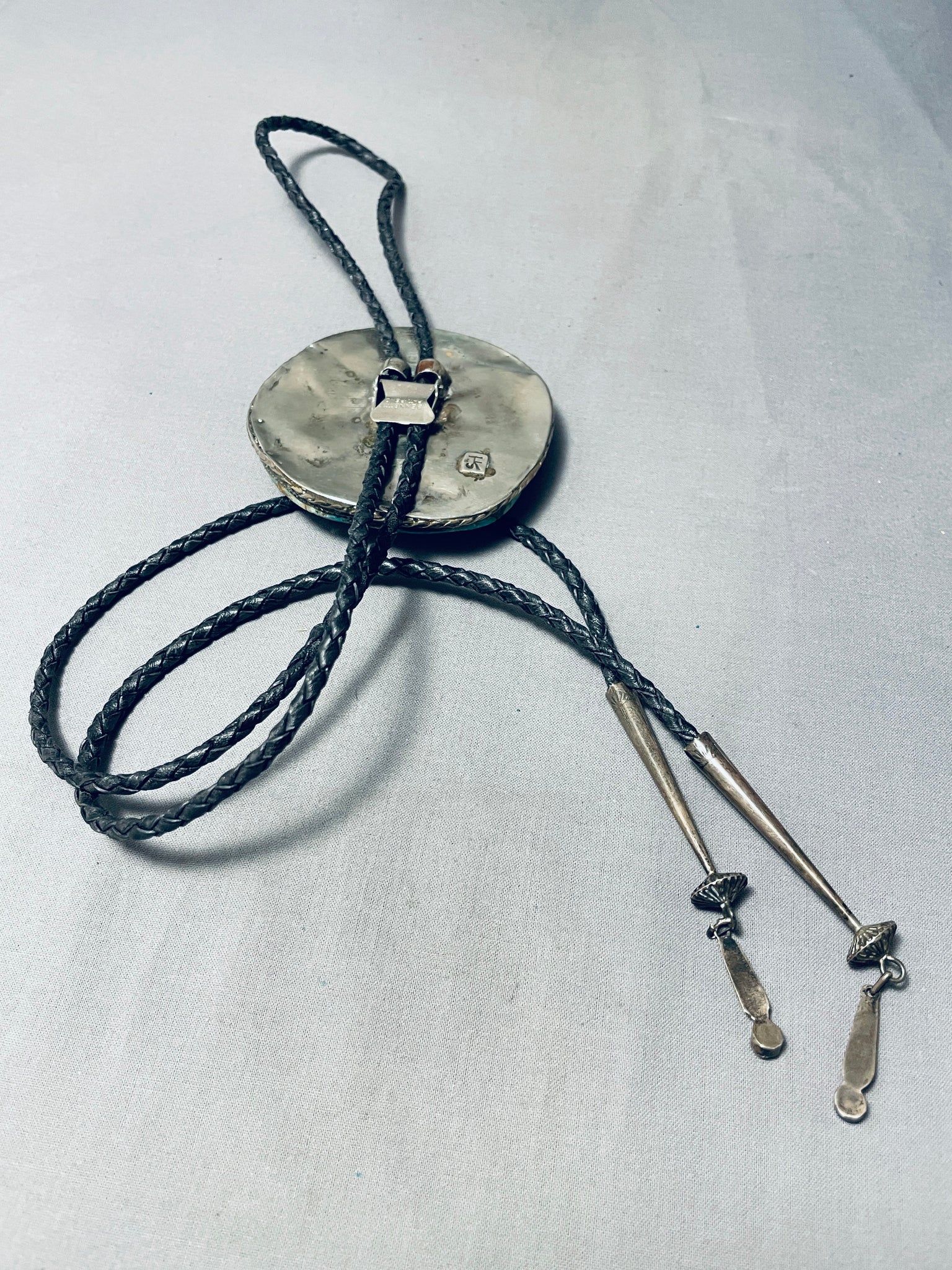 Hand Carved Massive Old Eagle Vintage Native American Navajo Sterling Silver Bolo Tie