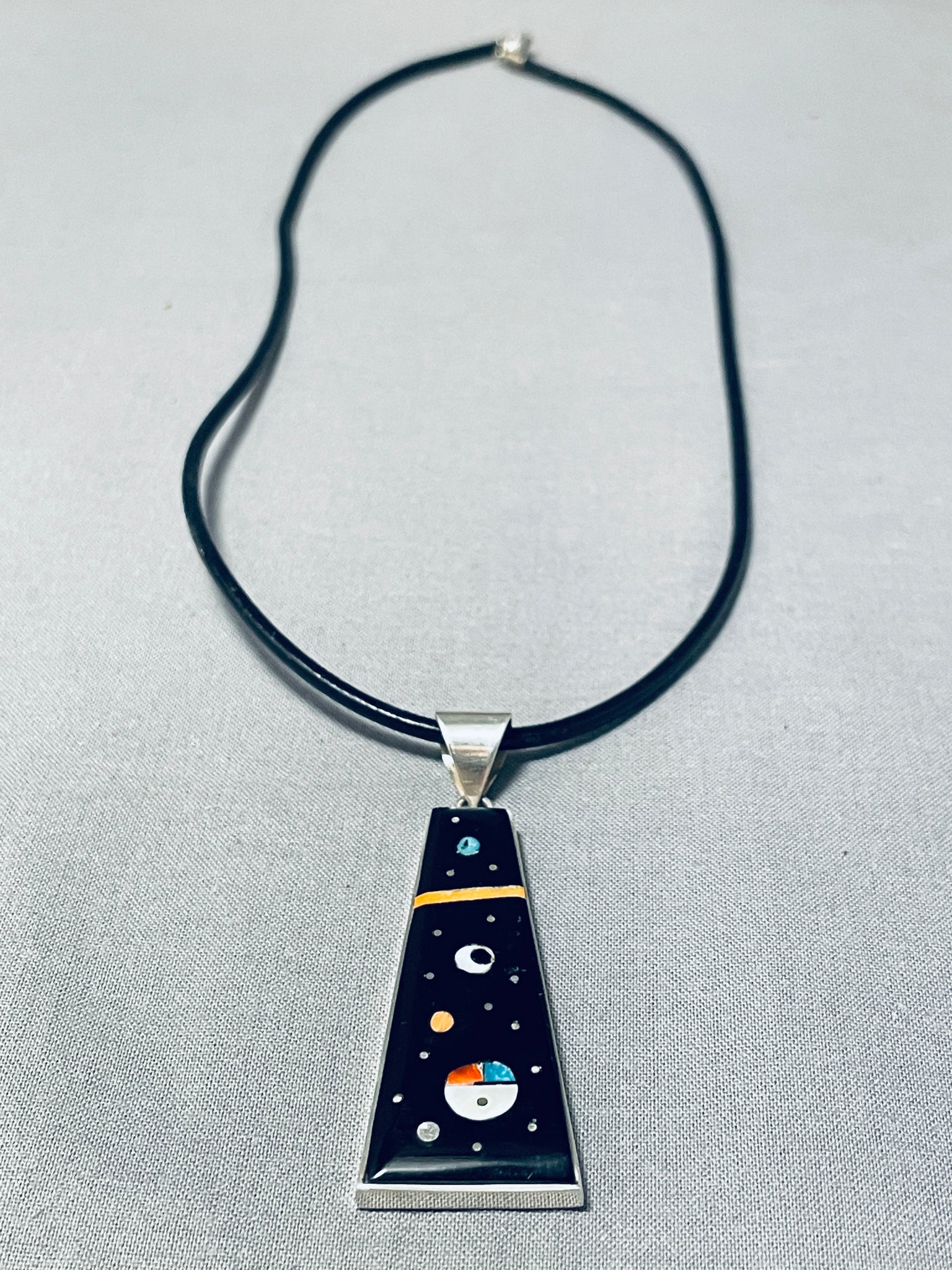 Hand Inlaid Incredible Signed Native American Navajo Turquoise Coral Sterling Silver Necklace