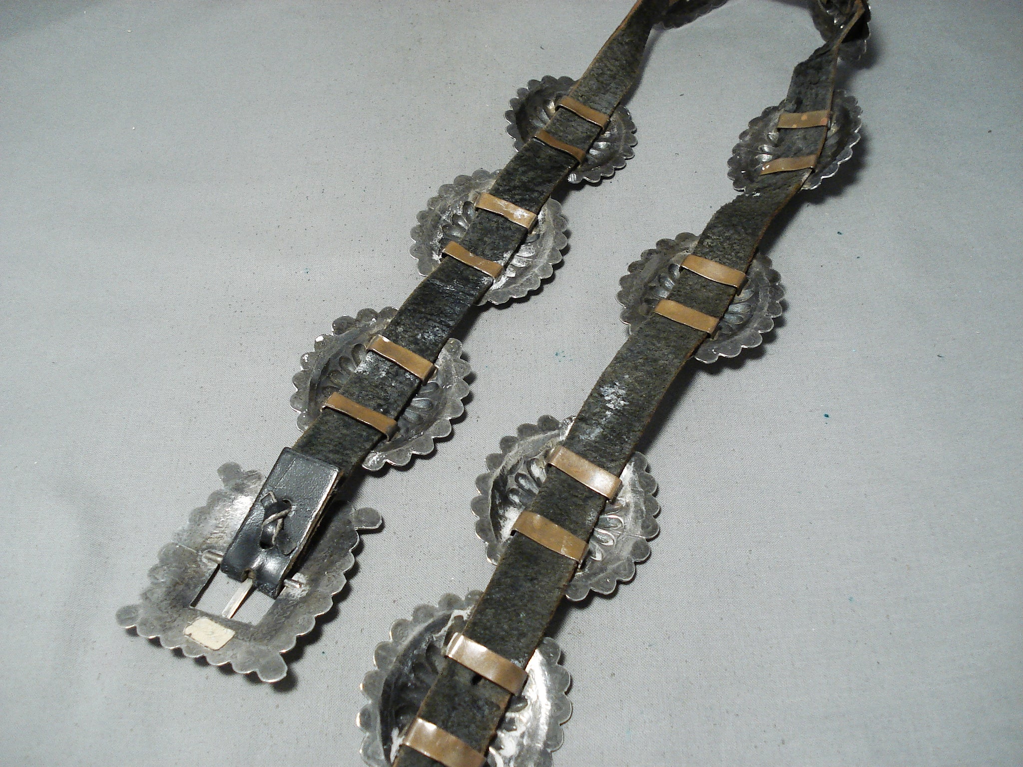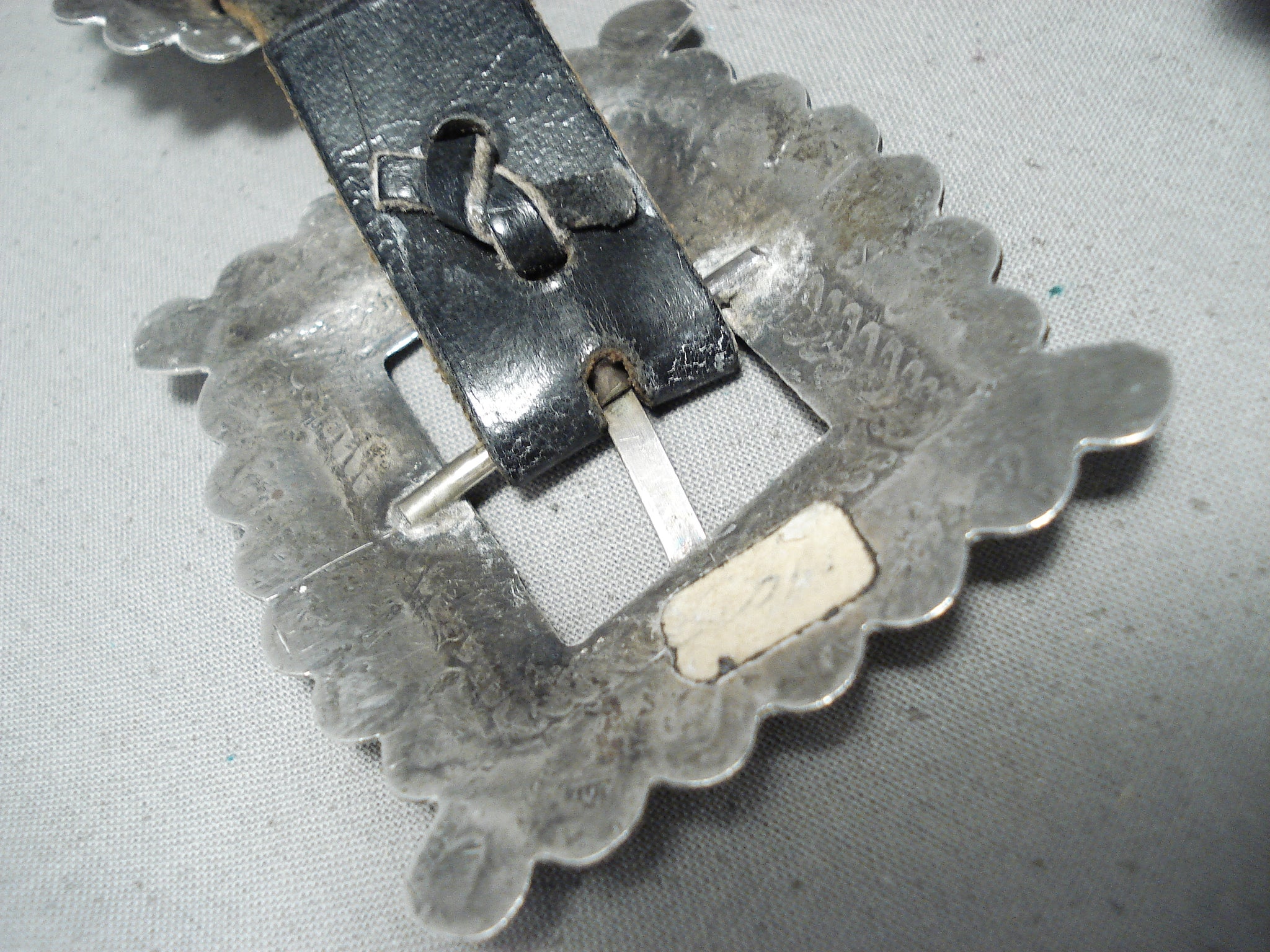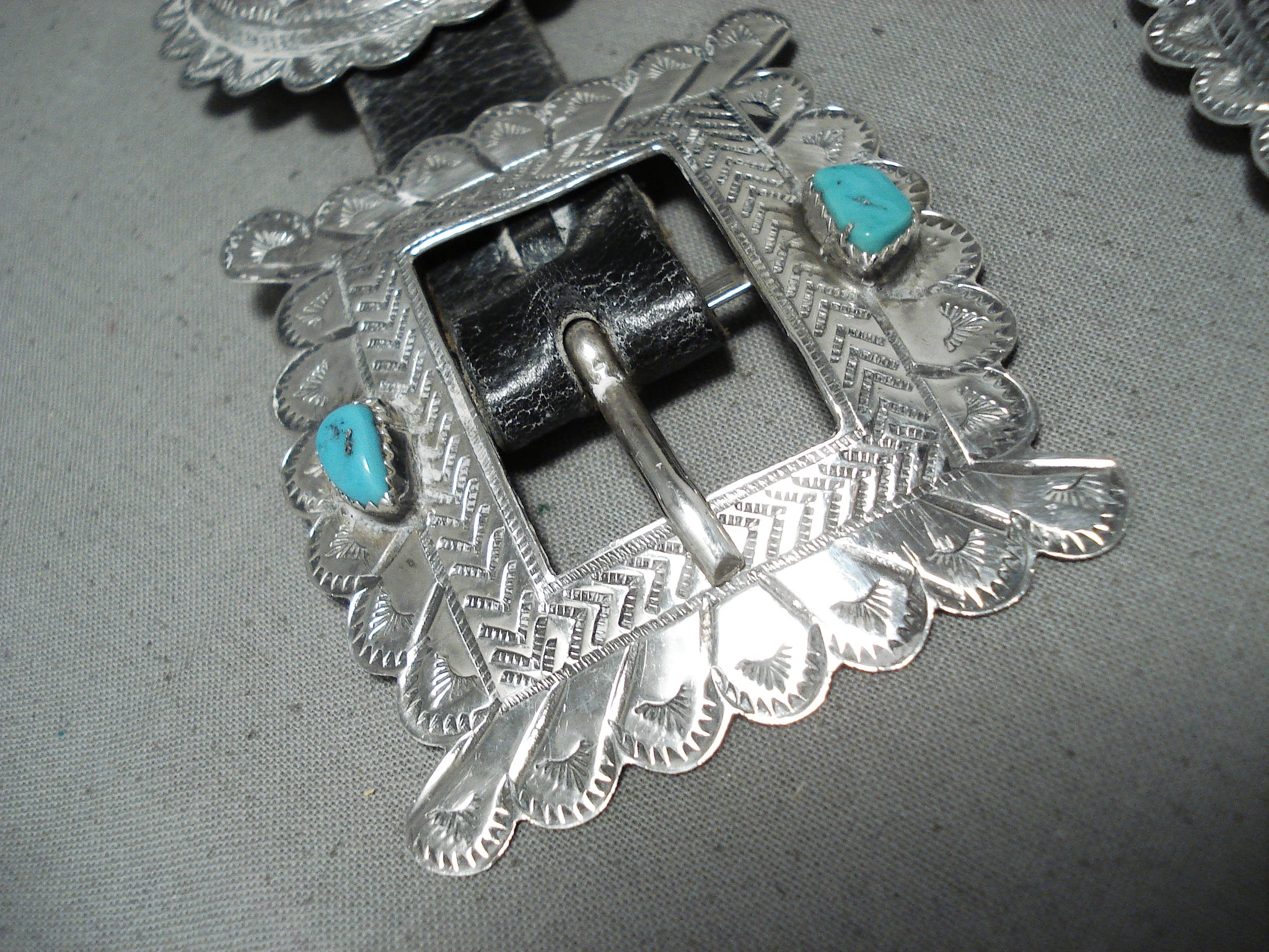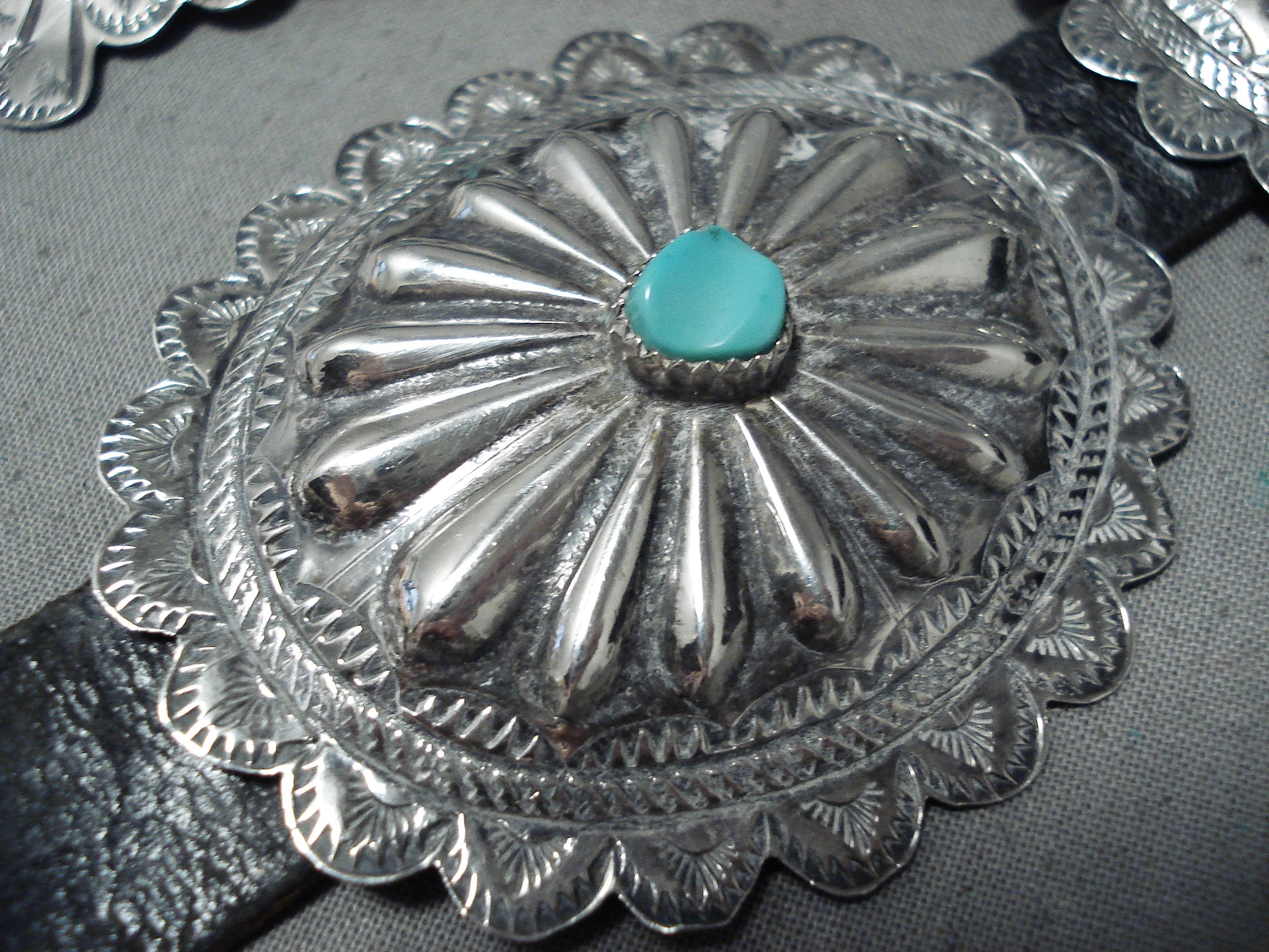 Hand Tooled Authentic Vintage Native American Navajo Turquoise Sterling Silver Concho Belt