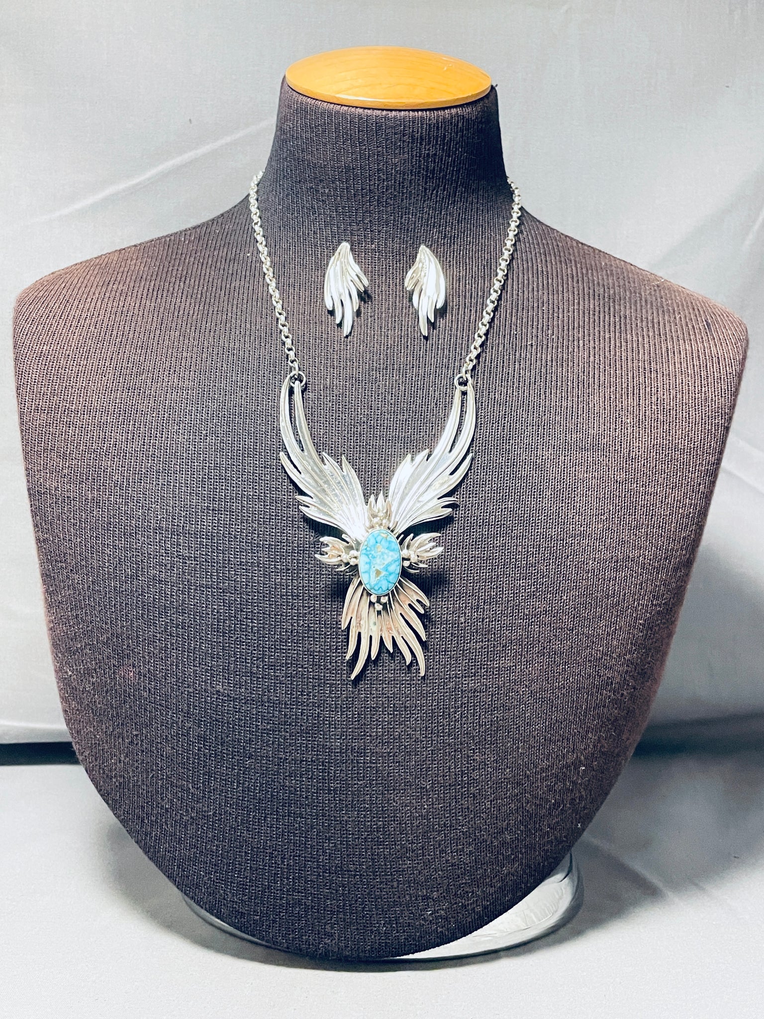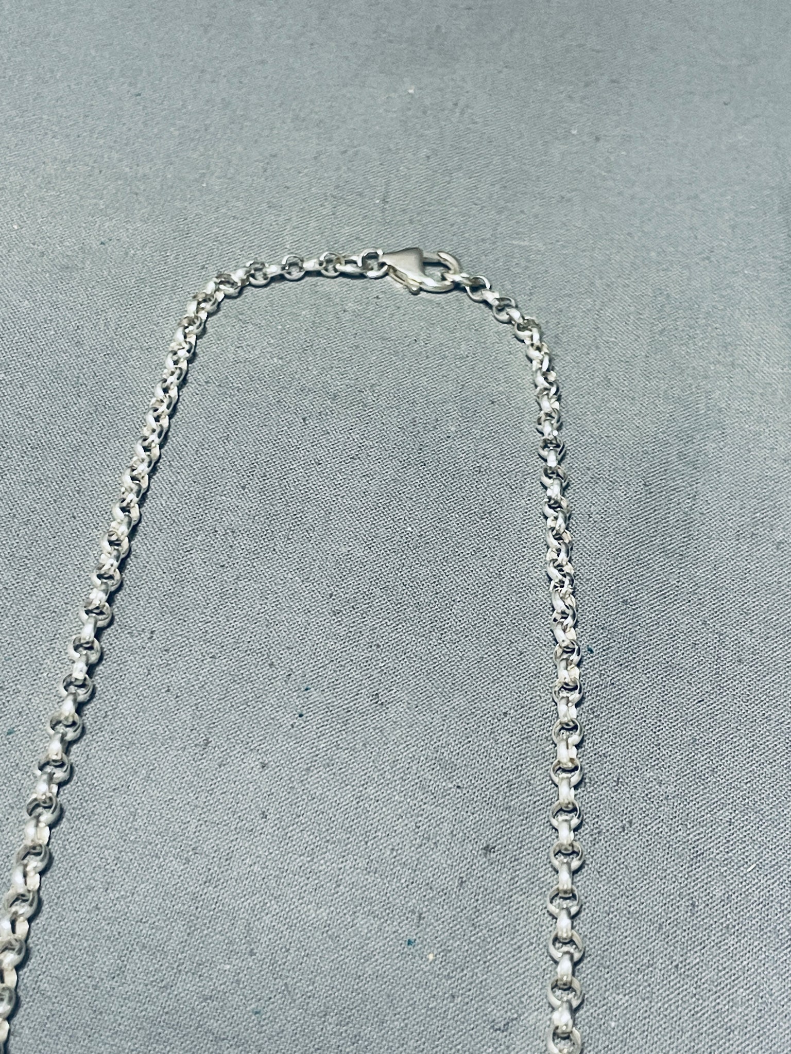Hand Tooled Flare!! Charlie Johnson Vintage Native American Navajo Sterling Silver Necklace