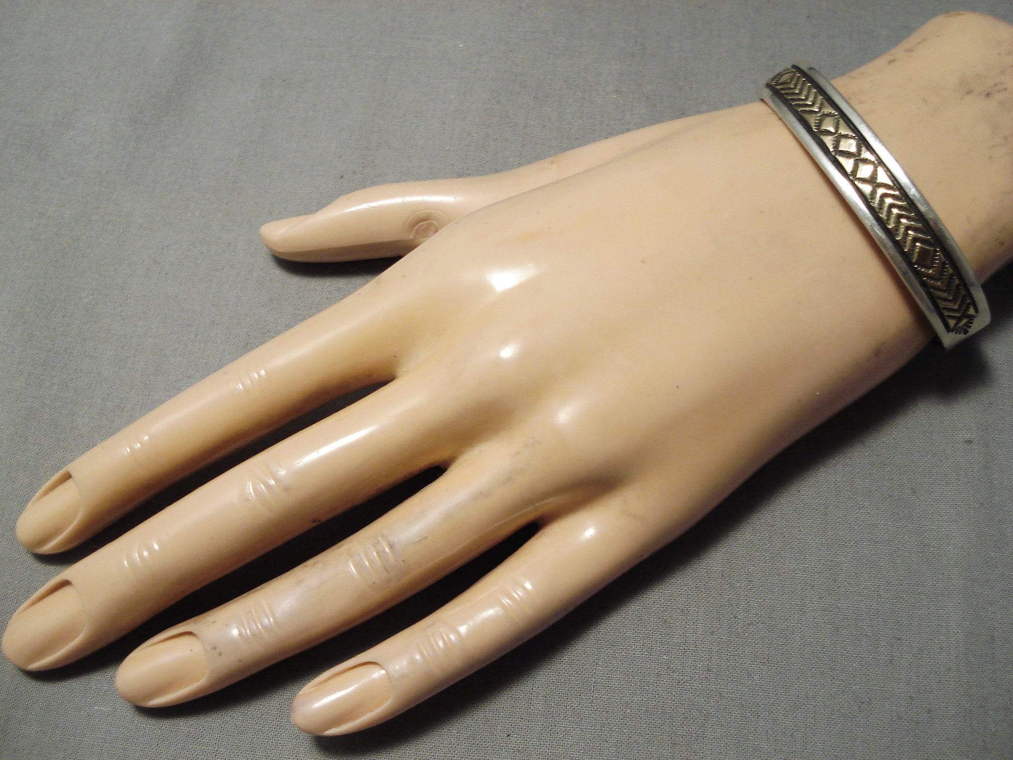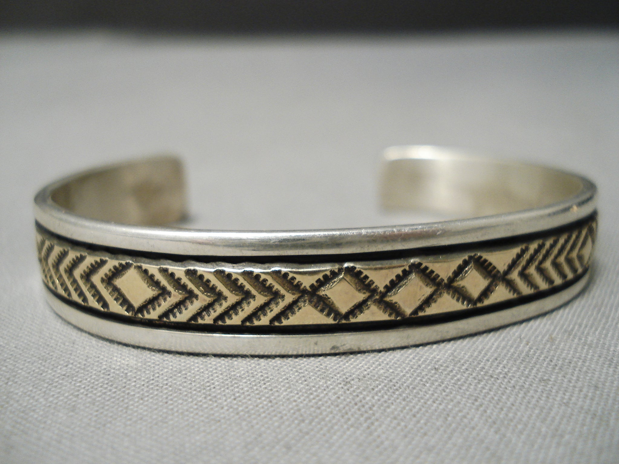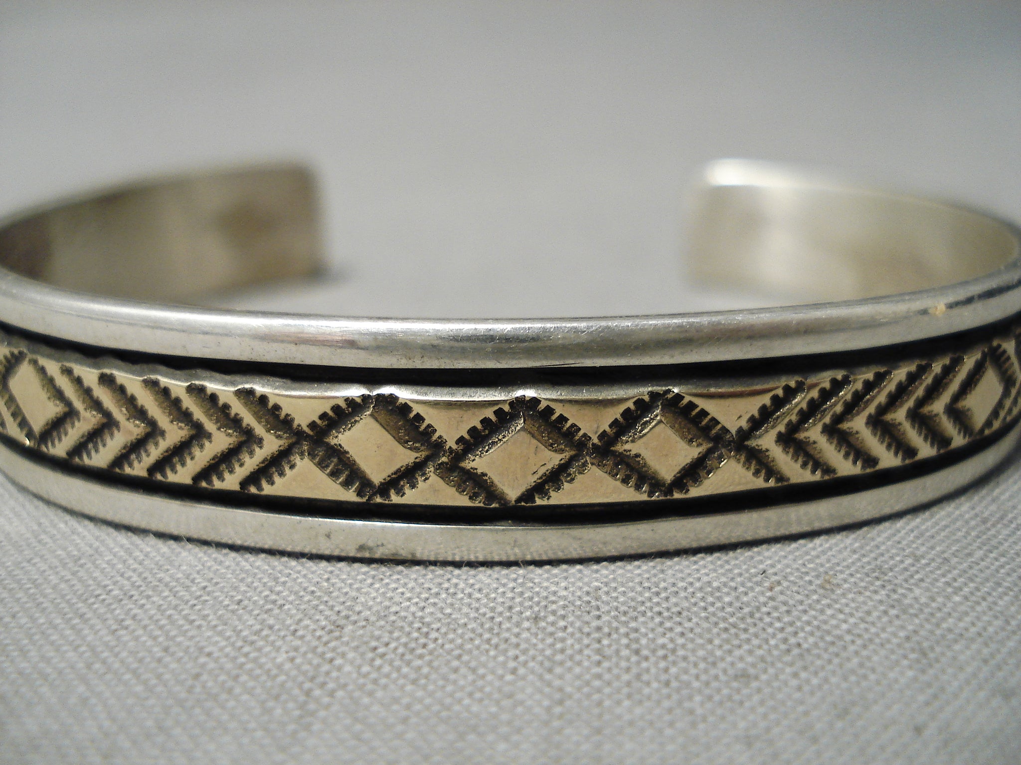 Hand Tooled Real 14k Gold Vintage Native American Navajo Sterling Silver Bracelet Old