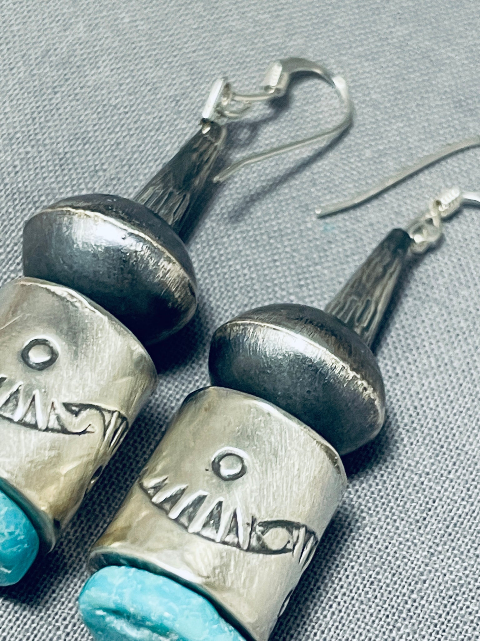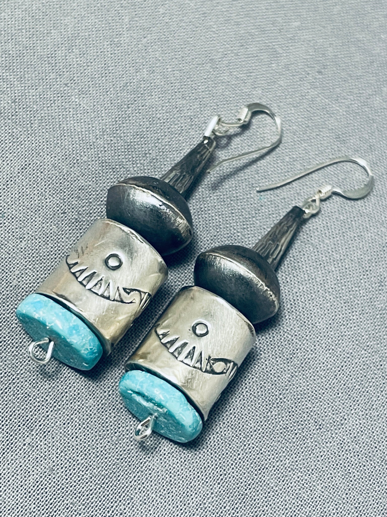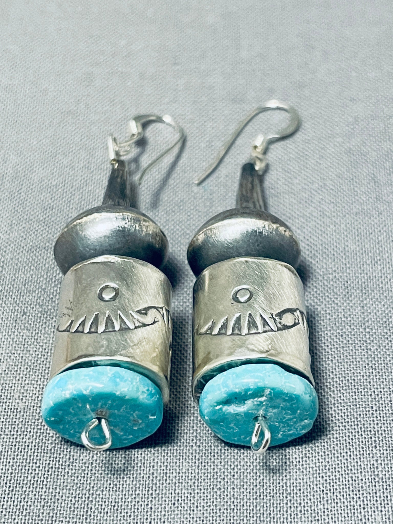 Hand Tooled Tubule Native American Navajo Sterling Silver Turquoise Earrings