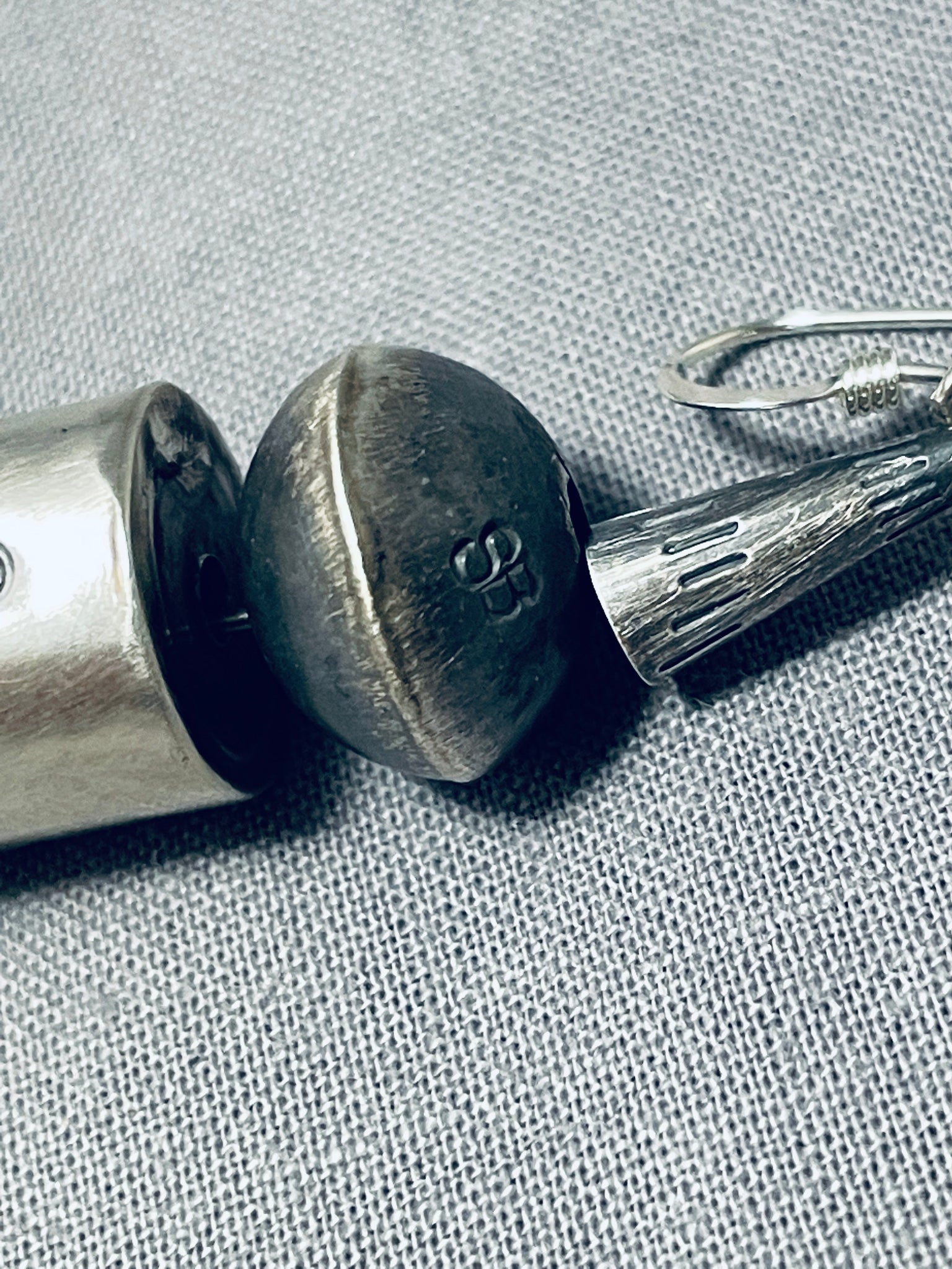 This is a striking Navajo beautiful turquoise and silver pair of earrings. These earrings are absolutely remarkable and consist of large handmade silver raindrops, tubule shaped silver beads and disc shaped Easter Blue turquoise stones. Each of the round silver beads measure around 1/2" in diameter, each of the silver tubule beads measure around 1/2" X 3/8" and each of the beautiful turquoise stones measure around 1/2" in diameter. Each earring measures a stunning 1-3/4" X 1/2" not including the silver hooks. Sterling silver, marked. Signed by Navajo artist, Sophia Becenti. The earrings weigh around 9 grams.