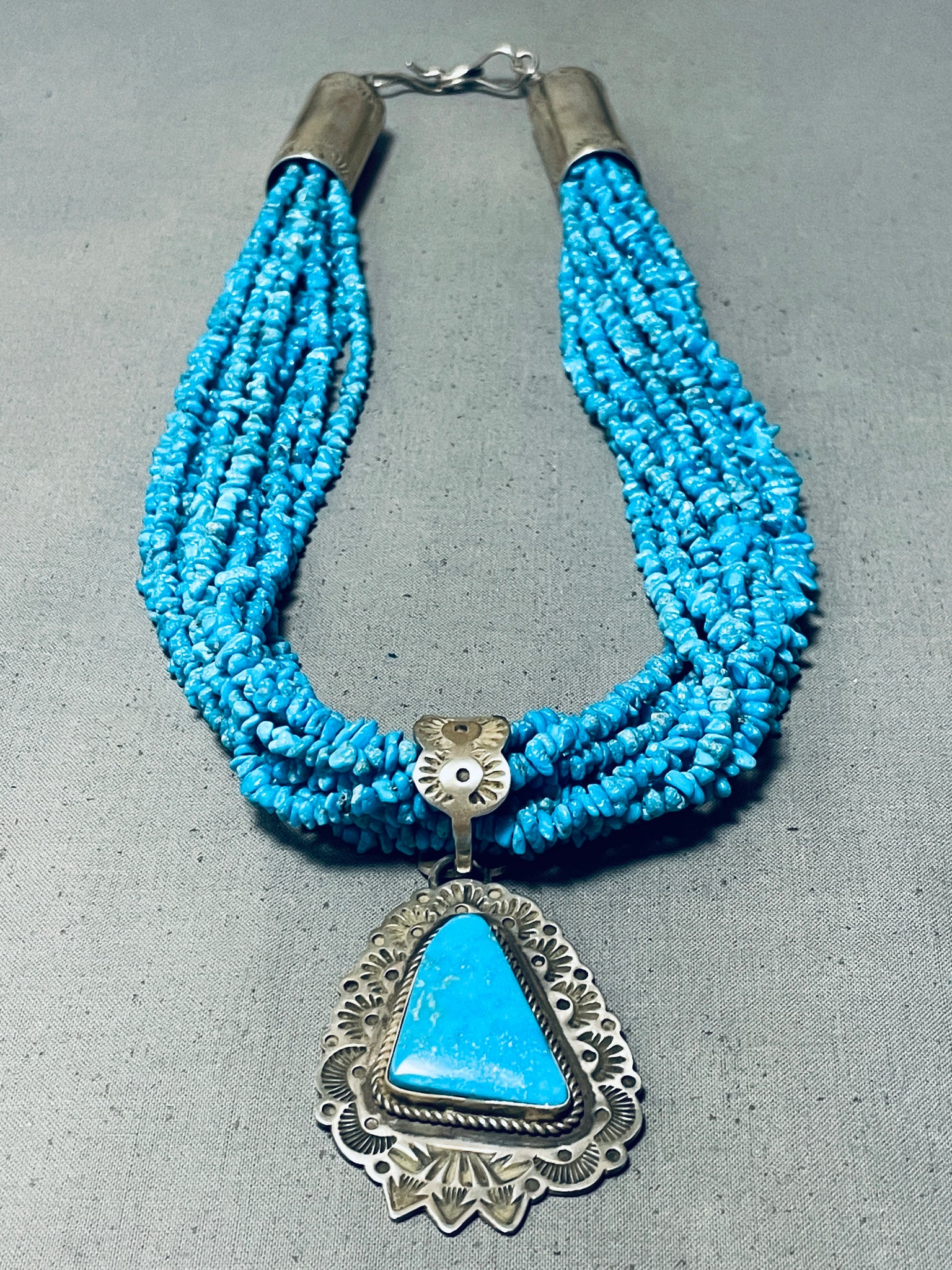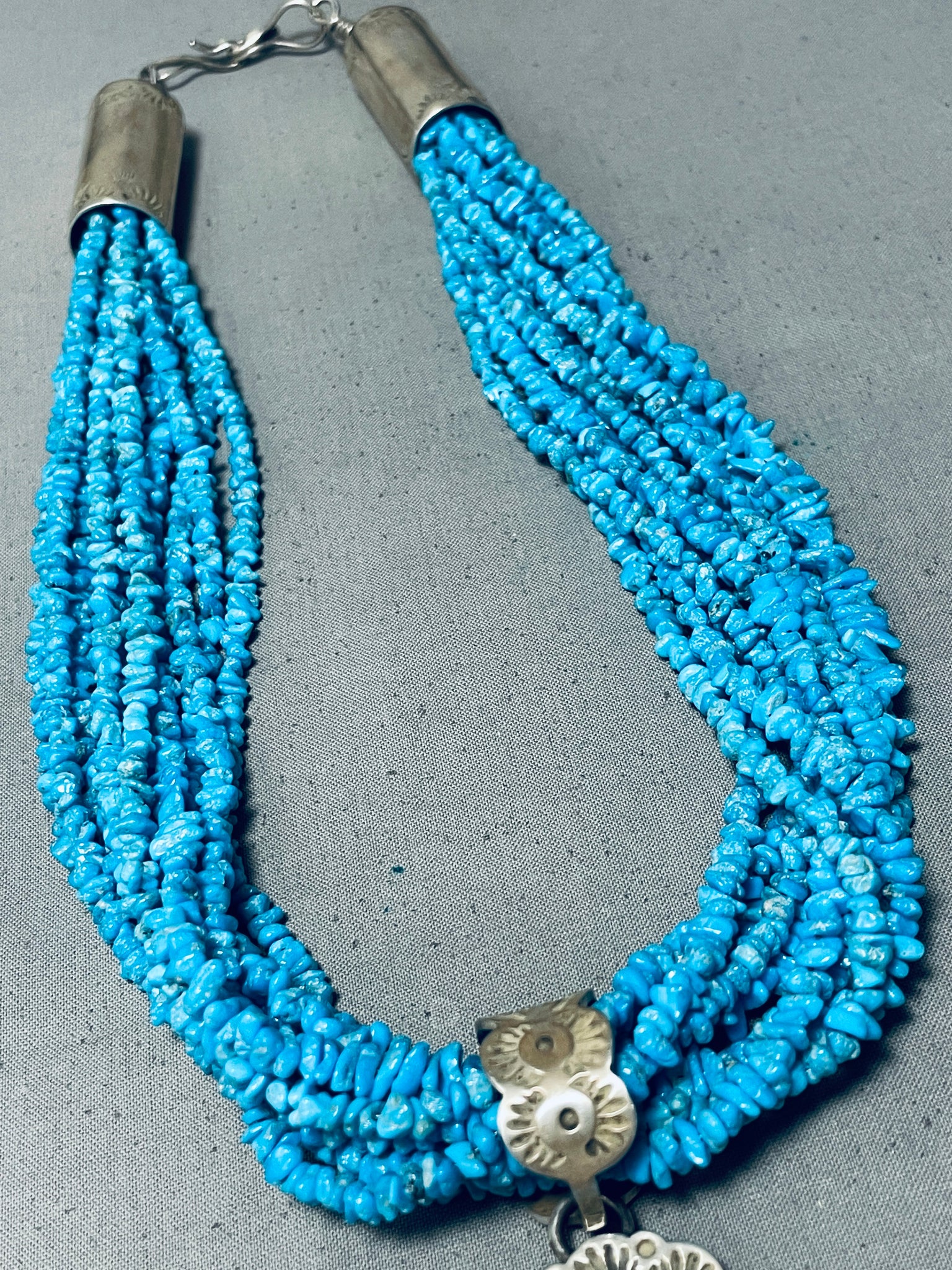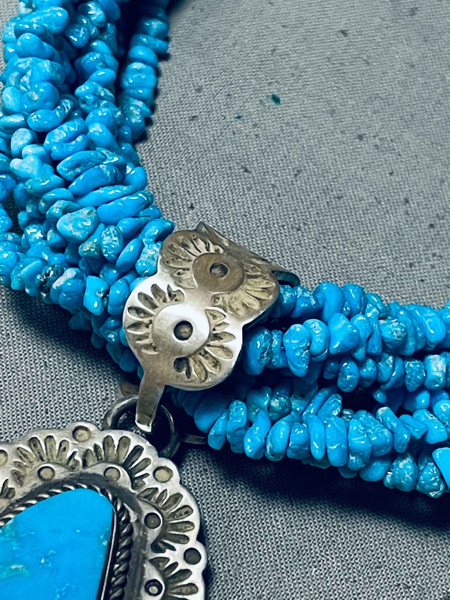 Hand Tooled Tubule Sterling Silver Vintage Native American Navajo Turquoise Necklace