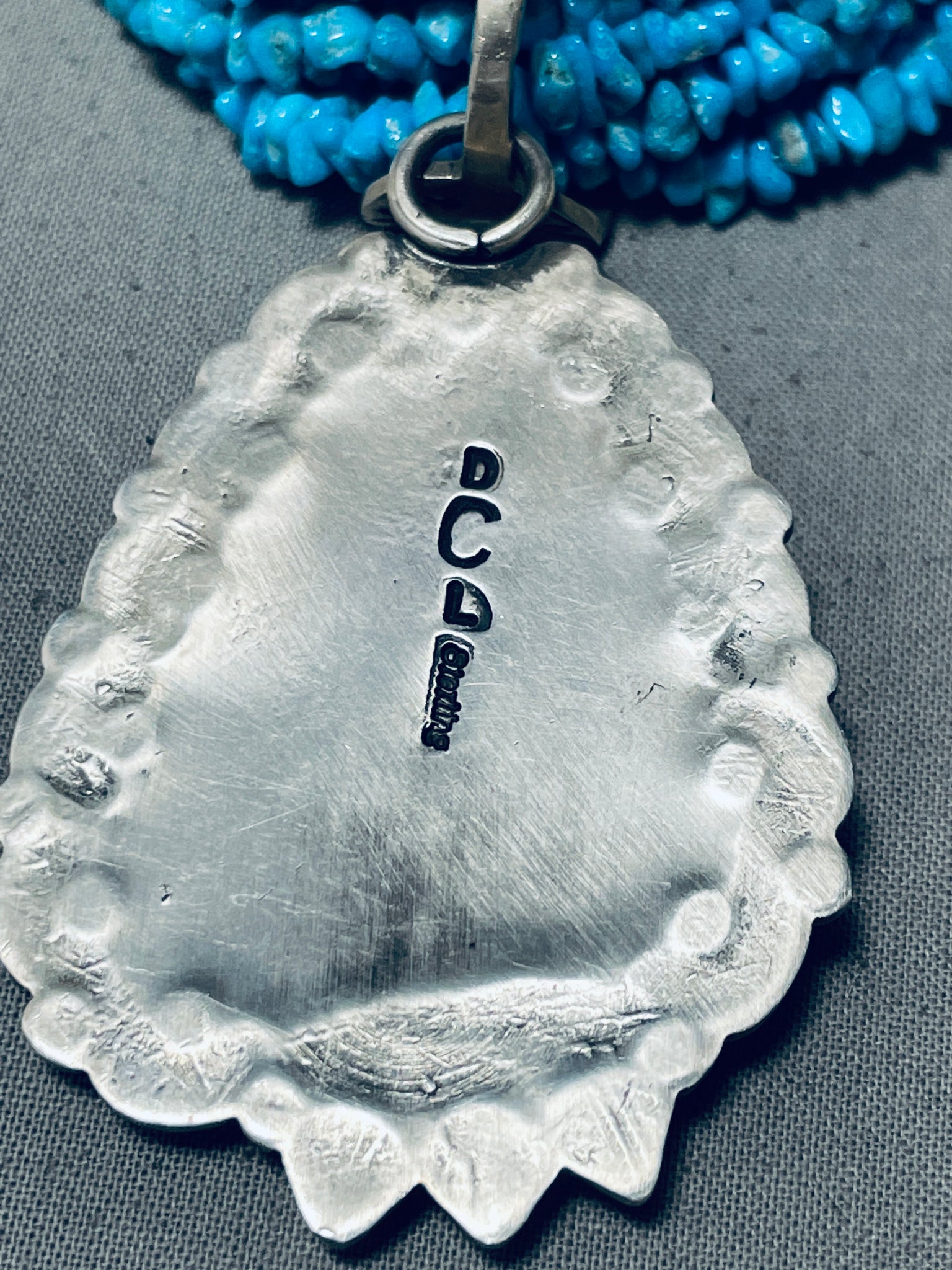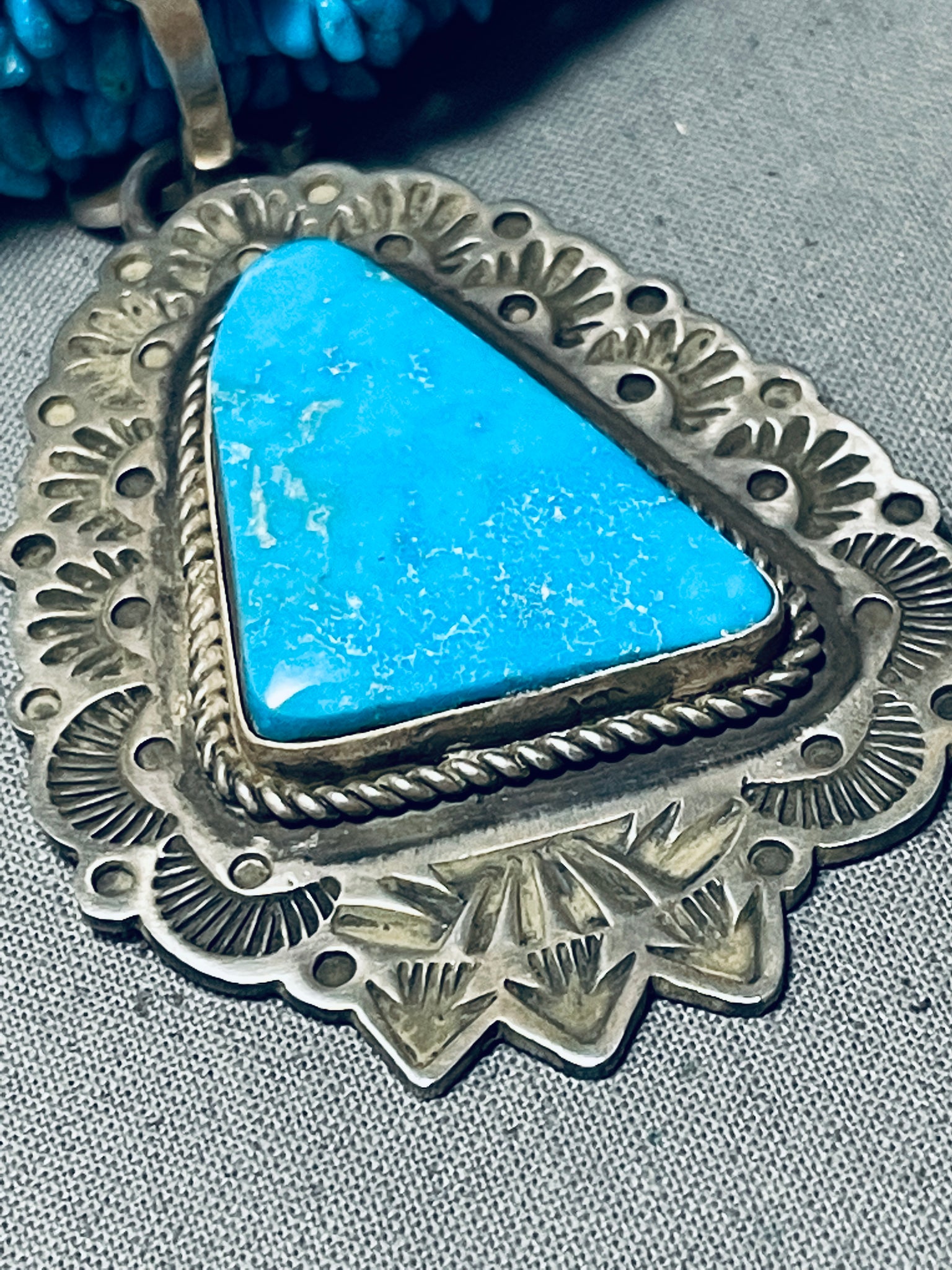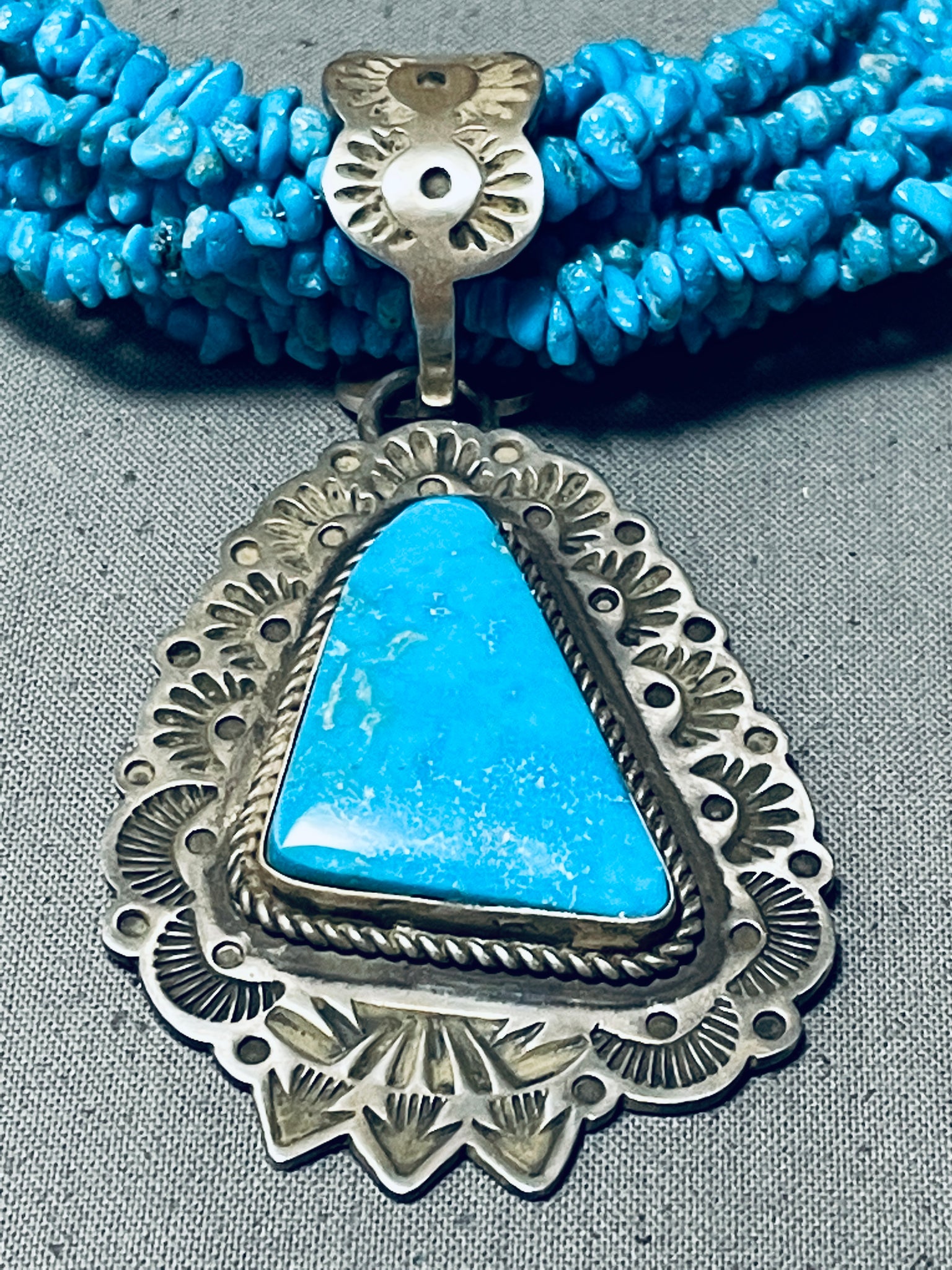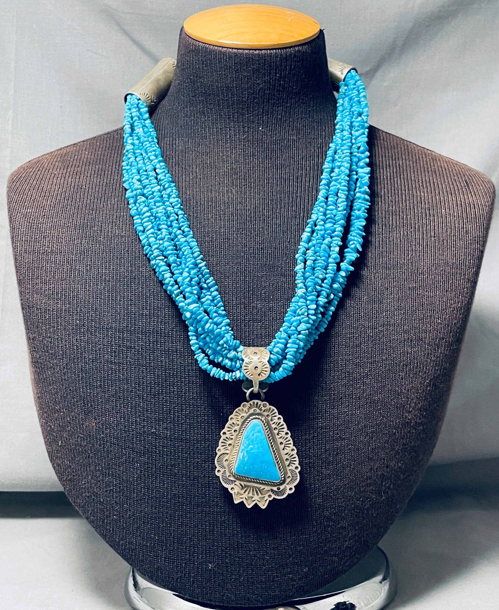 Hand Tooled Tubule Sterling Silver Vintage Native American Navajo Turquoise Necklace