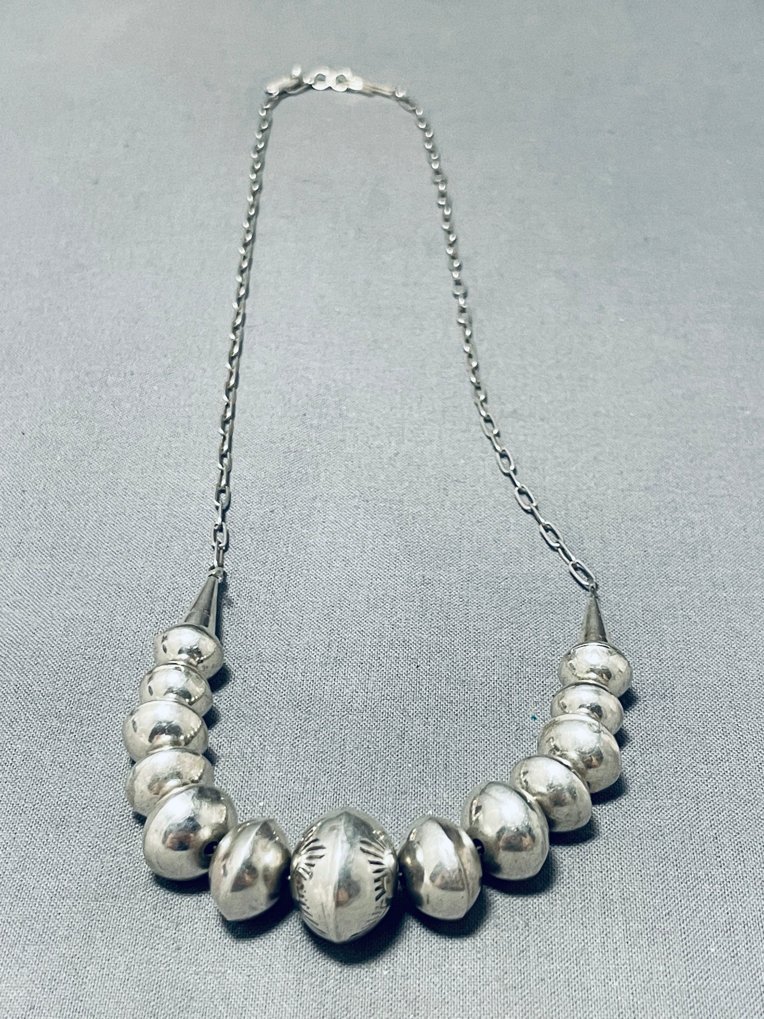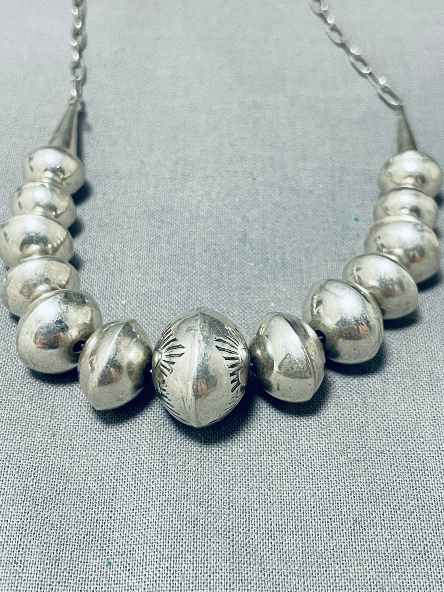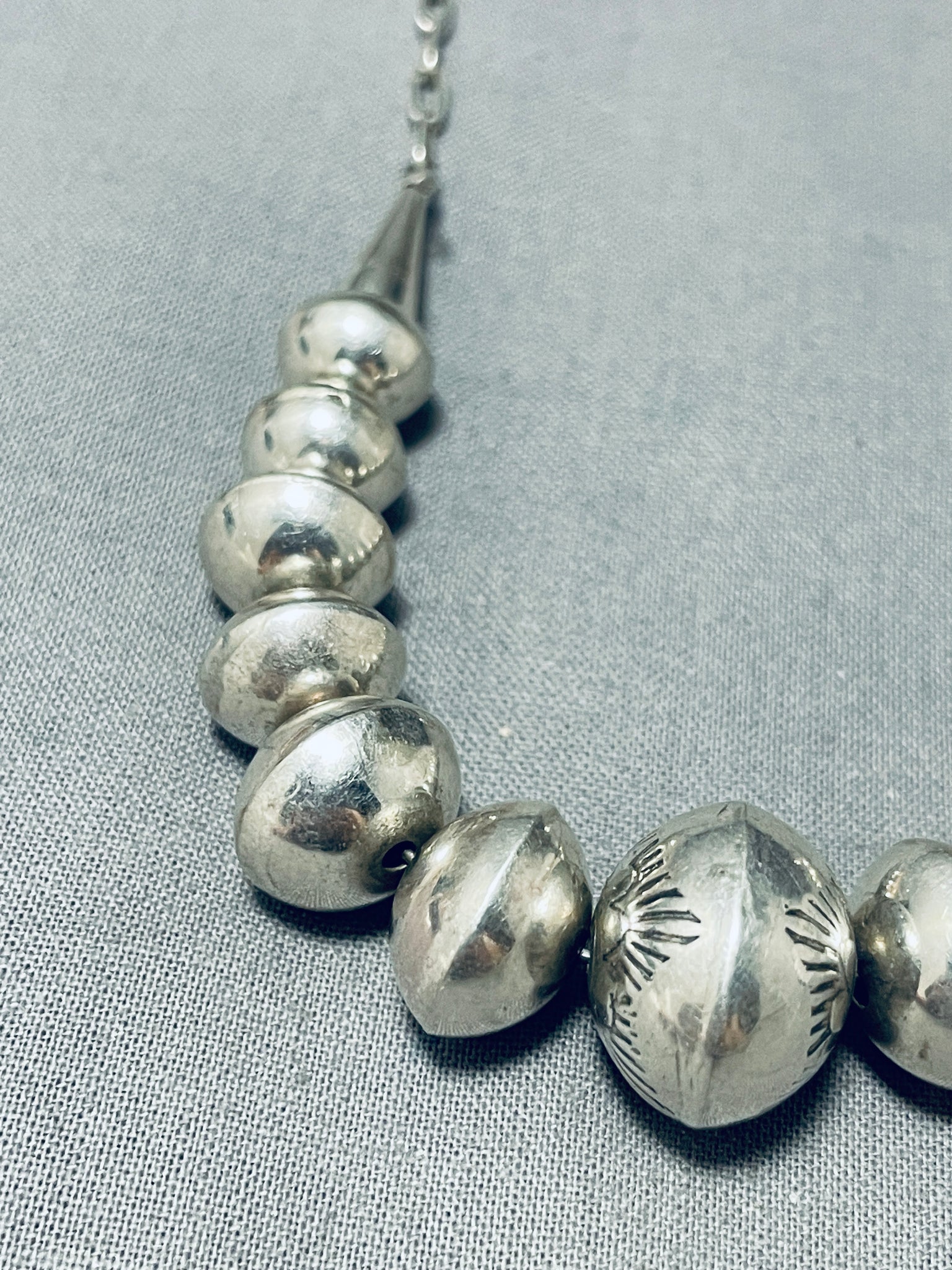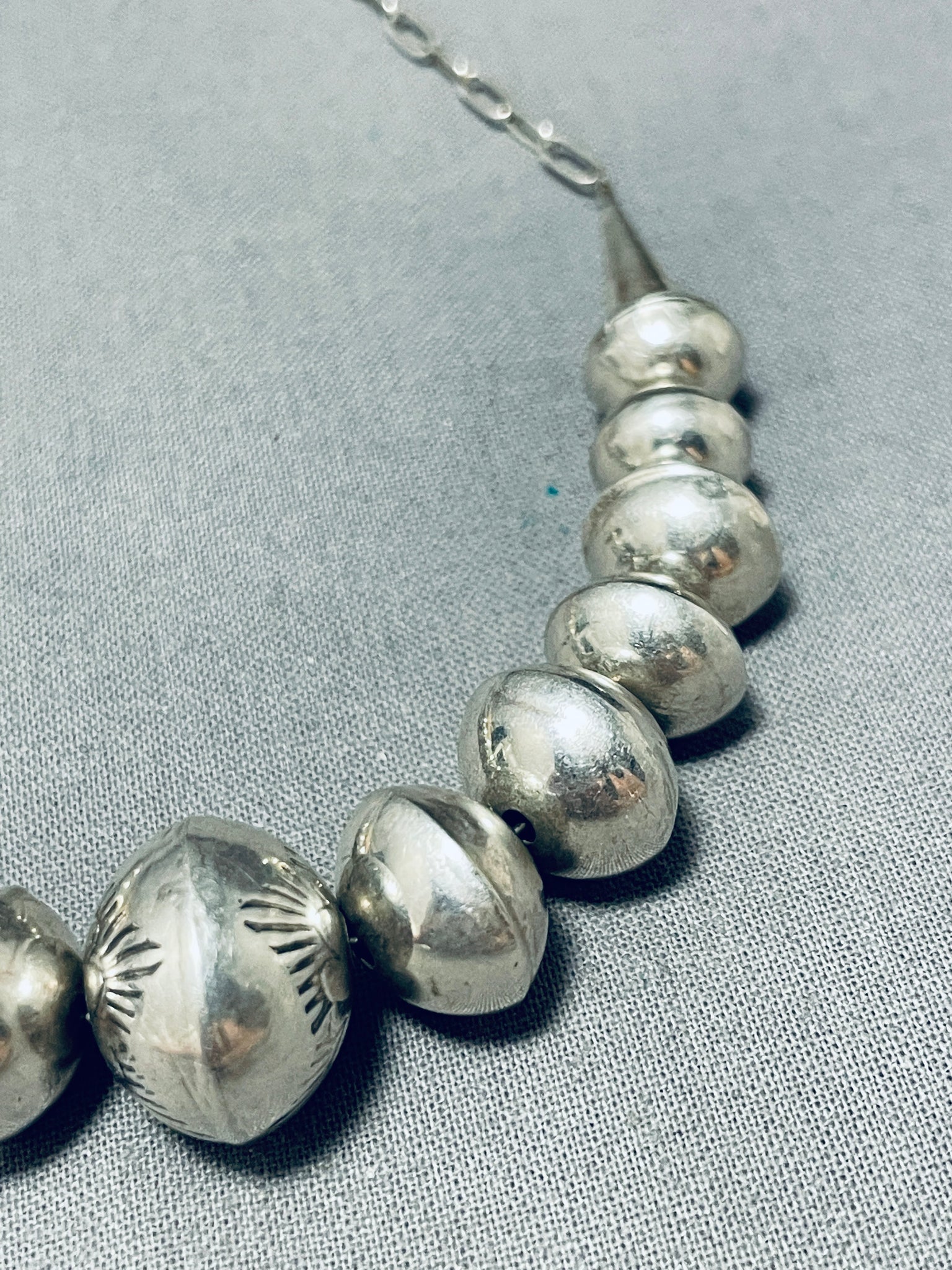 Hand Tooled Vintage Native American Navajo Sterling Silver Bead Necklace Old