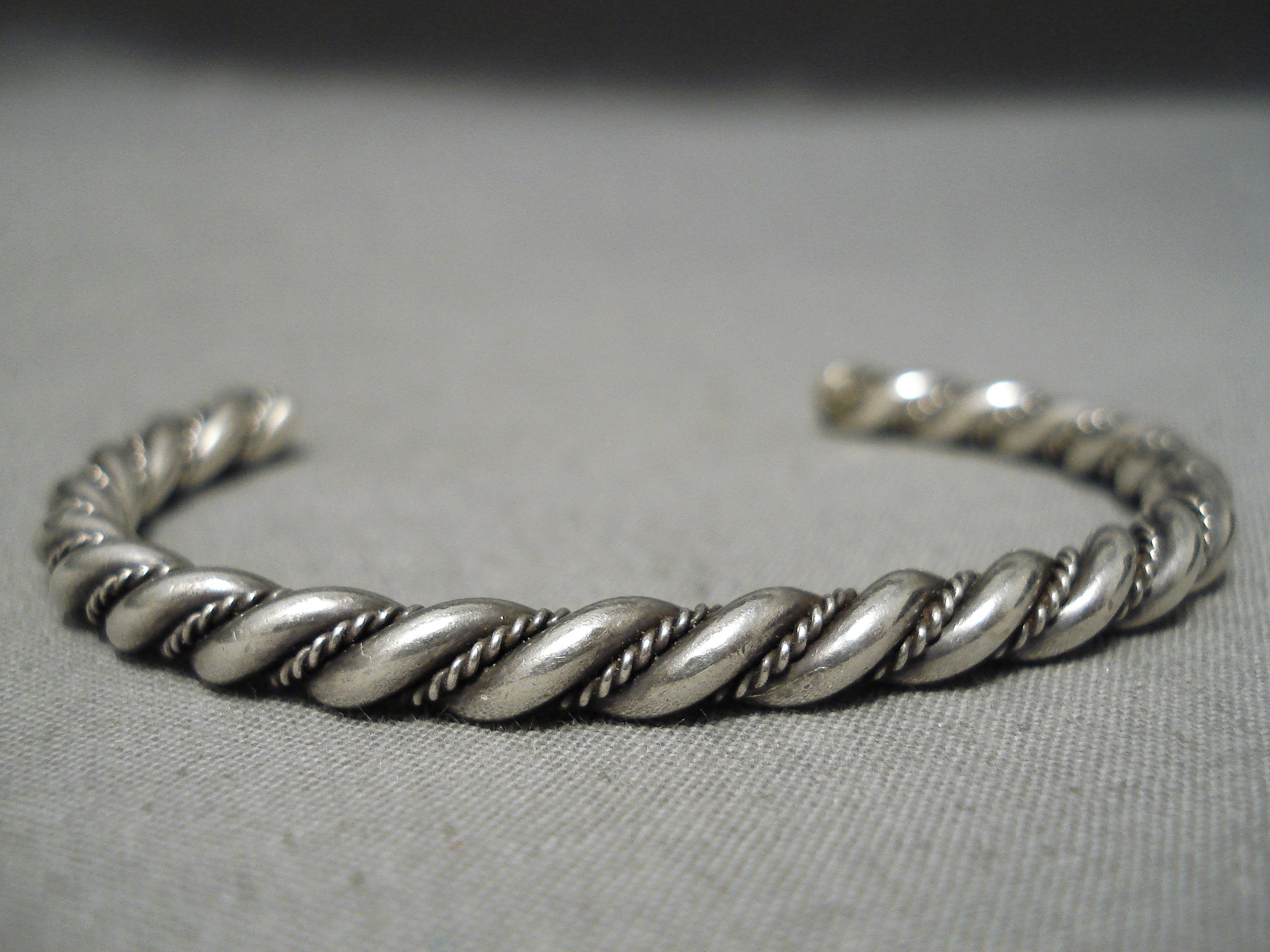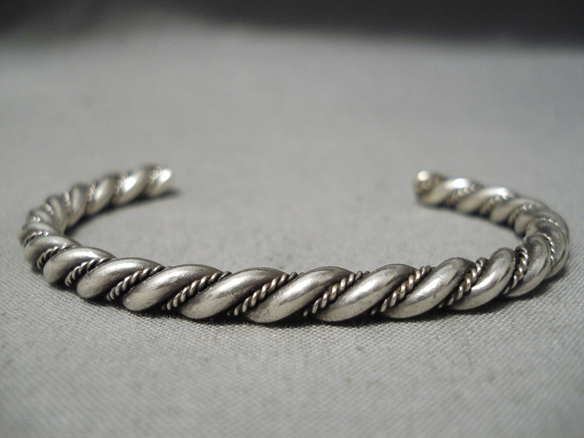 Hand Twisted Vintage Native American Navajo Solid Sterling Silver Bracelet Old