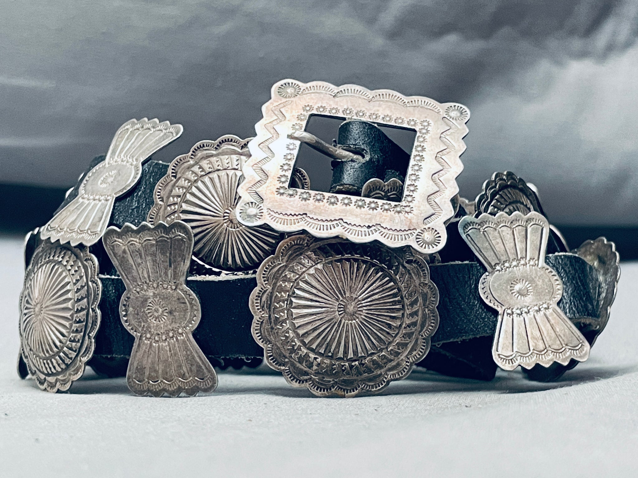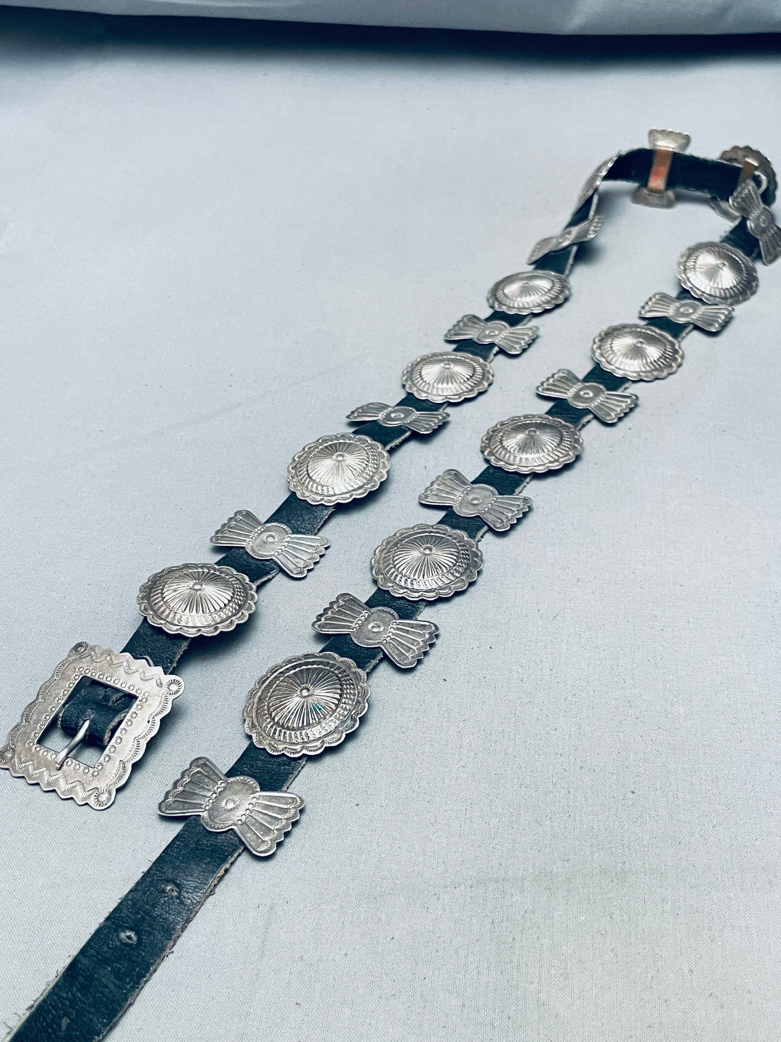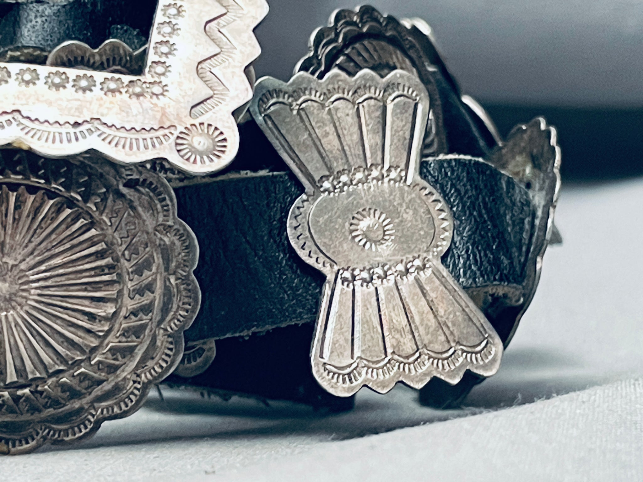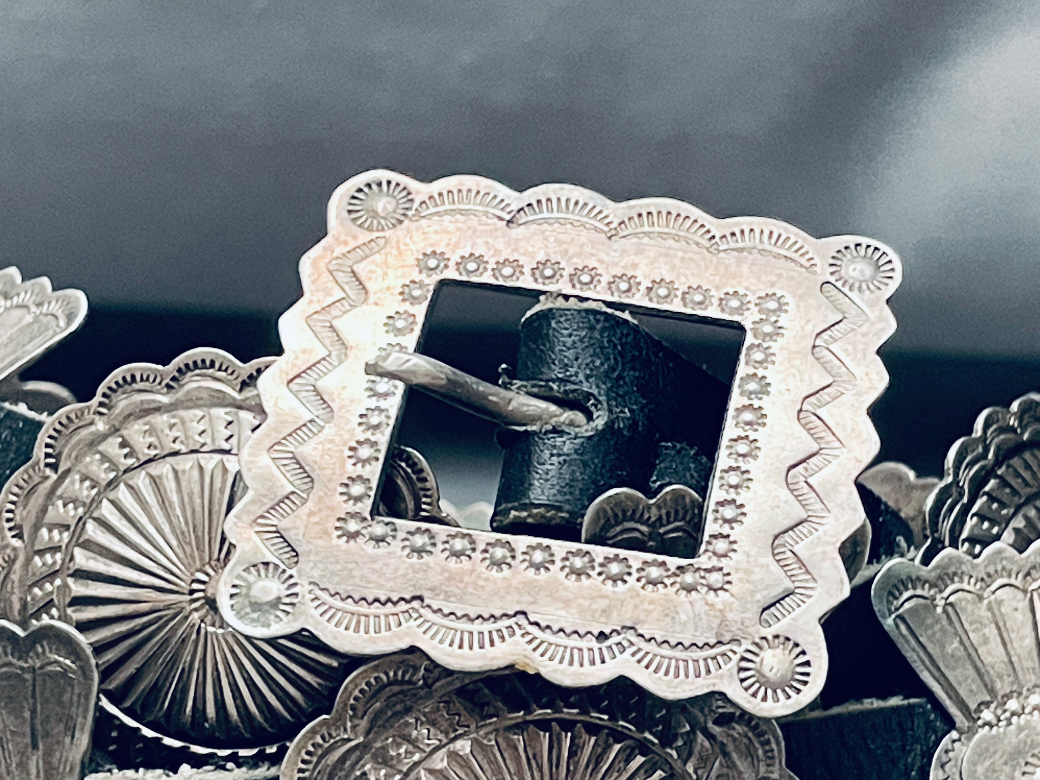 Hand Wrought Vintage Native American Navajo Sterling Silver Stamped Concho Belt